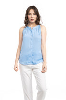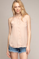 women's neck sleeveless button down top