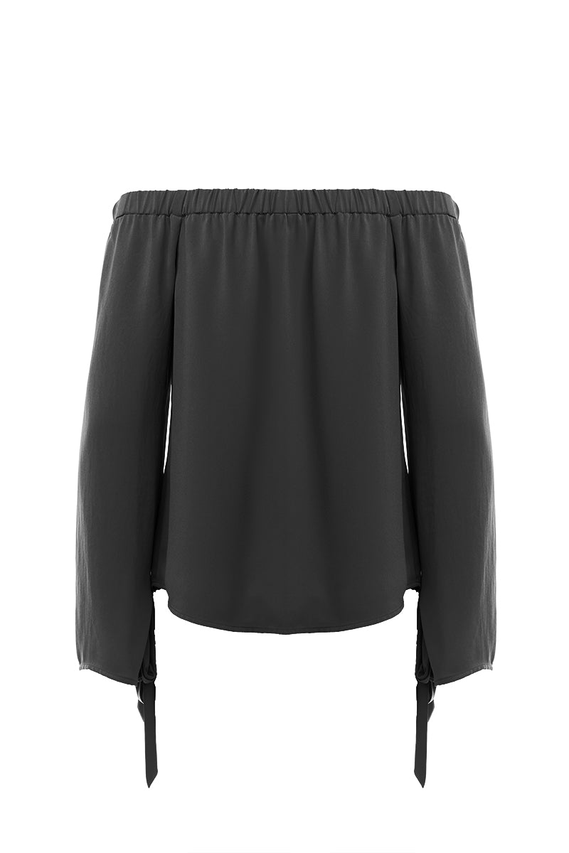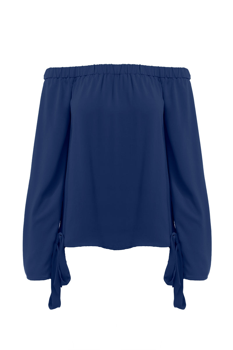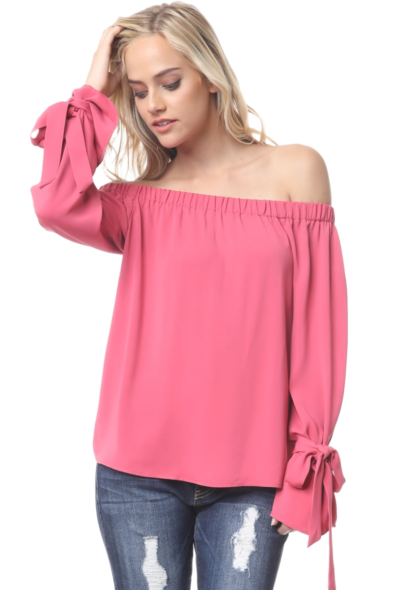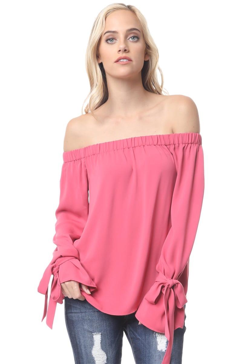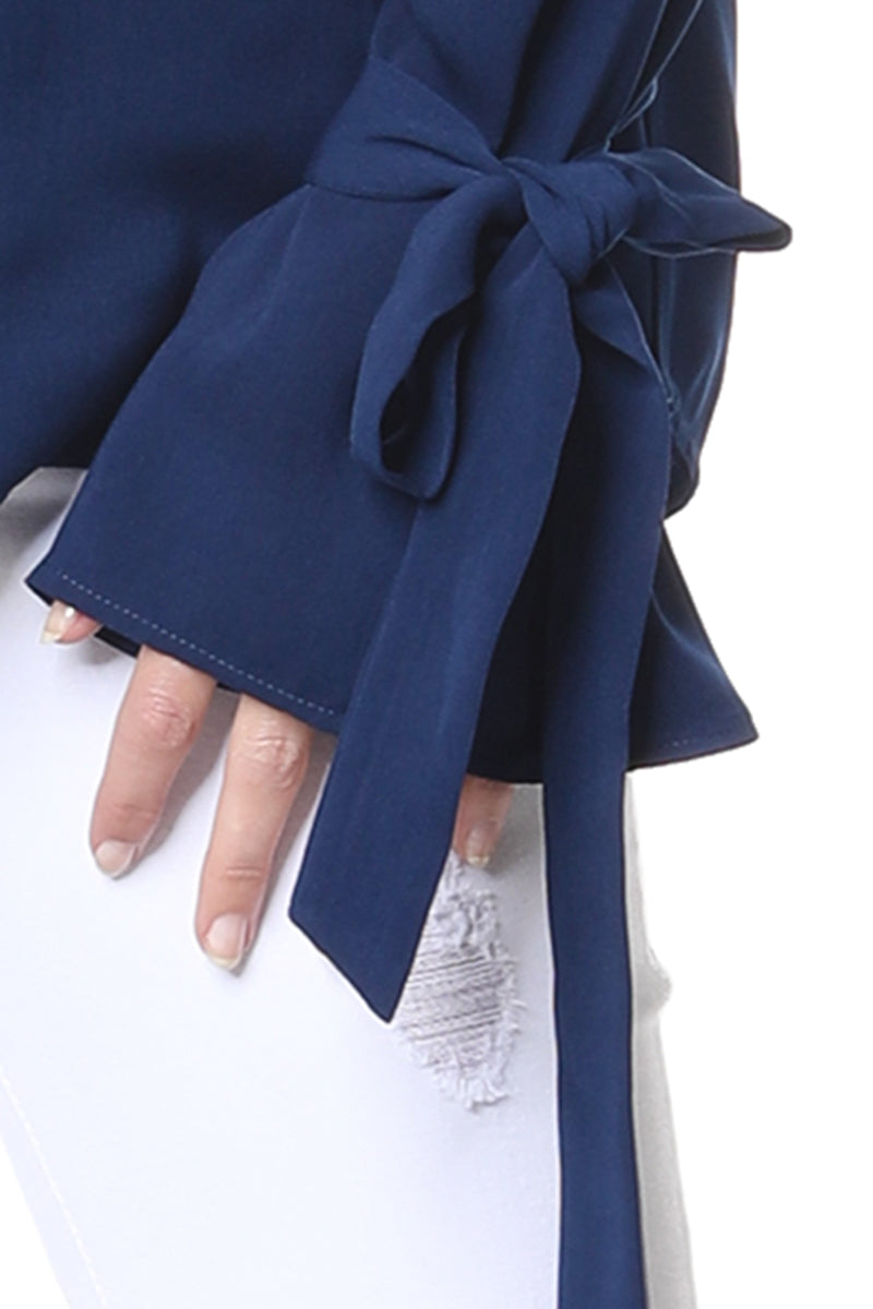╴Women's Off Ruffle Shoulder Blouse with Tie Sleeve.