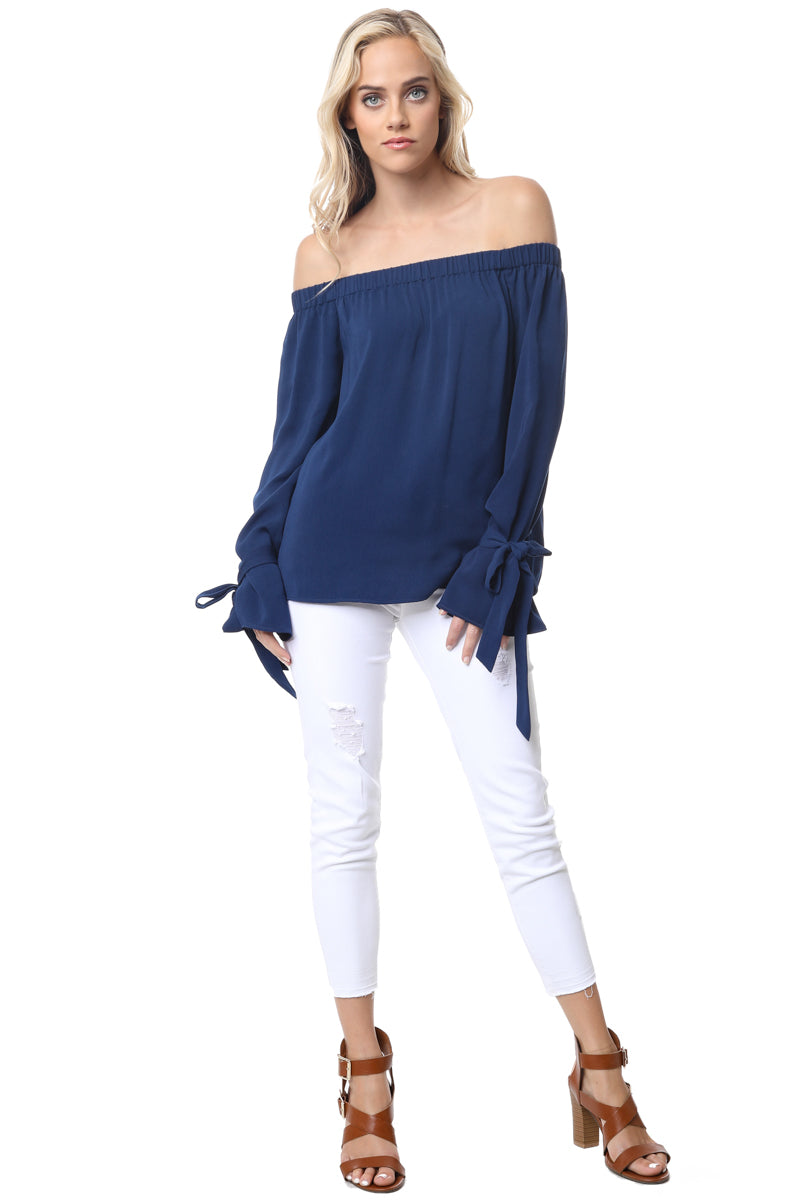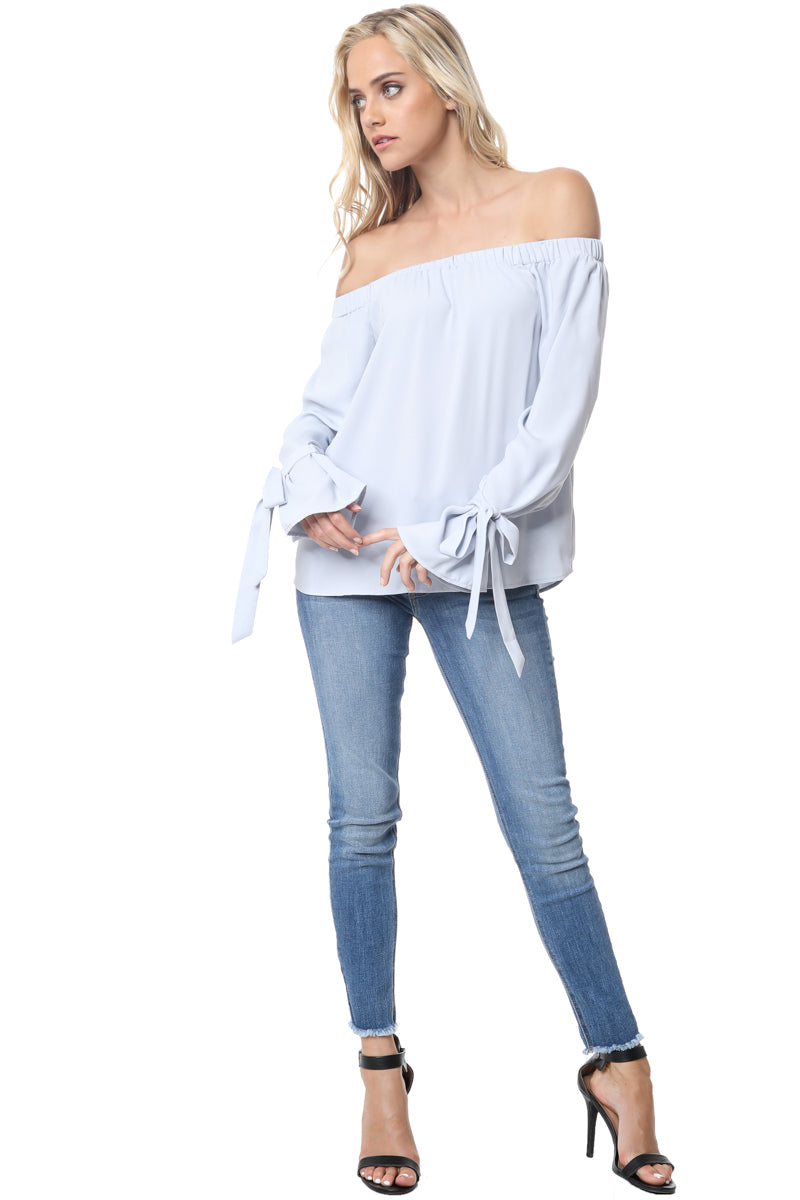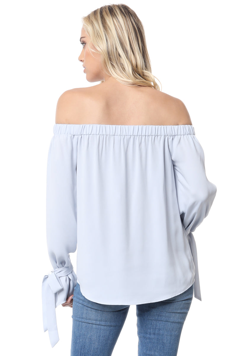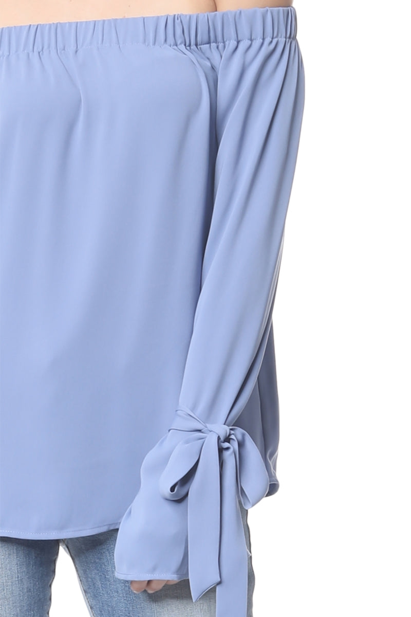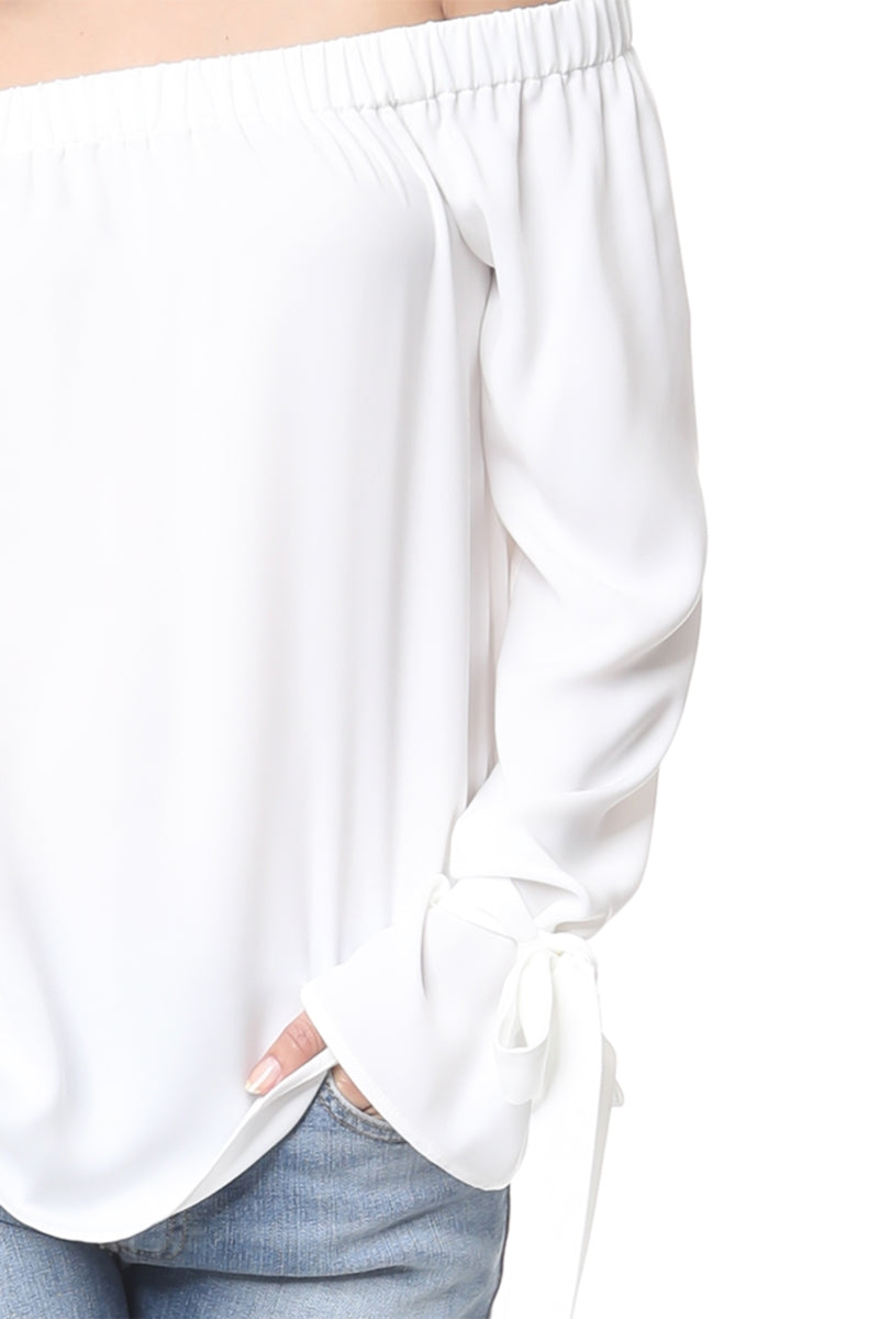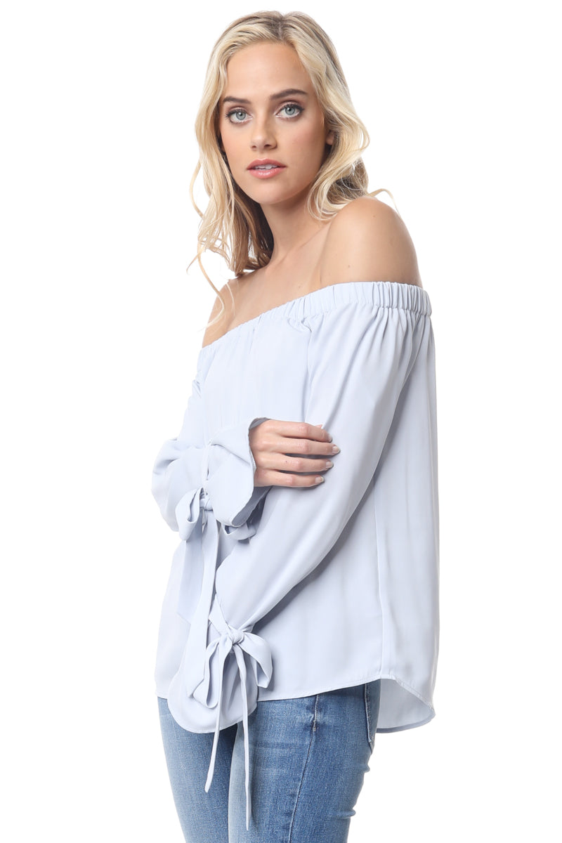 Off Ruffle Shoulder Blouse With Tie Sleeve