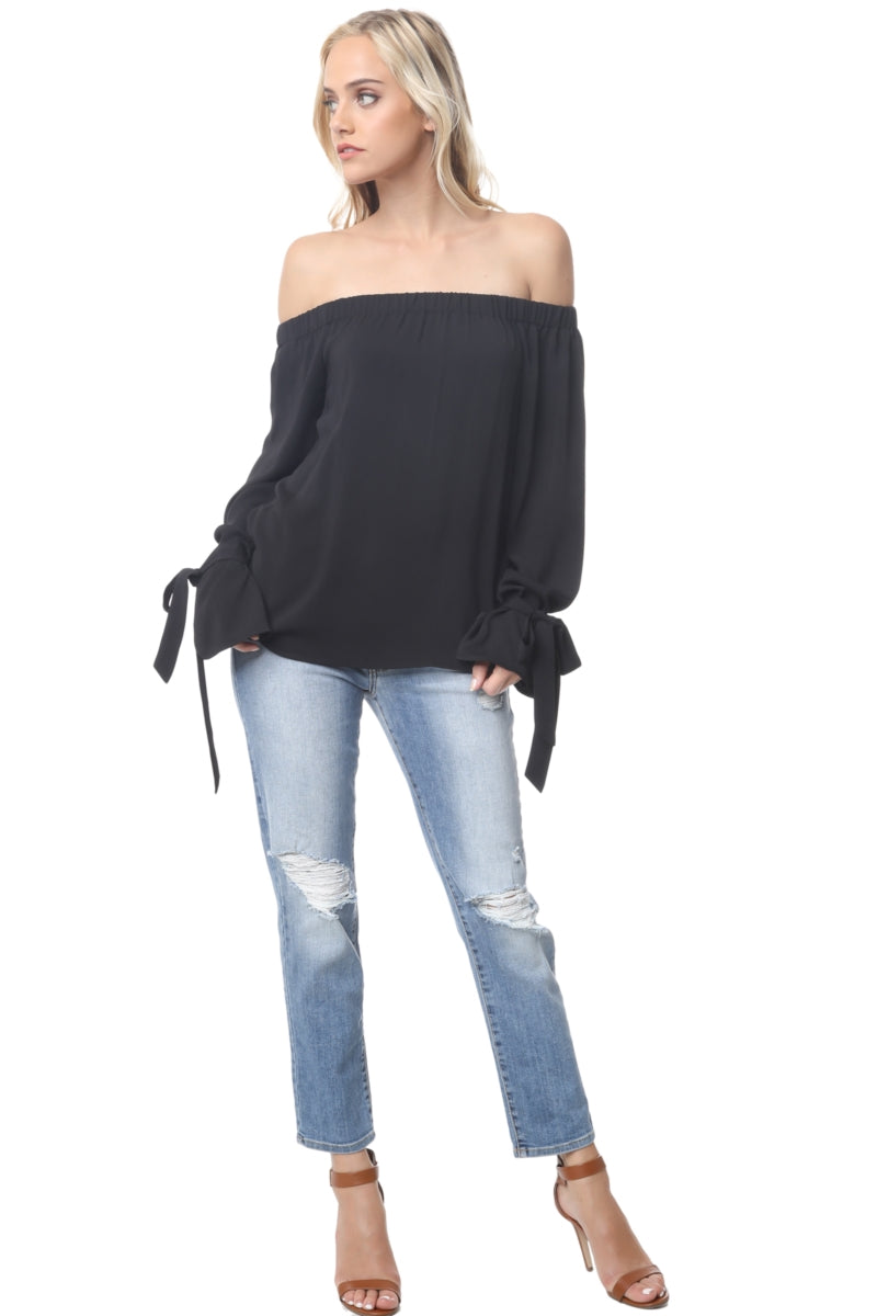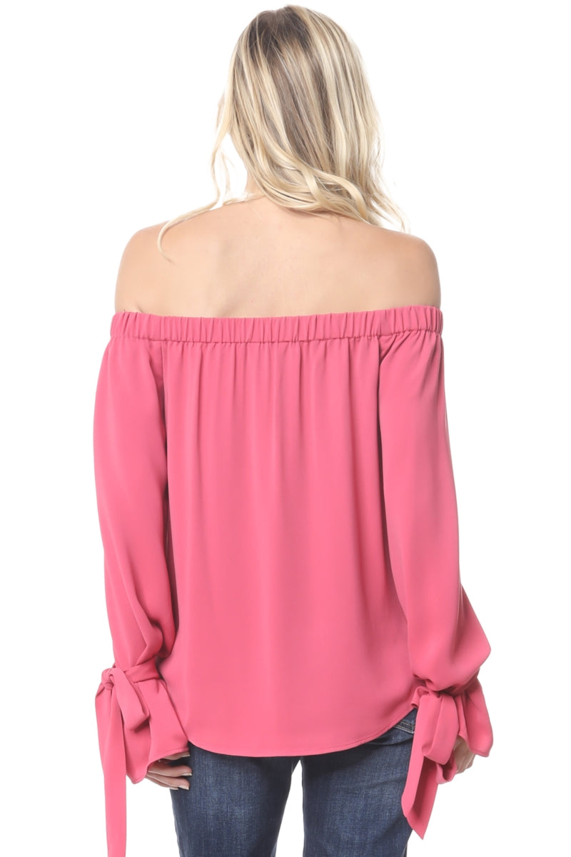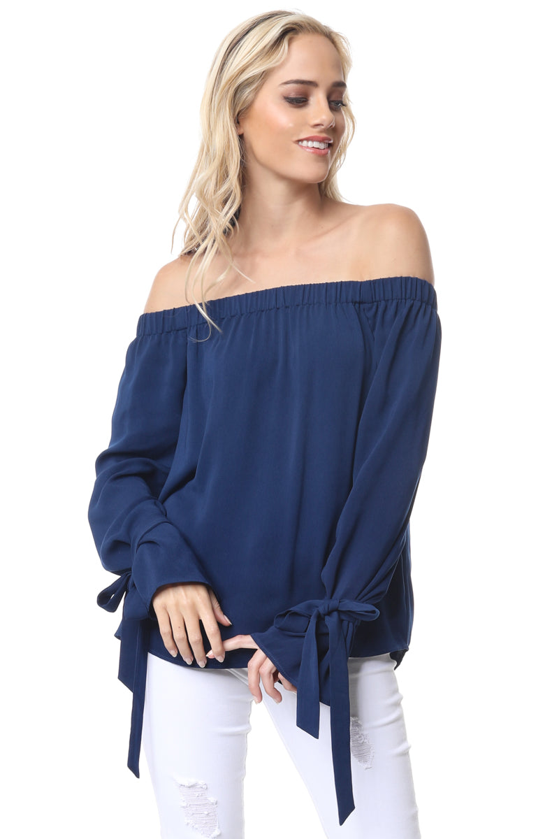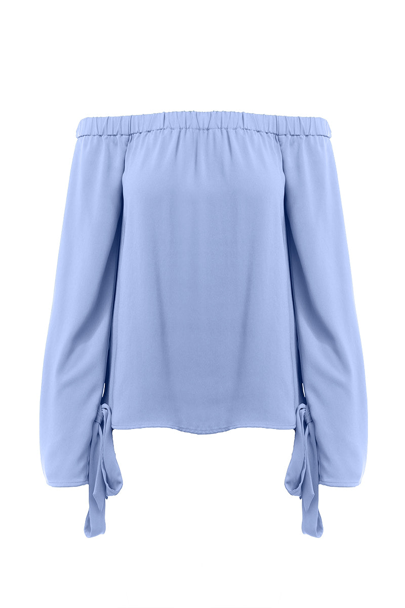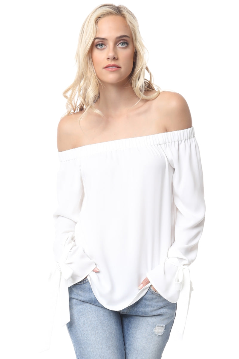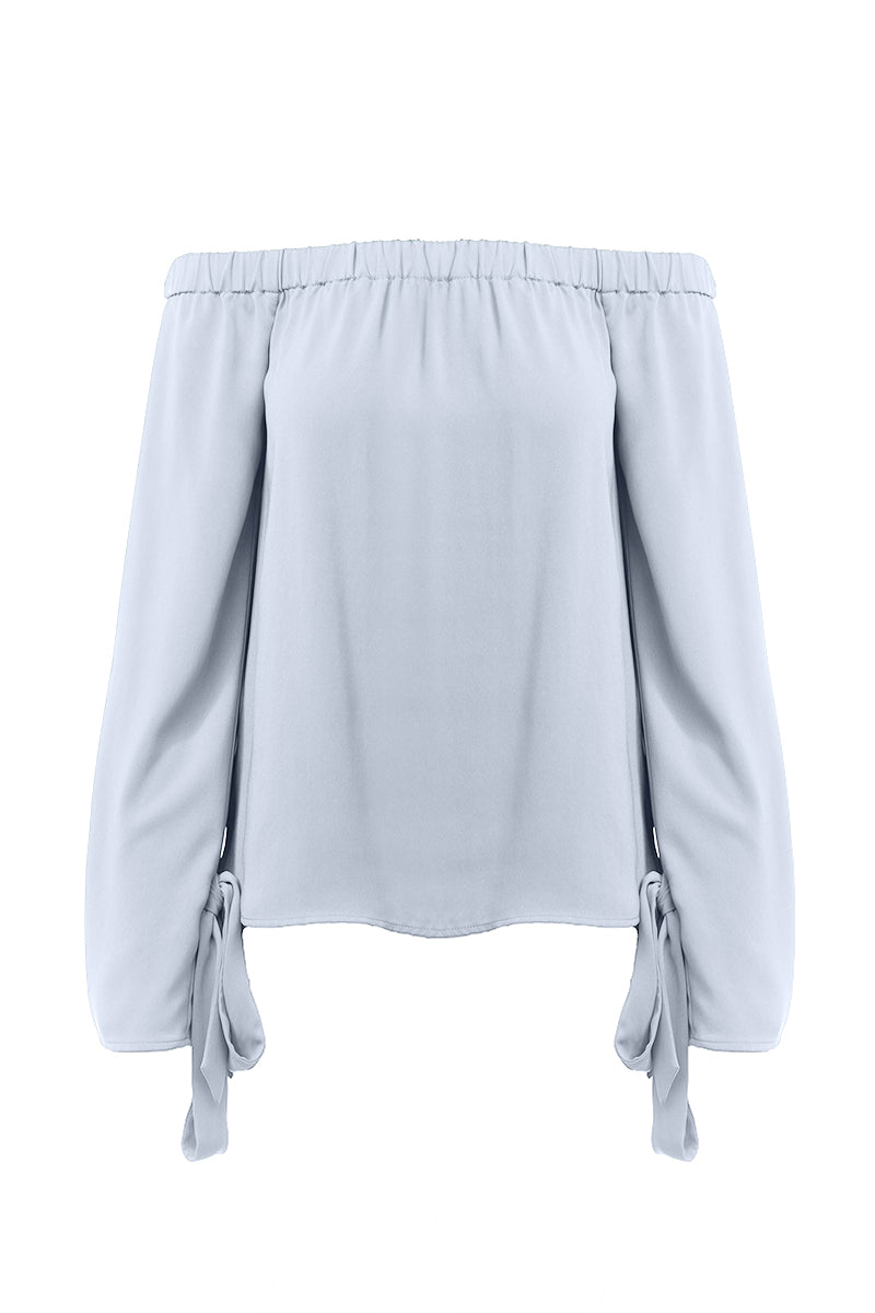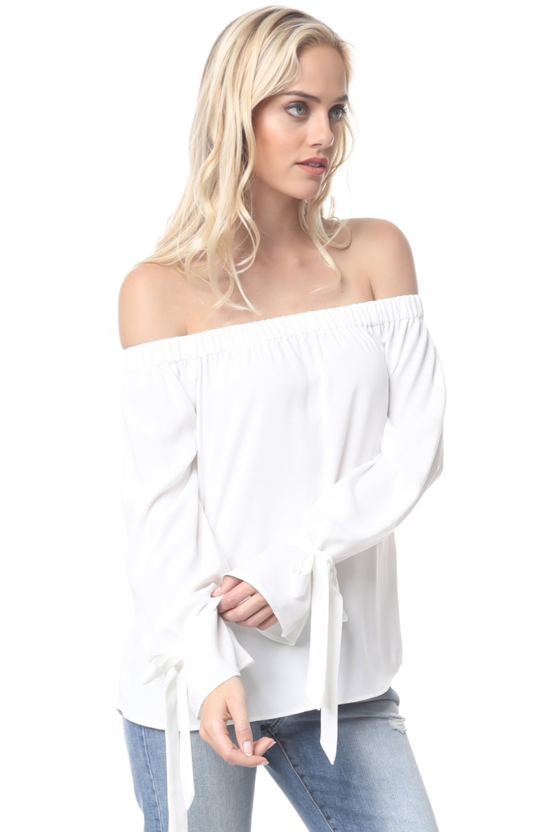 Off Ruffle Shoulder Blouse With Tie Sleeve