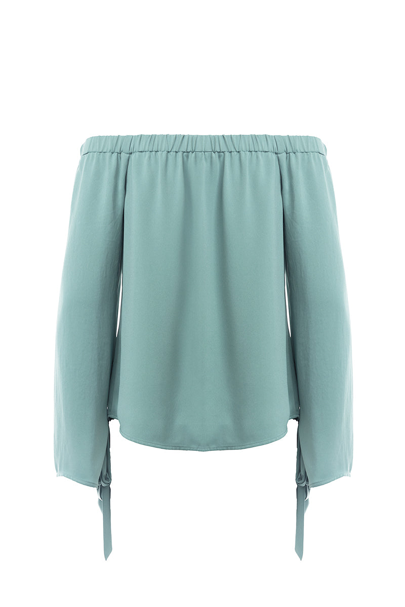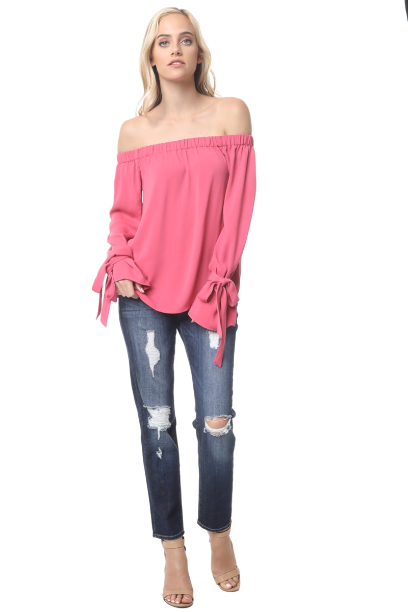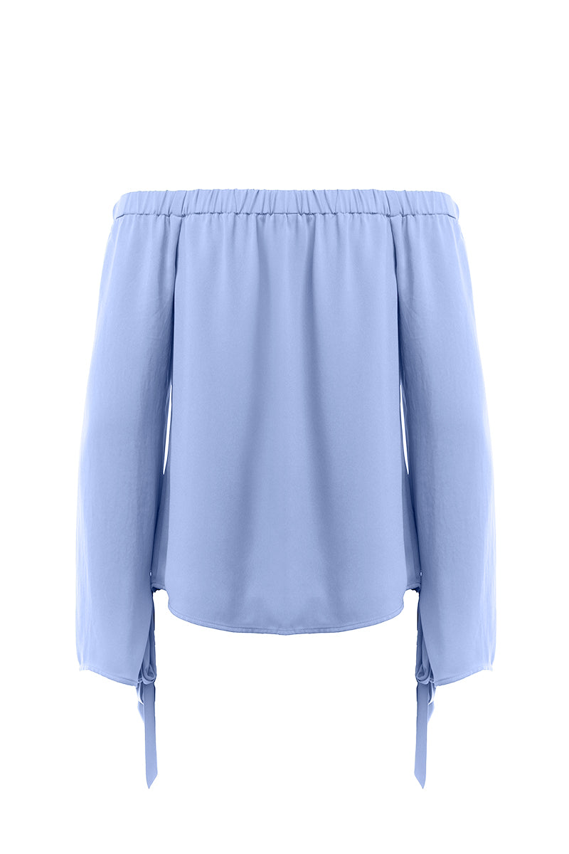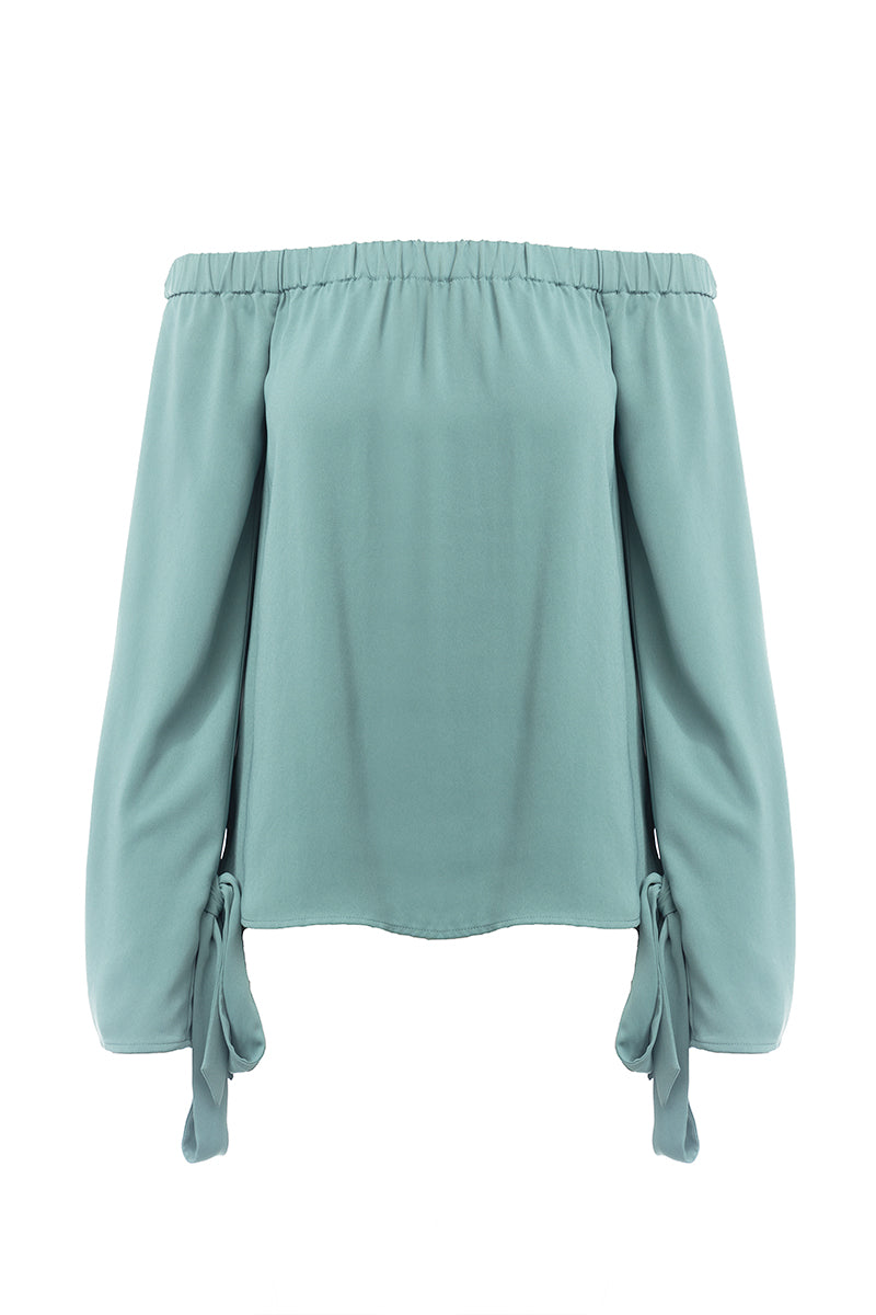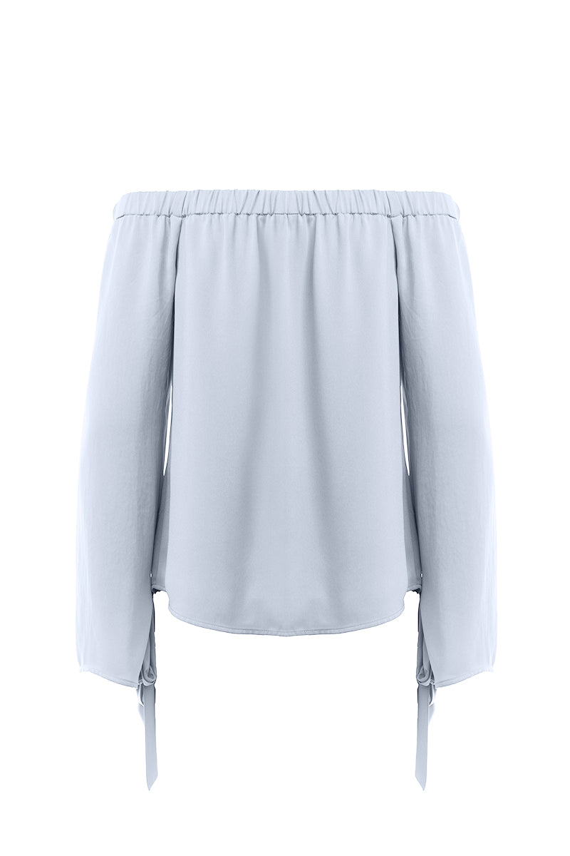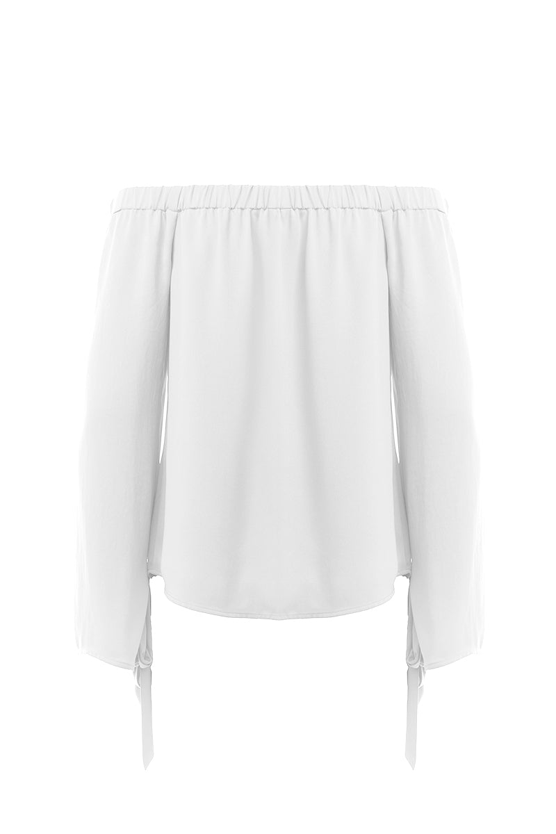 Off Ruffle Shoulder Blouse With Tie Sleeve