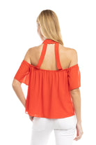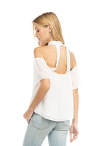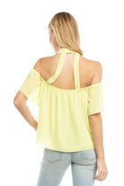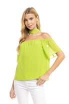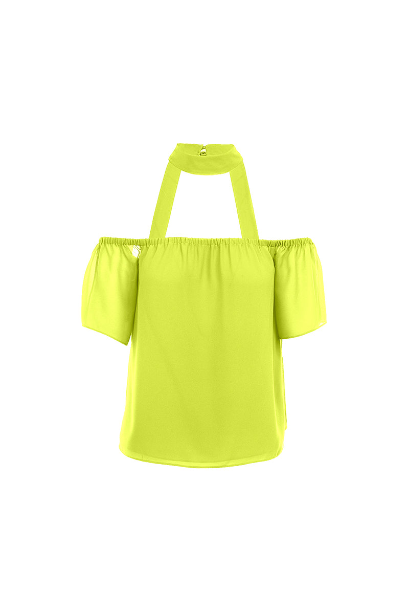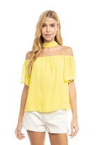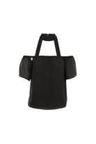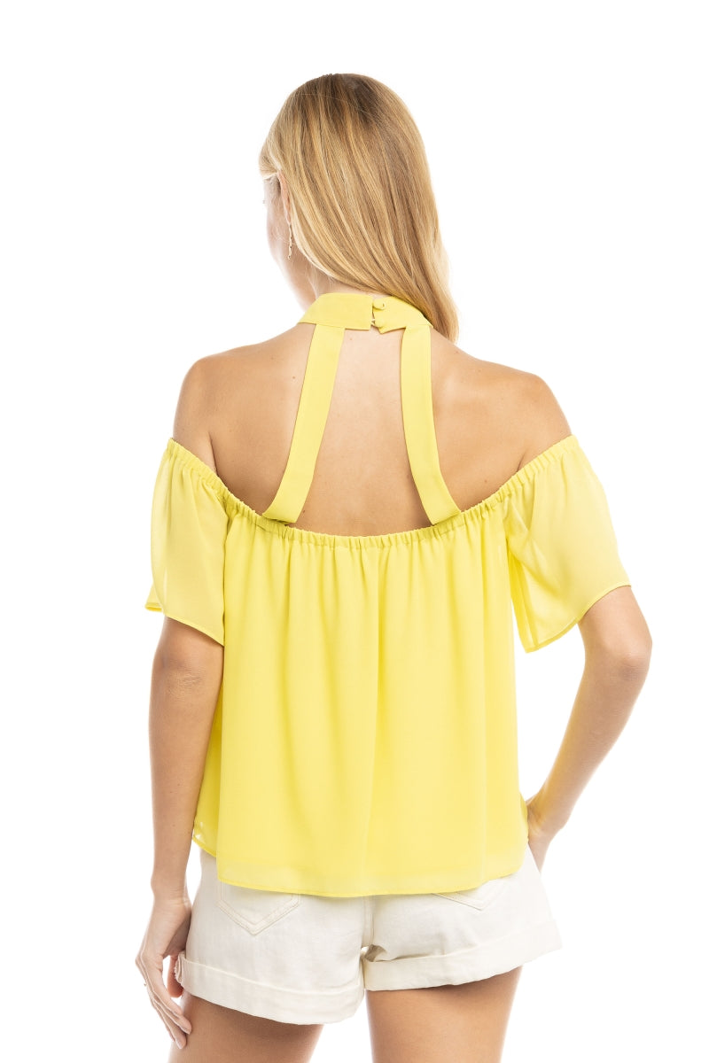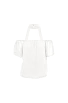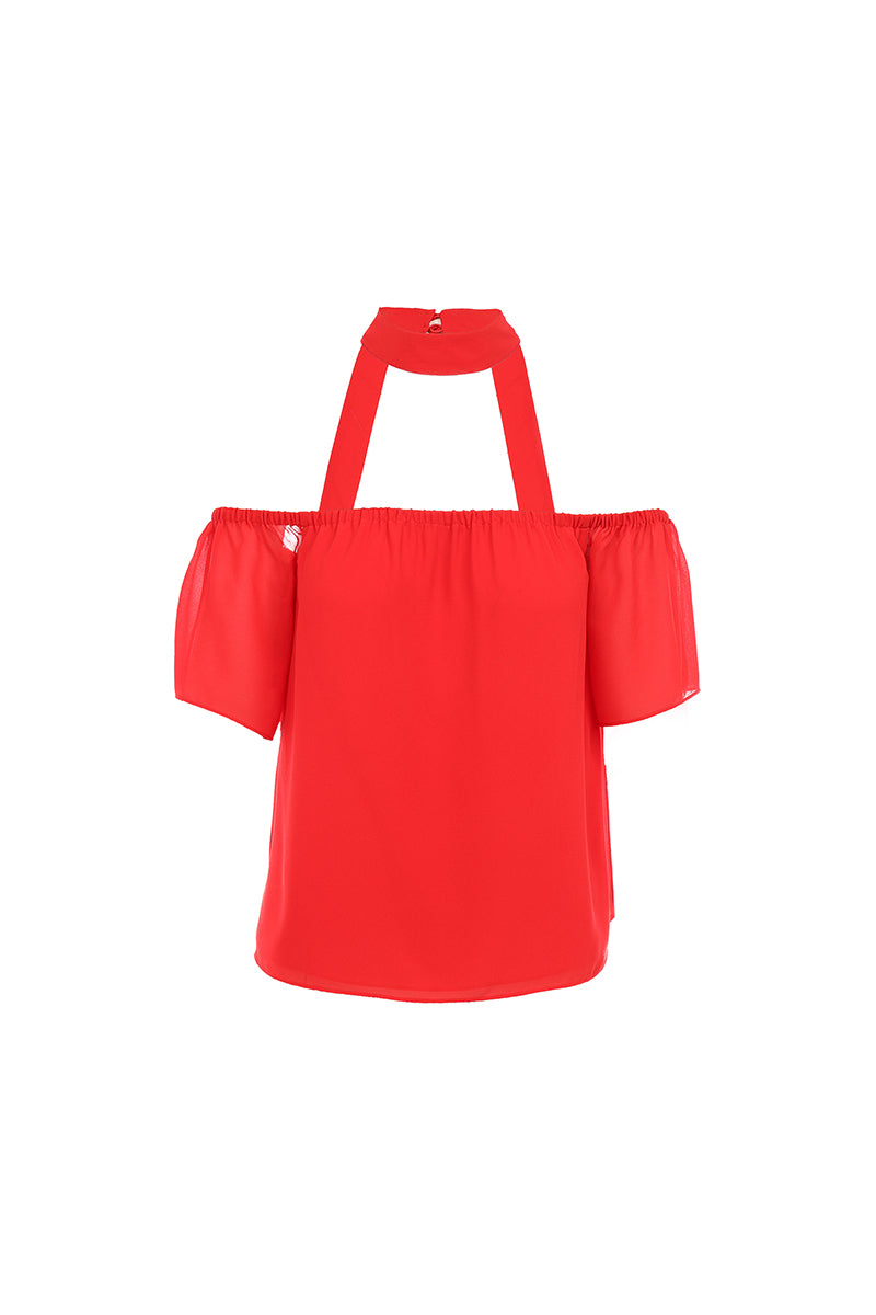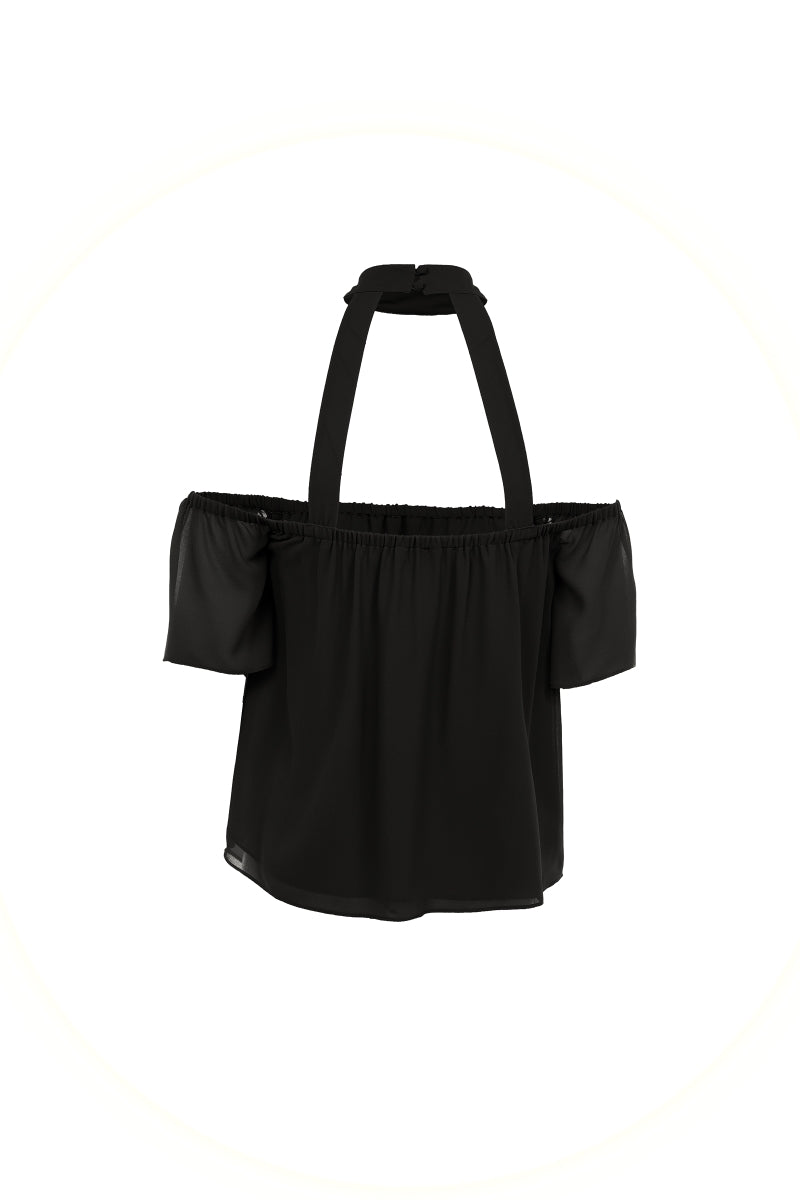 ╴Strapless off-shoulder neckline paired with a built-in choker for a bold, modern look.