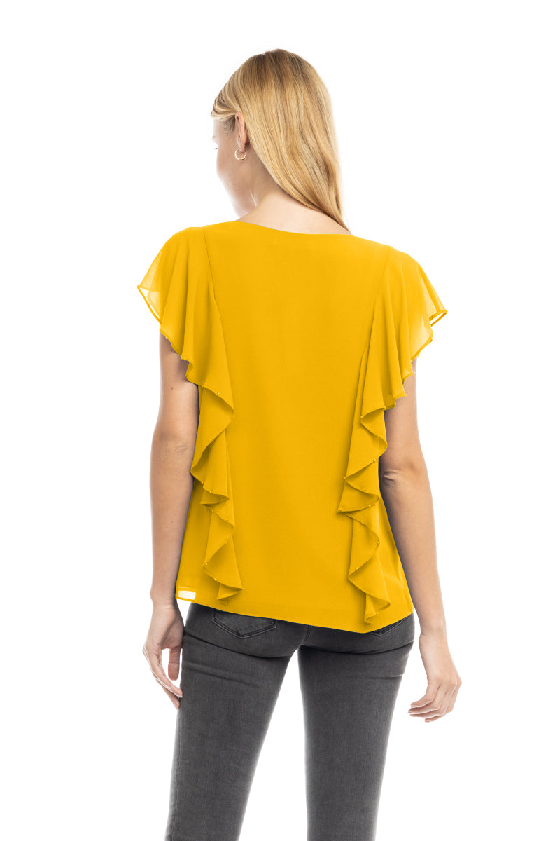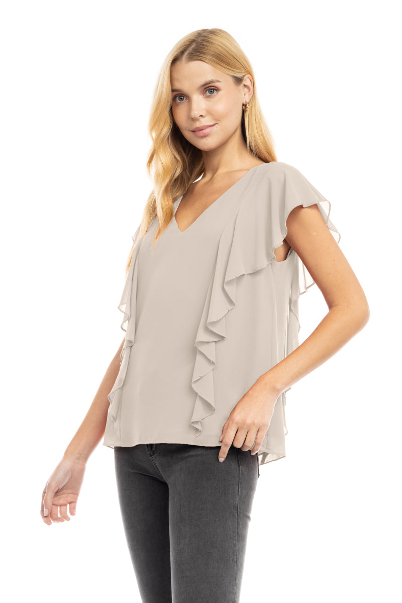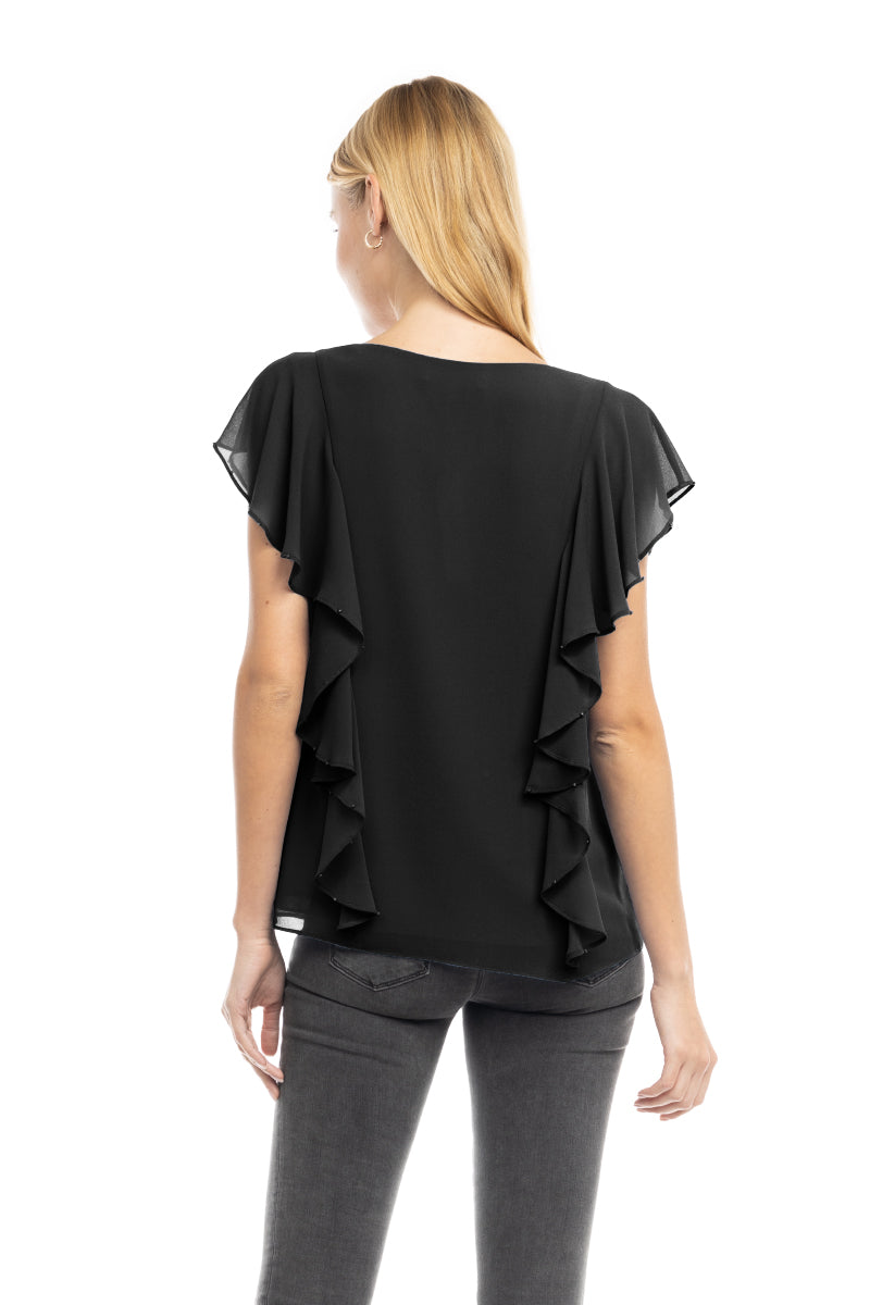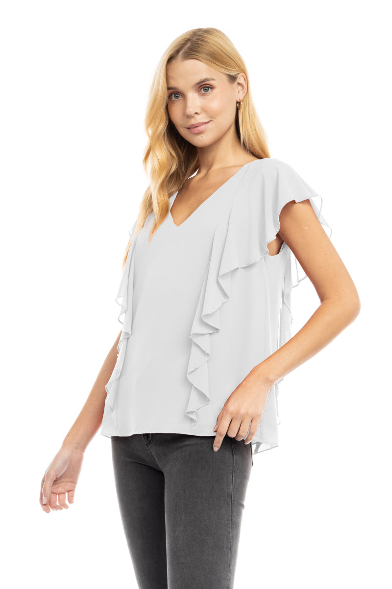 Pearl Beaded Ruffle V Neck Blouse