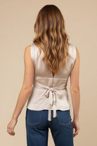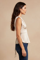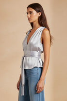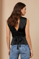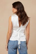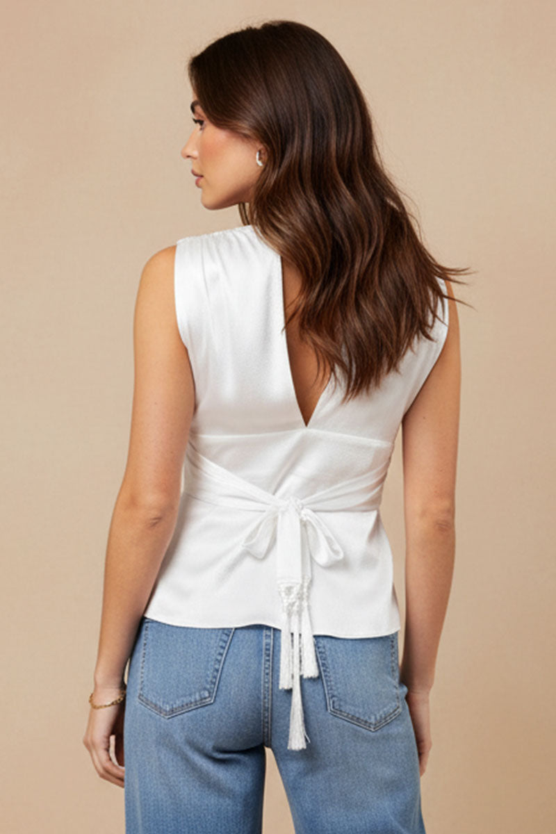 Plunging Neckline Top With Fringe Waist Tie