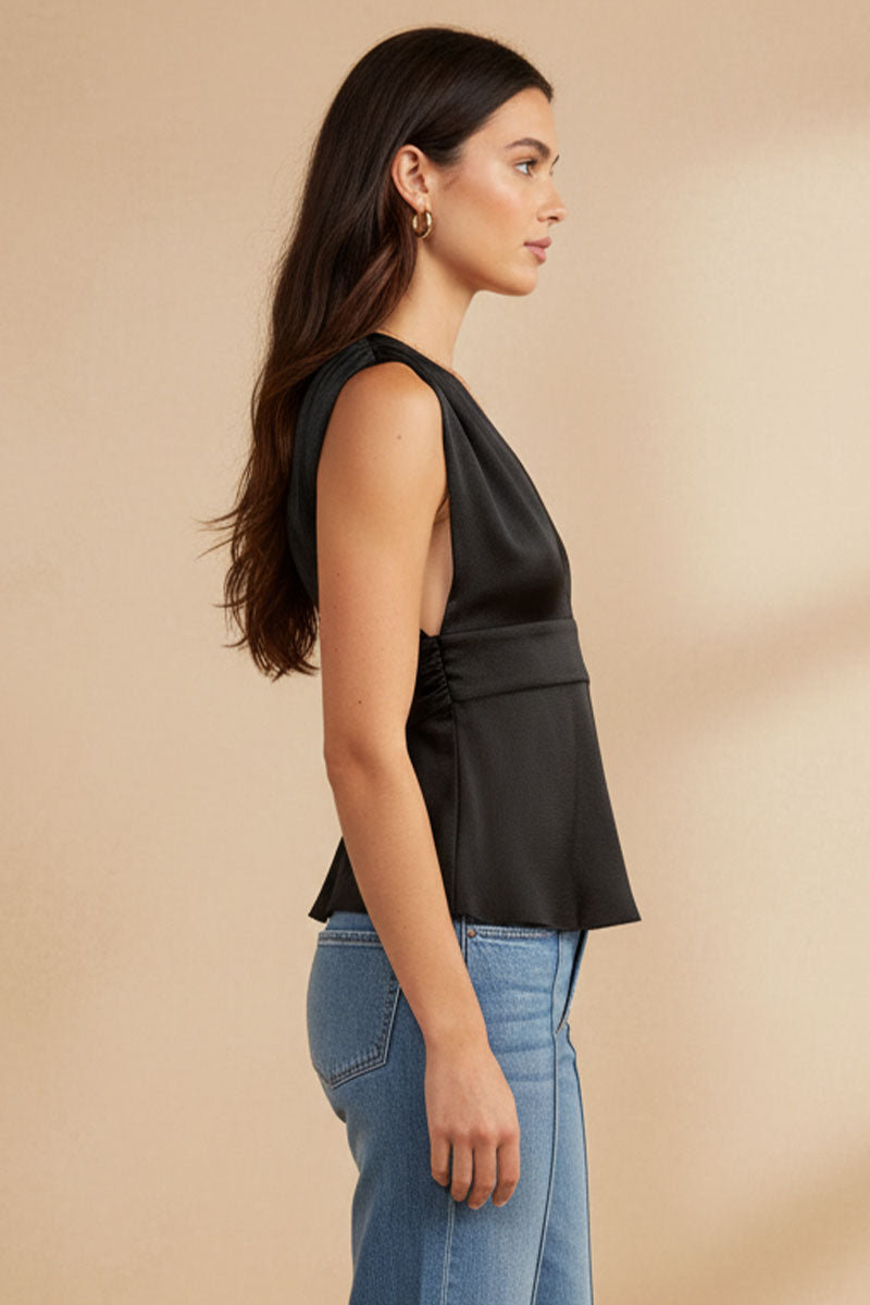 This top is designed with a flattering plunging neckline and a fringe waist tie, giving you a sophisticated and stylish look. The plunging neckline accentuates your curves, while the fringe waist tie adds a touch of fun and movement to your outfit. Make a statement with this must-have piece.