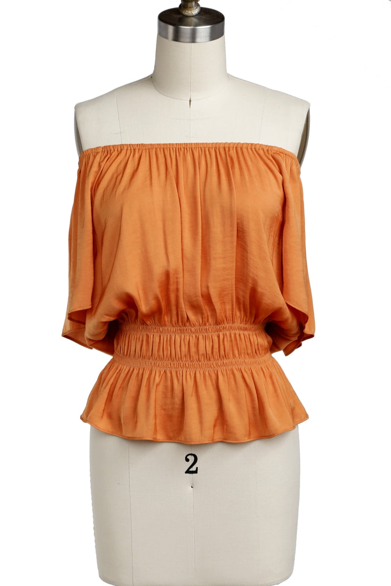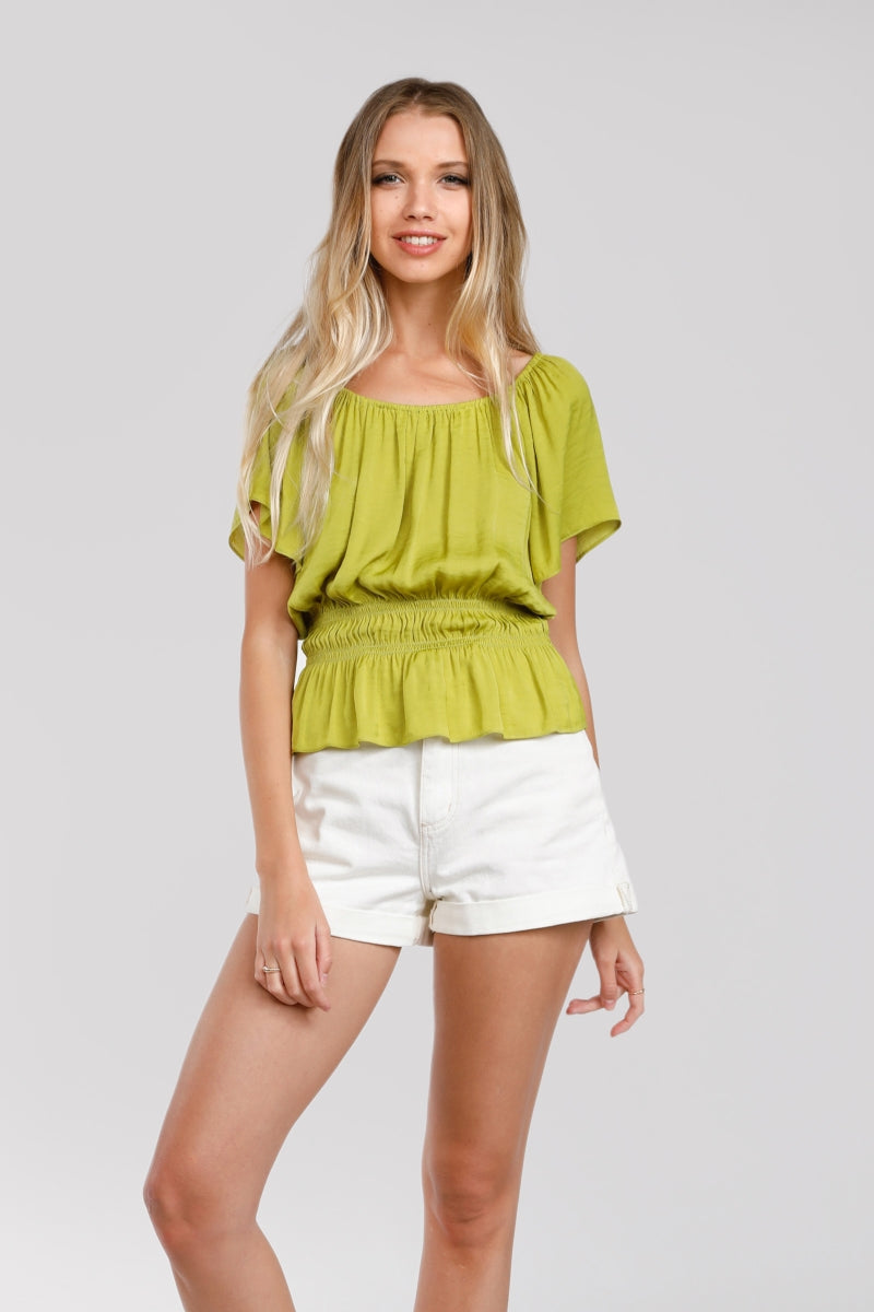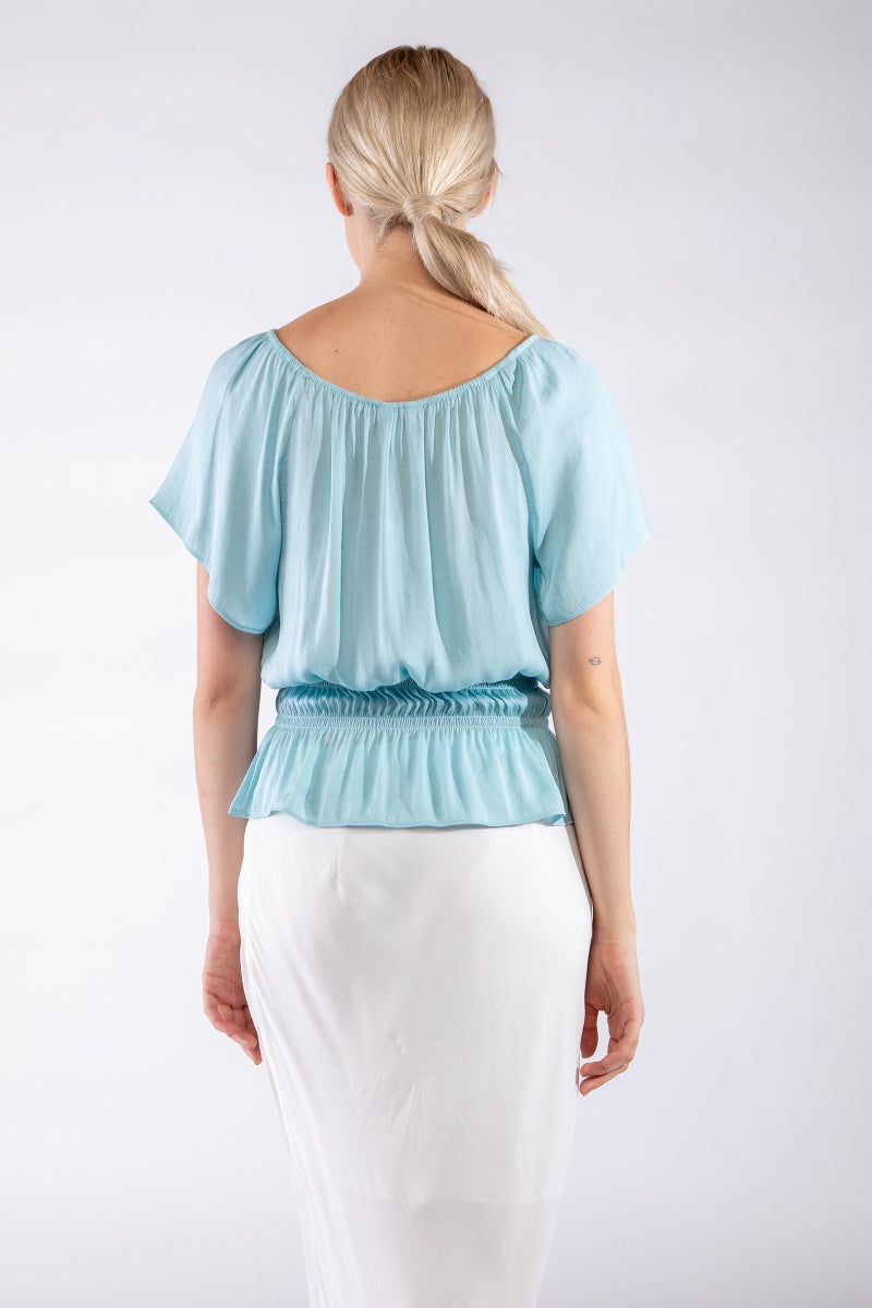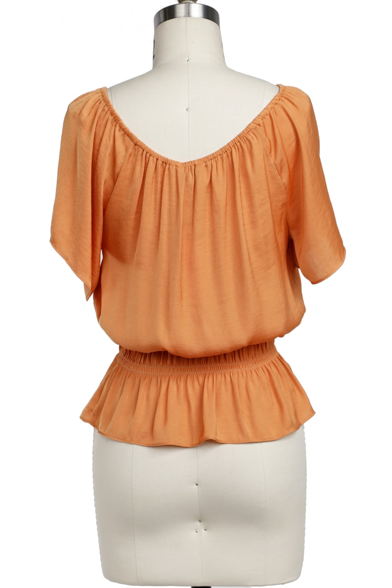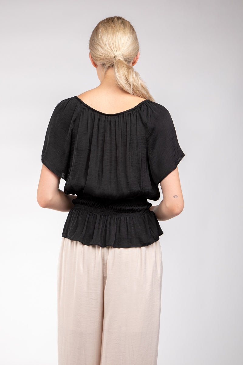 Raglan Short Sleeve Peplum Smocked Blouse