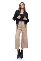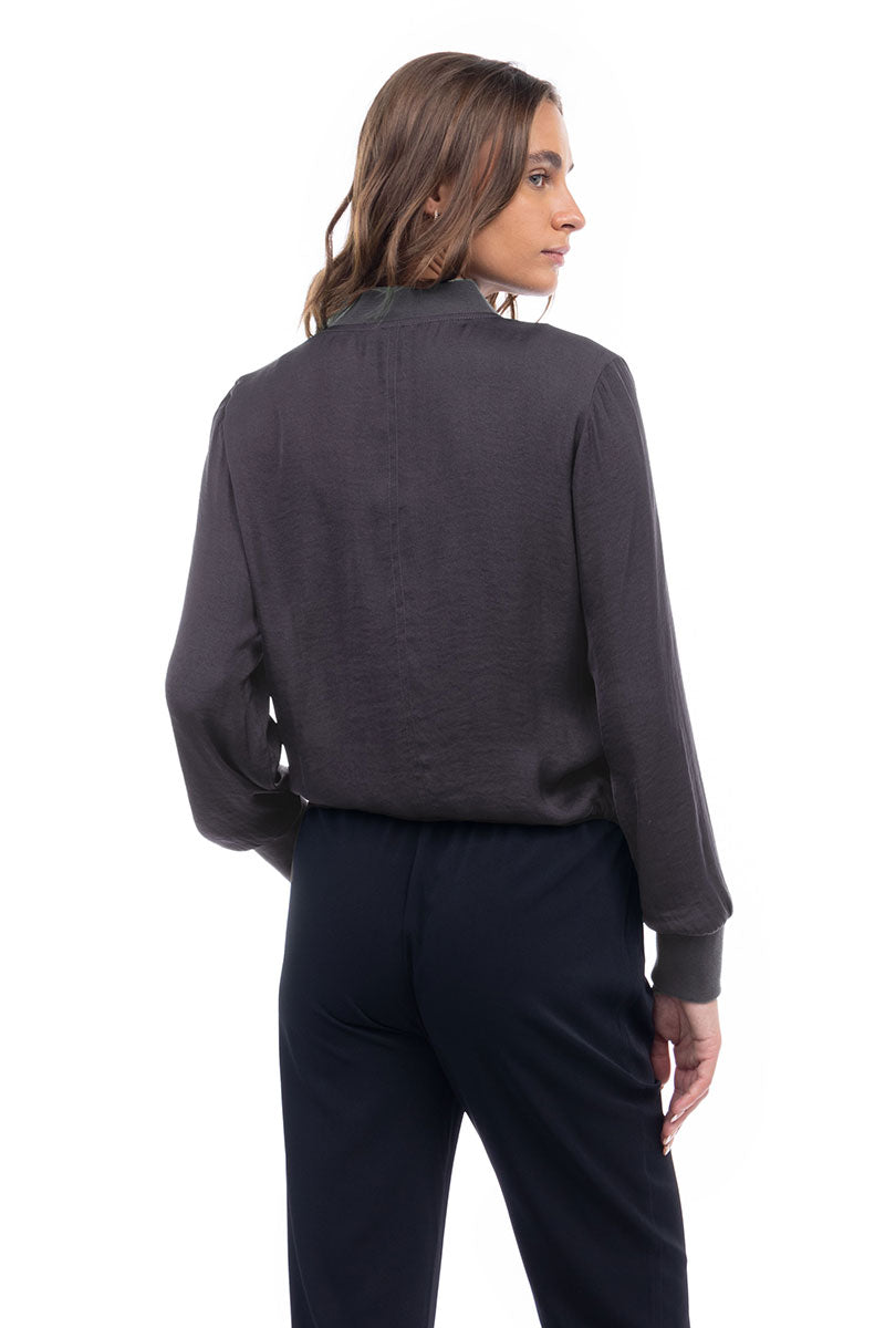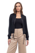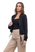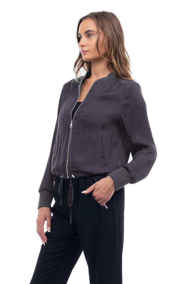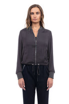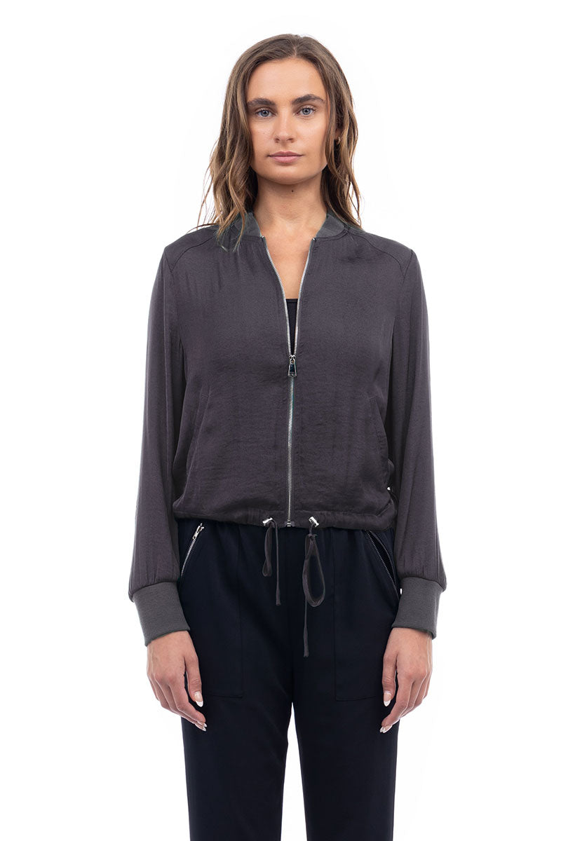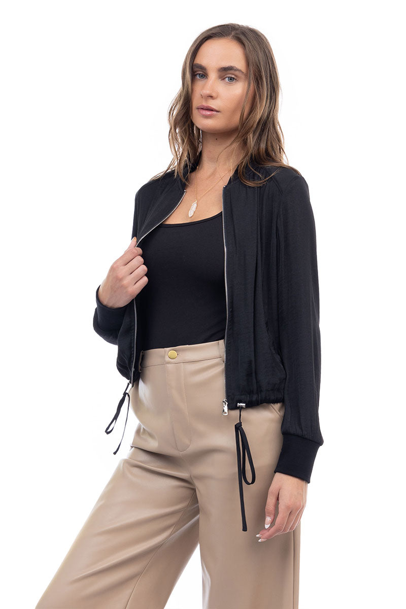 Women's Rib Contrast Satin Jacket With Waist Drawstring