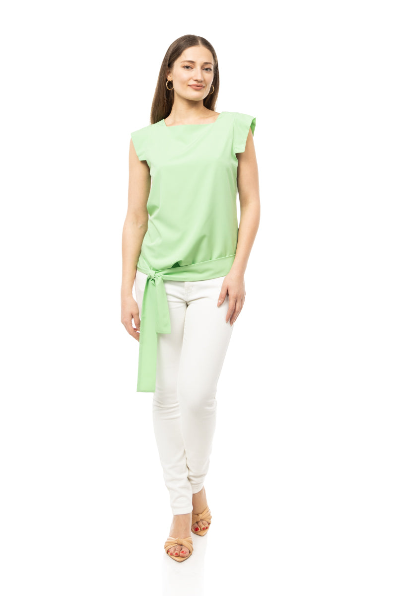 women's rounded square neck top with belt