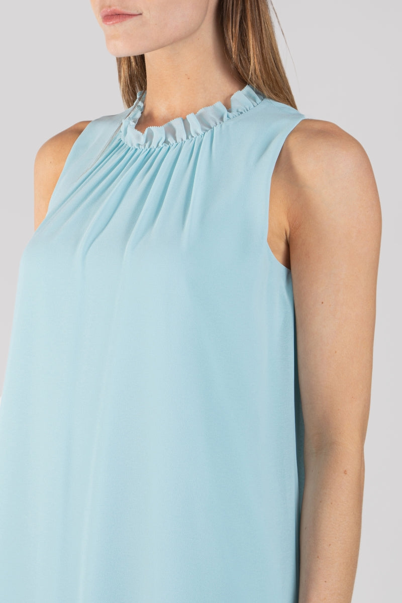 Shift Mini Dress With Pleated Neck