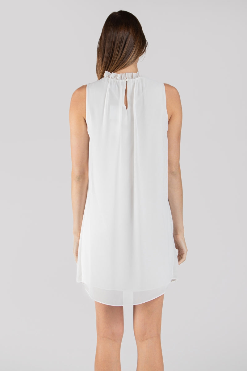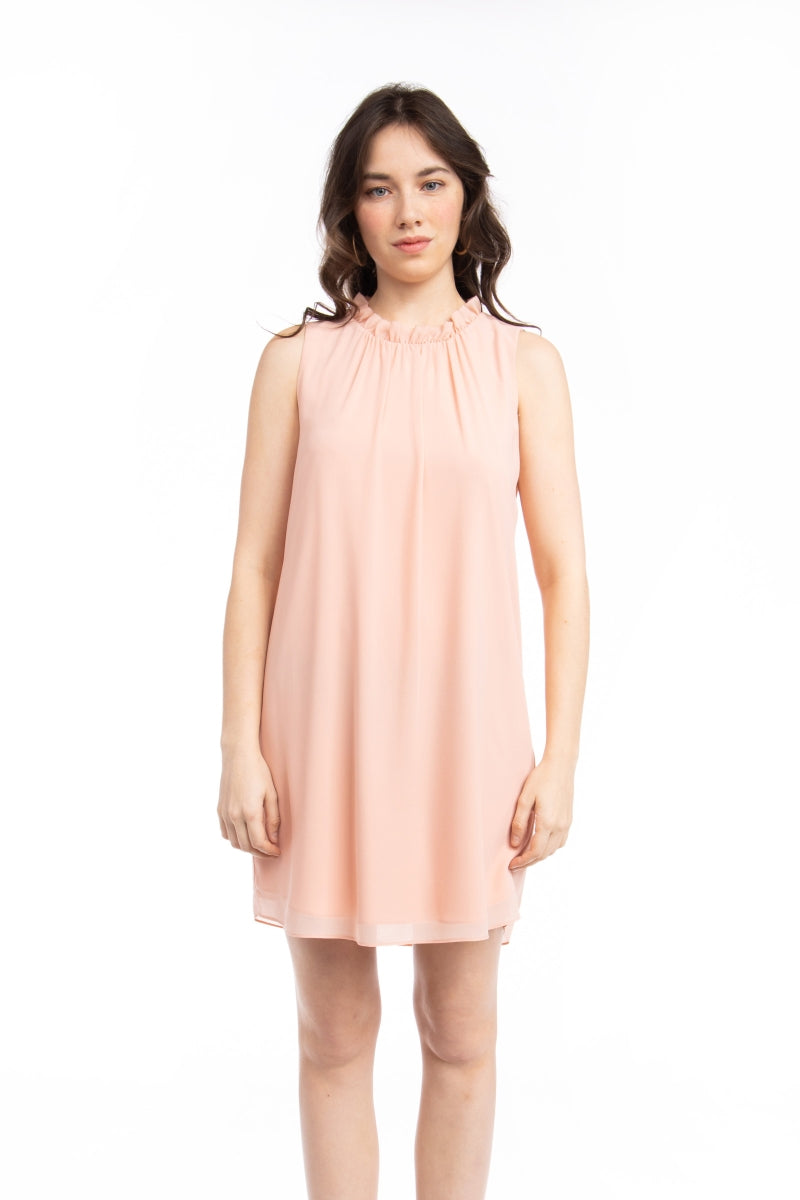 women's shift mini dress with pleated neck