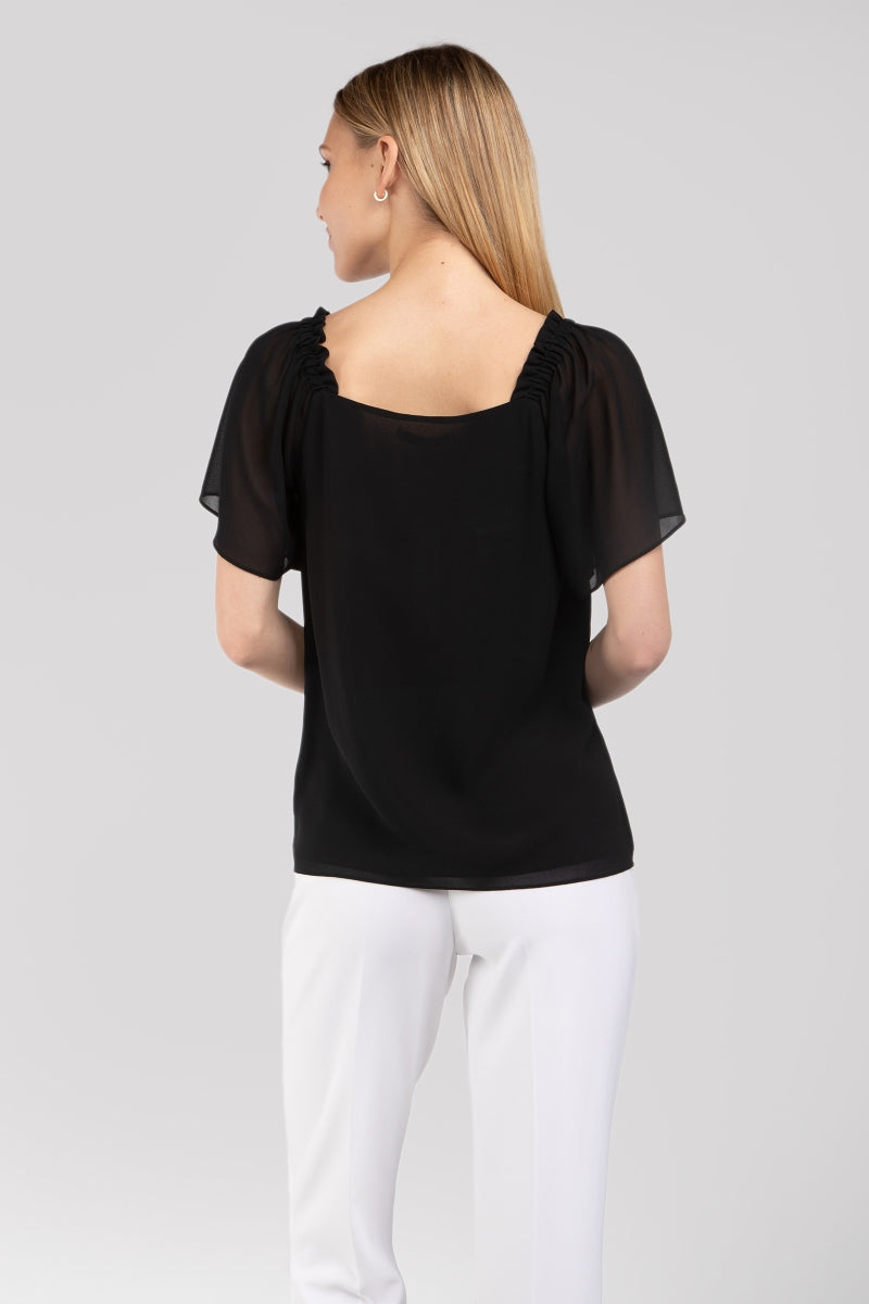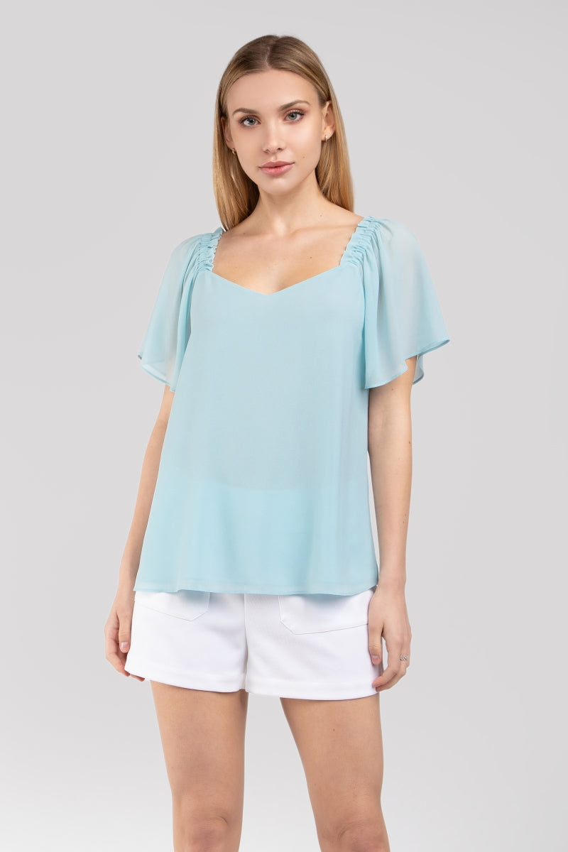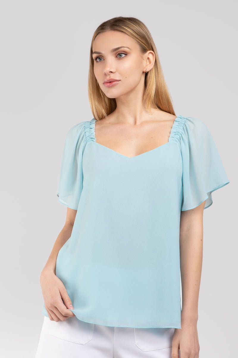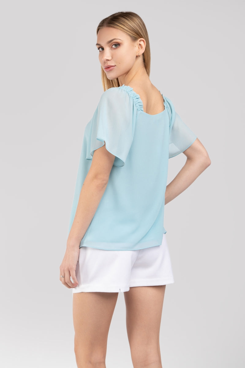 Short Sleeve Blouse With Shoulder Elastic