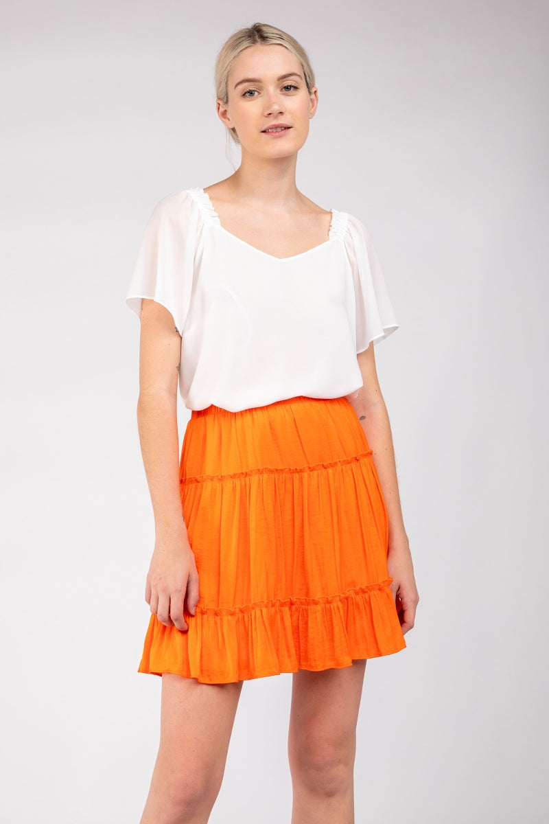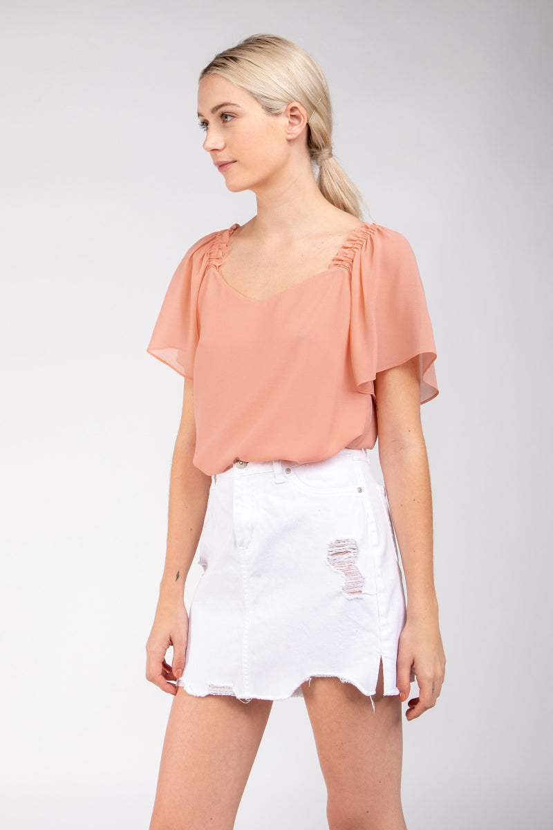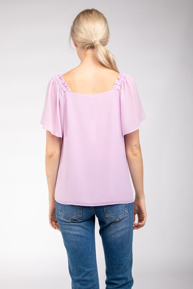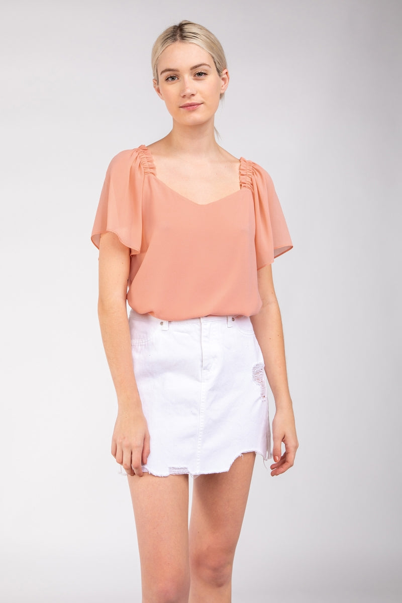 Short Sleeve Blouse With Shoulder Elastic