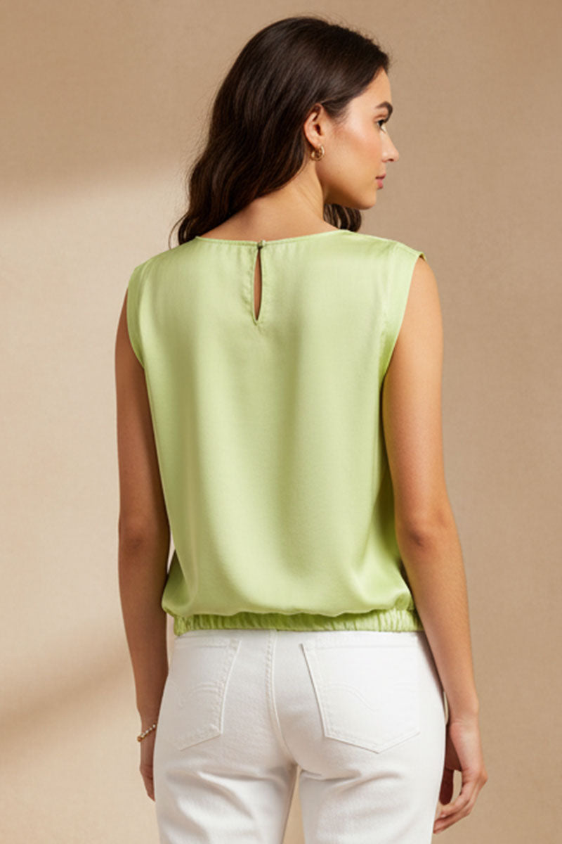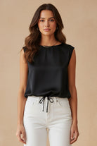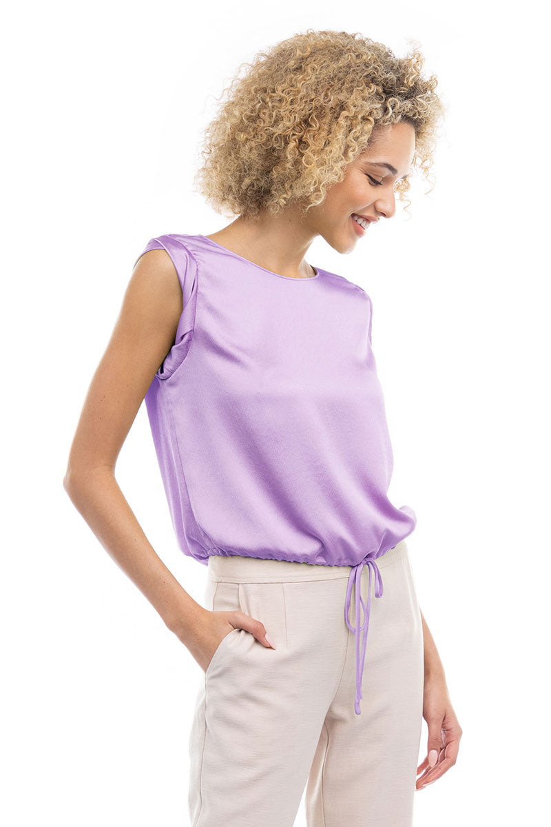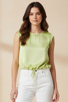 This sleeve twist top features a drawstring waist for a flattering fit. Made with high-quality fabric, it provides both style and comfort. The adjustable drawstring waist accentuates your figure, making it a versatile and trendy addition to any wardrobe. Elevate your style with this must-have top.