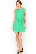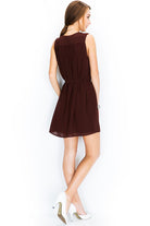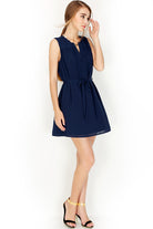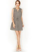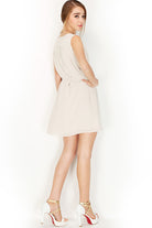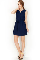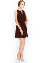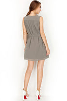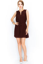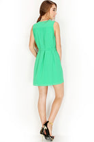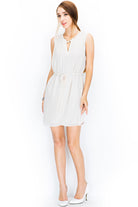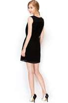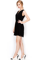 ╴Folded V-neckline adds a structured, modern touch to the sleeveless silhouette.