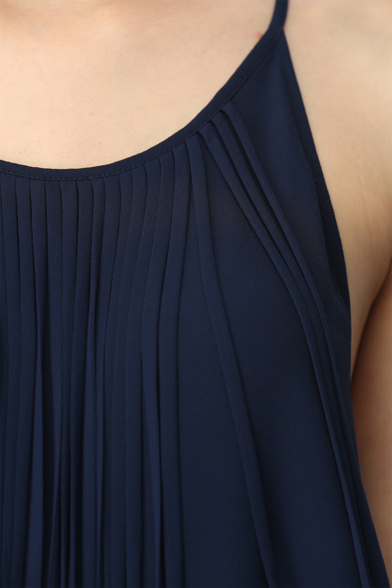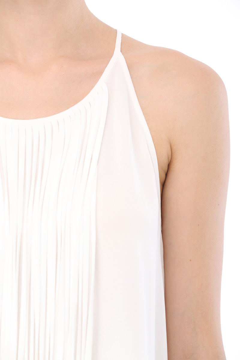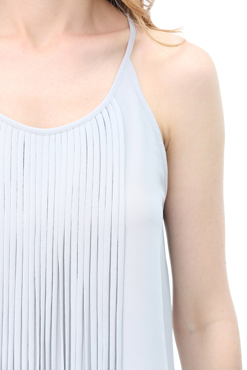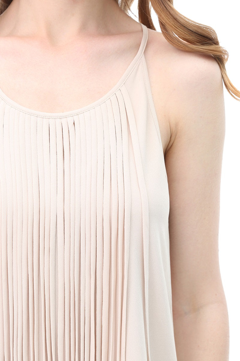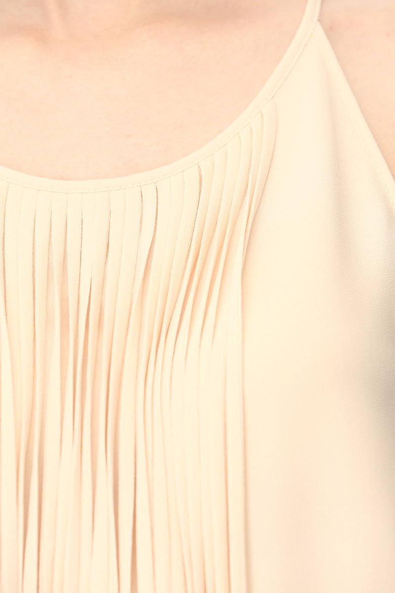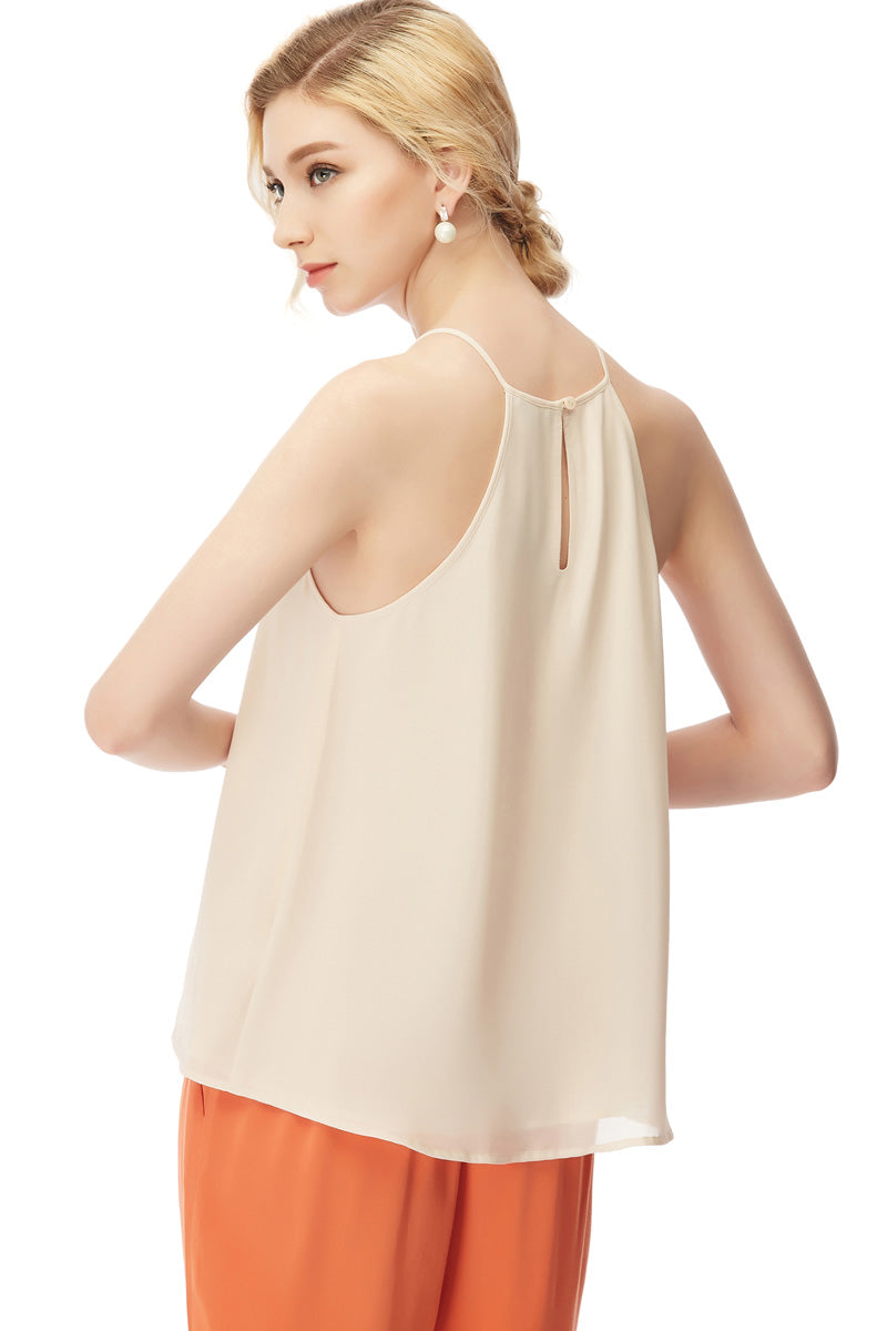 ╴Women's Spaghetti Fringe Top with Back Button Keyhole