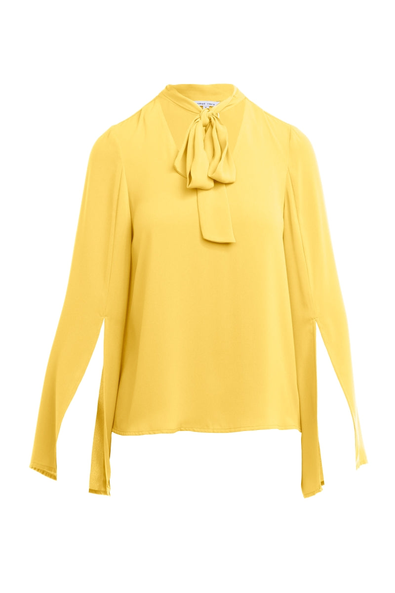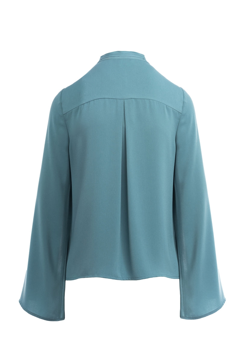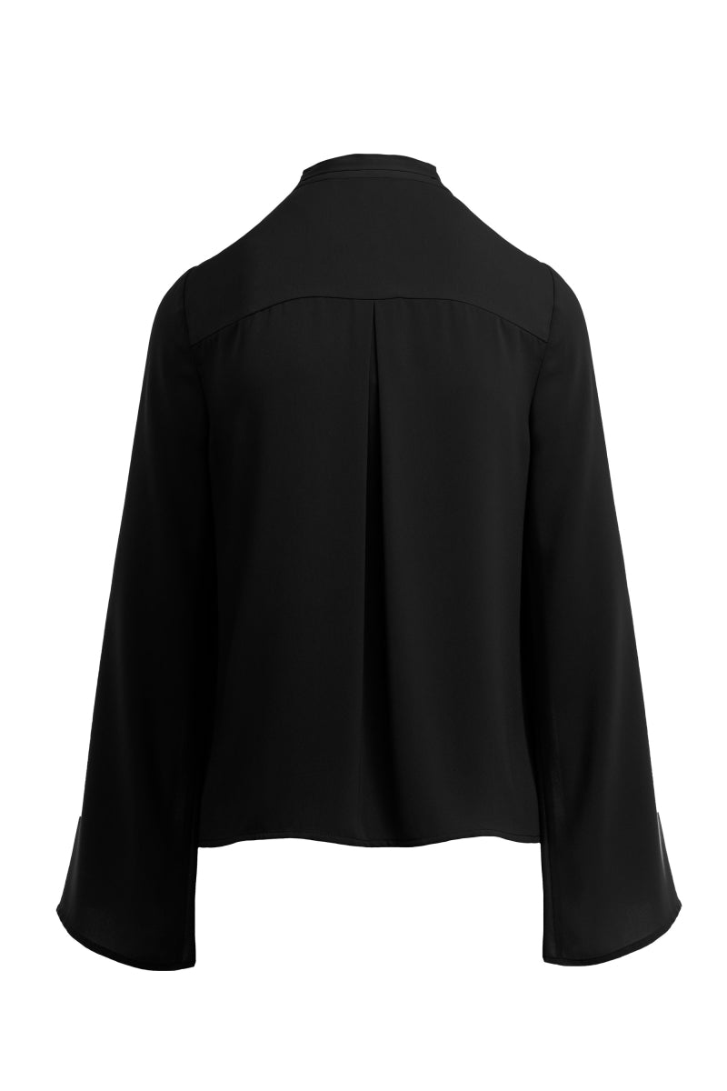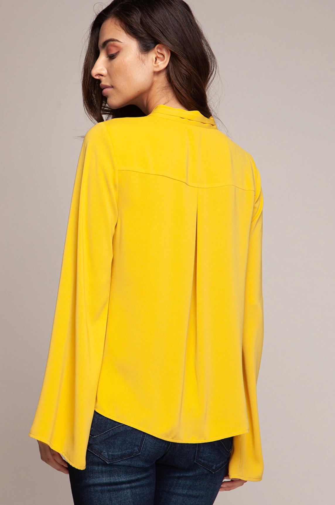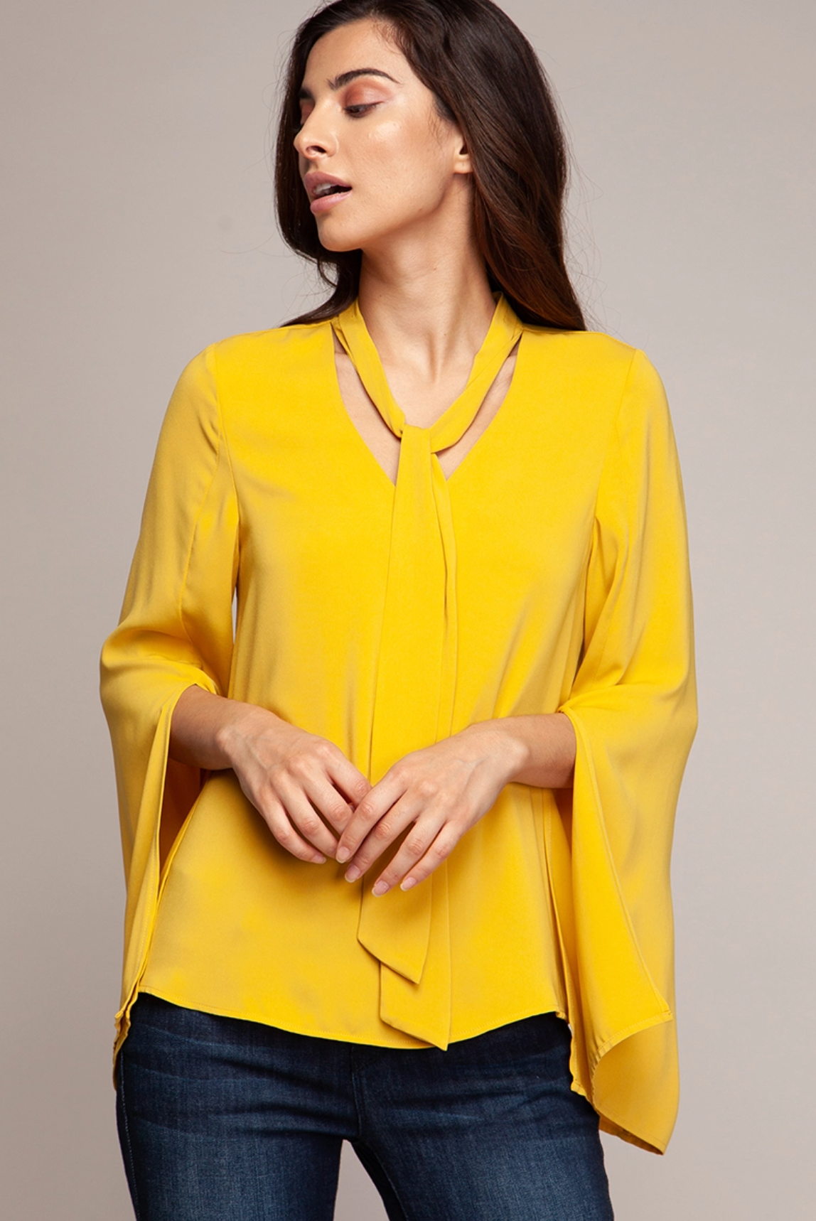 ╴Bold plunge neckline with airy split flare sleeves for added movement and flair.