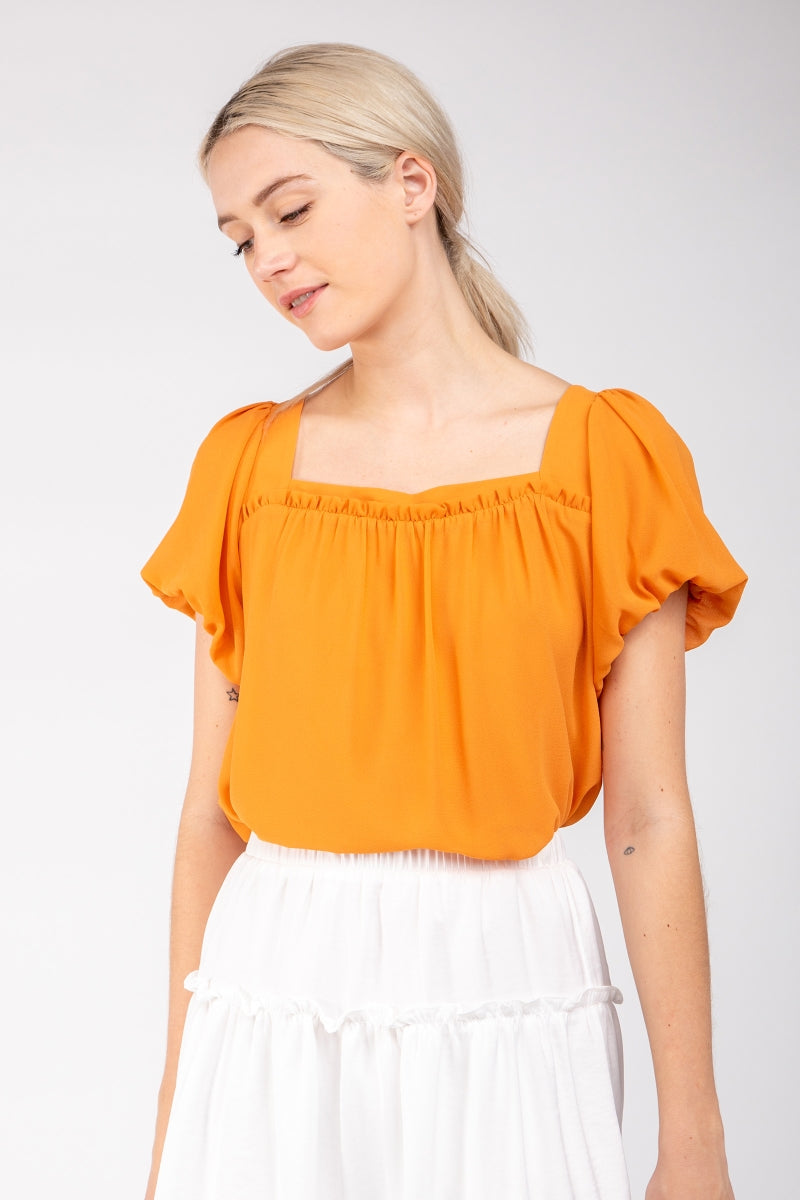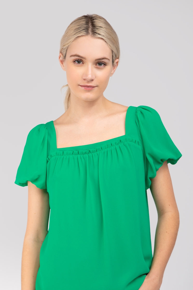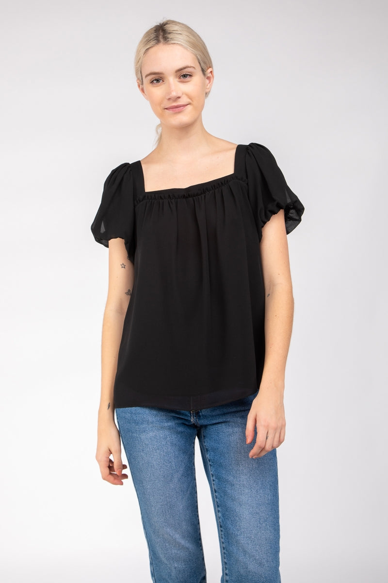Square Neck Short Balloon Sleeve Top