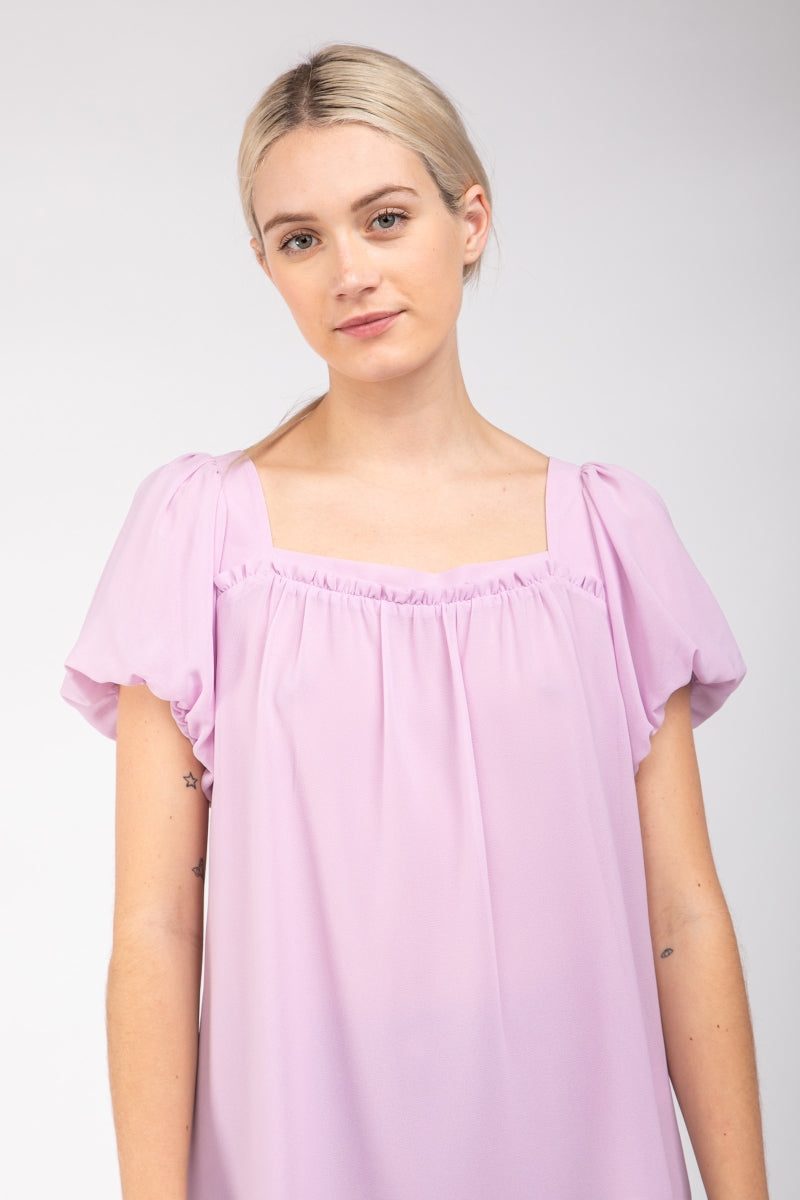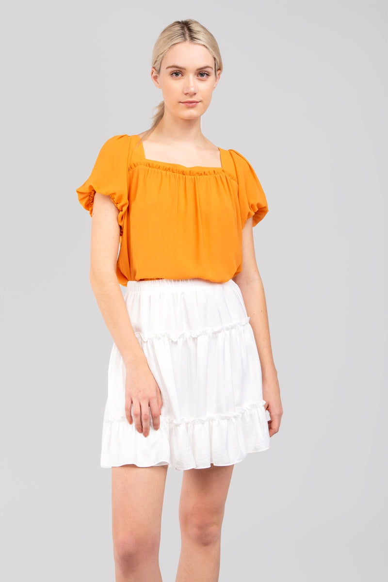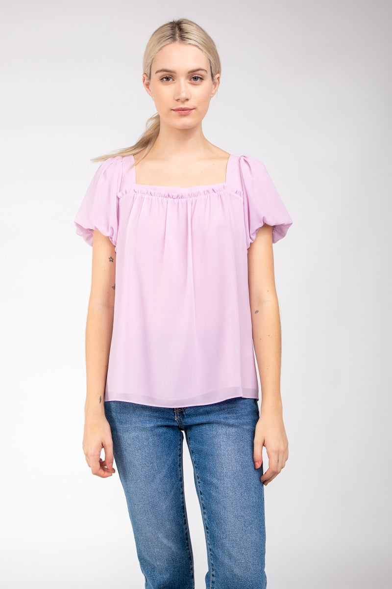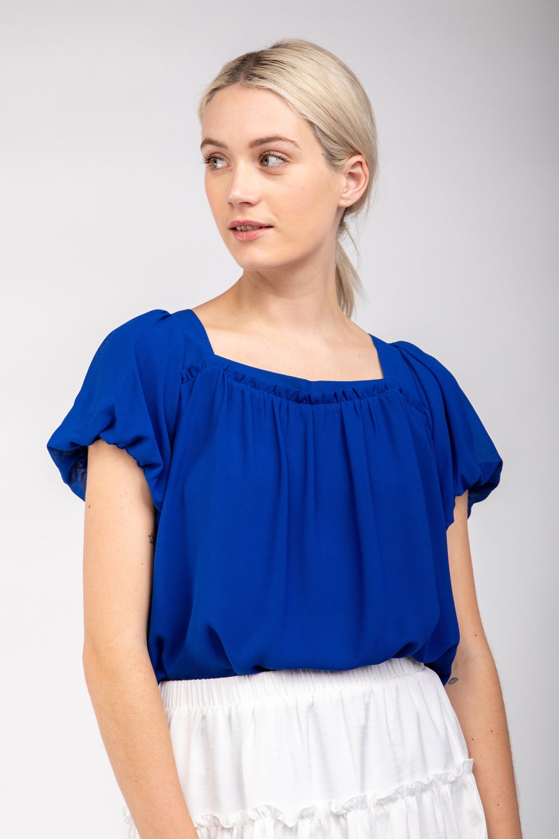 Square Neck Short Balloon Sleeve Top
