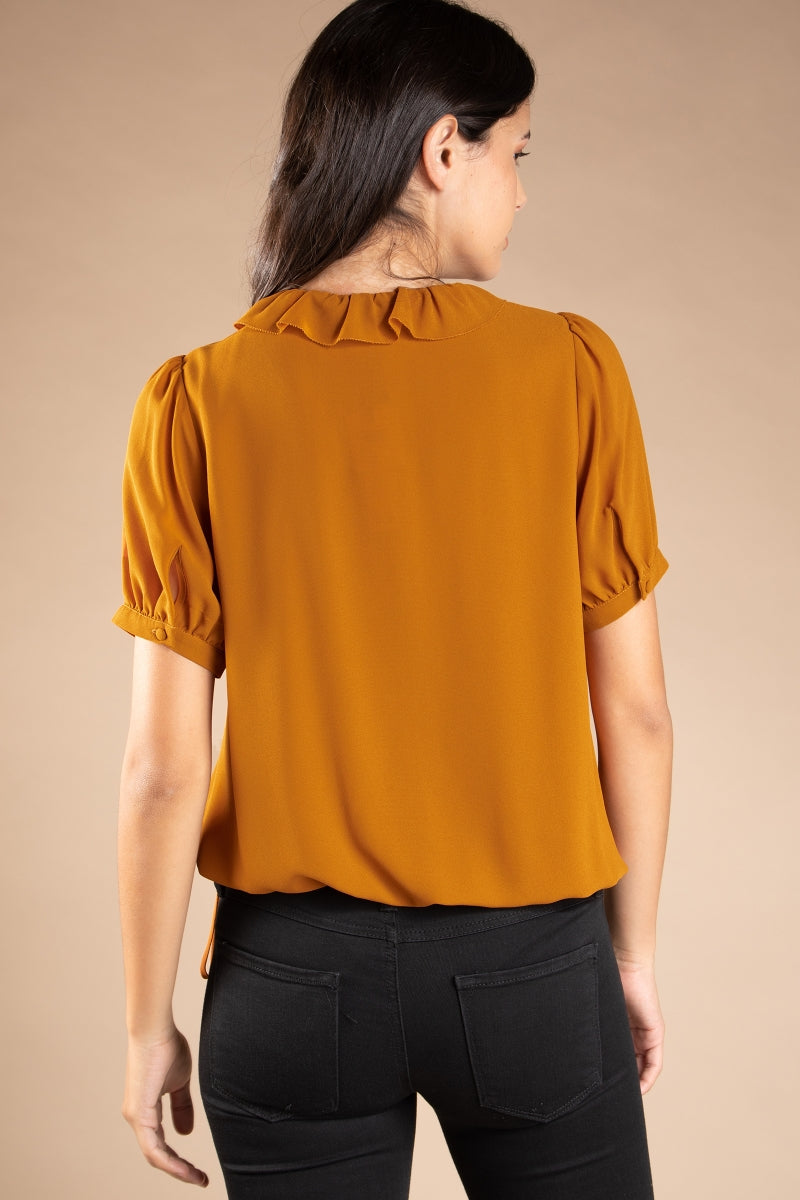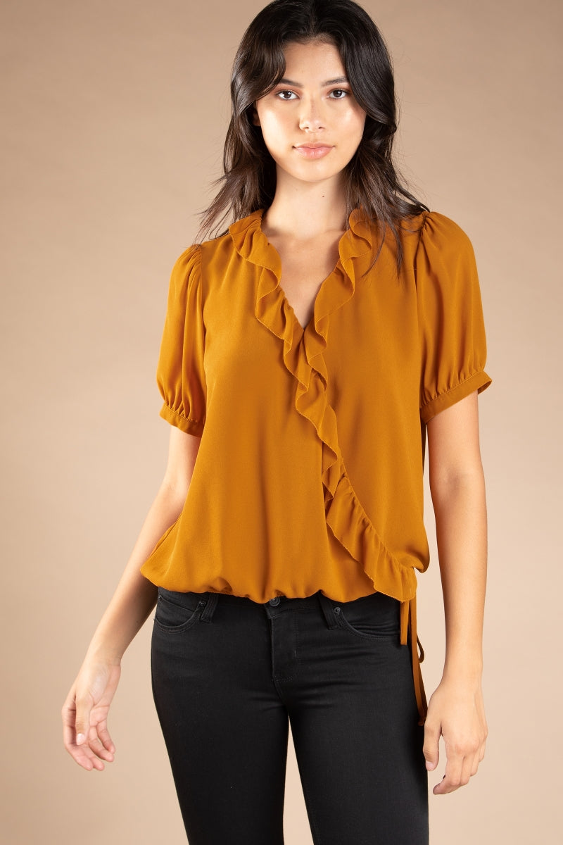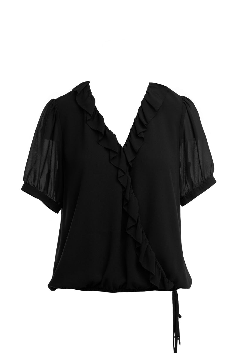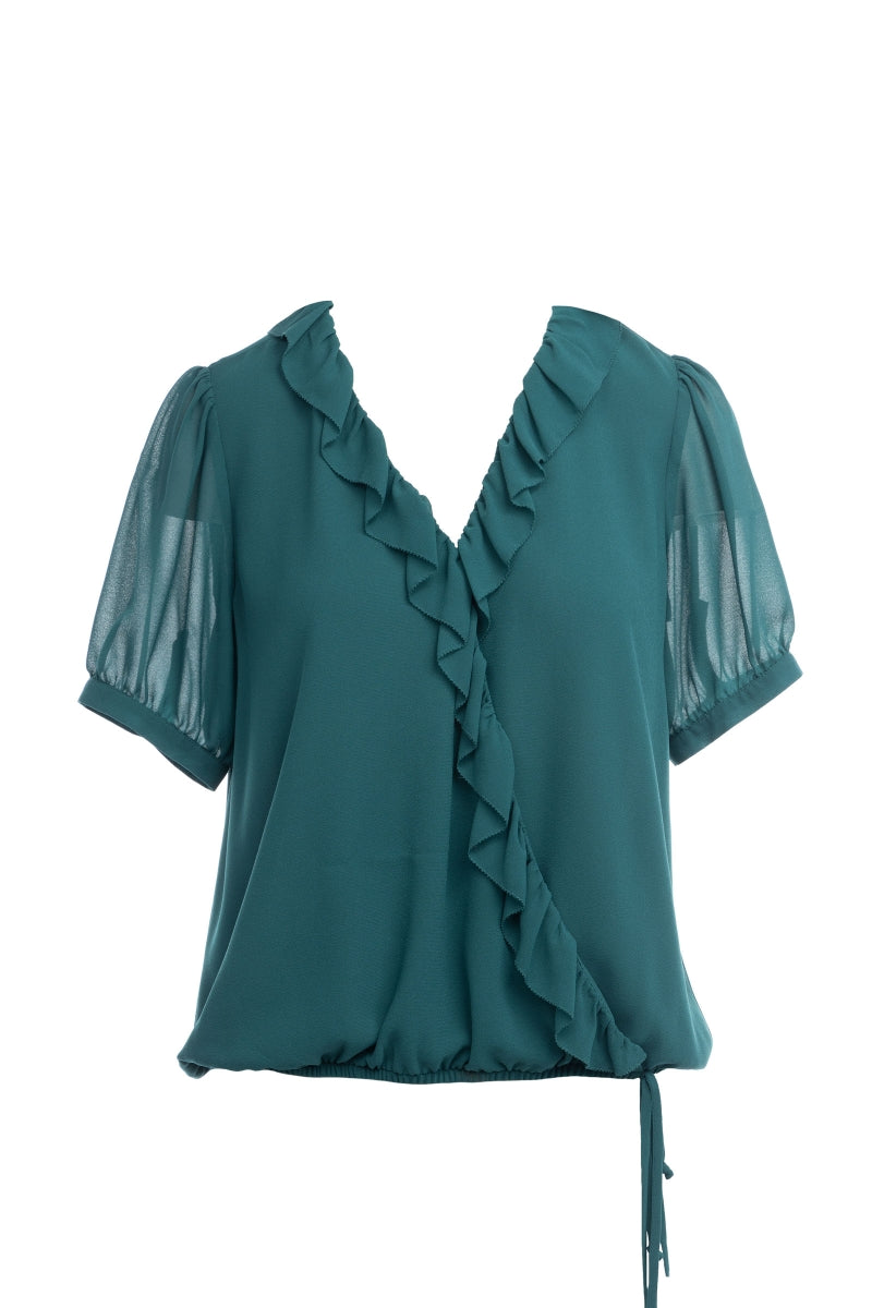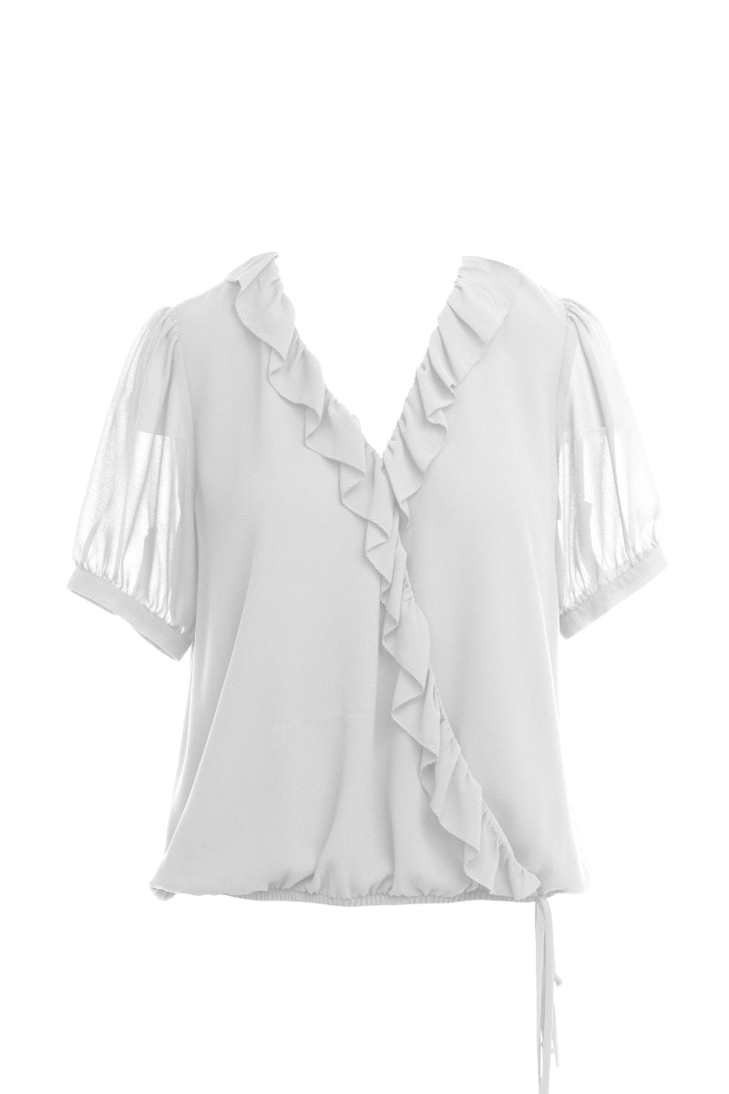 ╴Surplice Elasticized Waist Short Sleeve Blouse