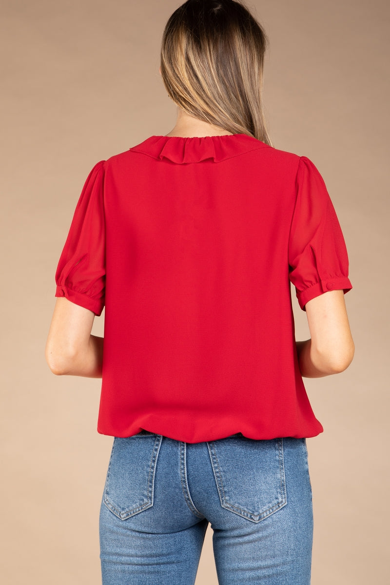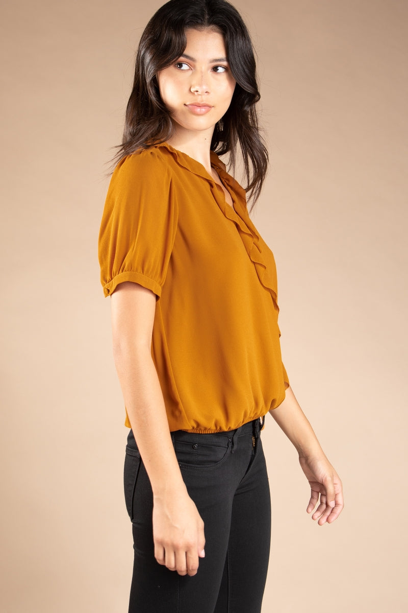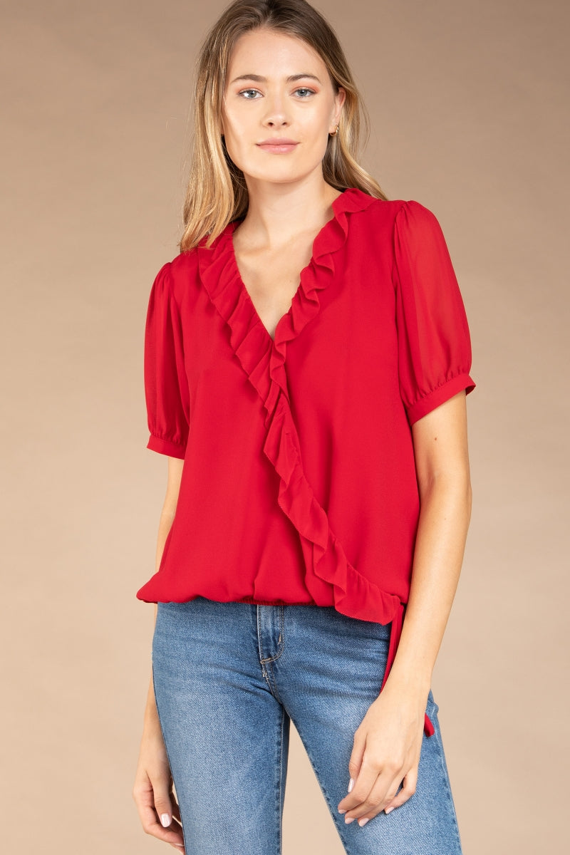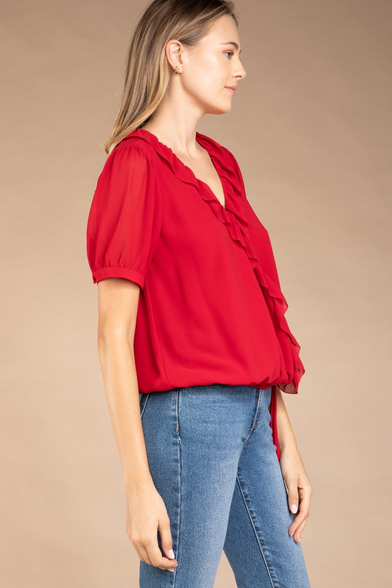 Surplice Elasticized Waist Short Sleeve Blouse