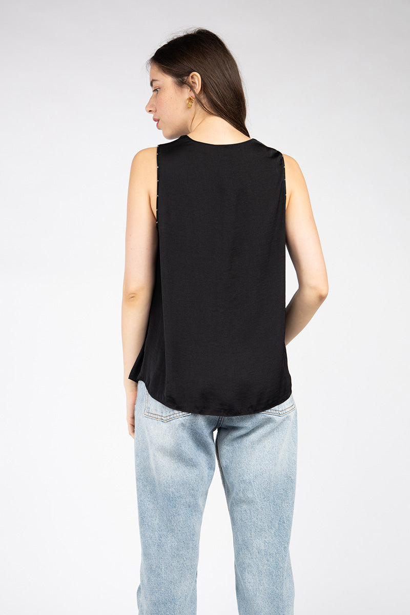 ╴Women's V-Neck Sleeveless Top with Bead Trim Detail