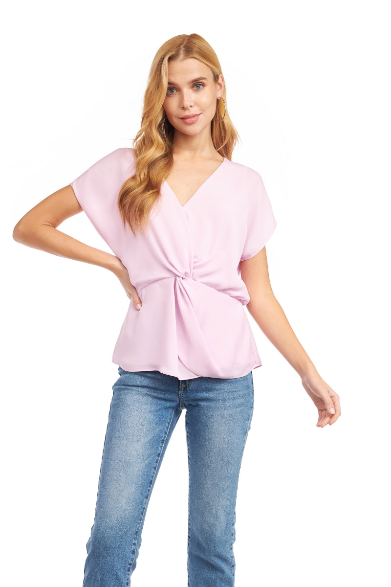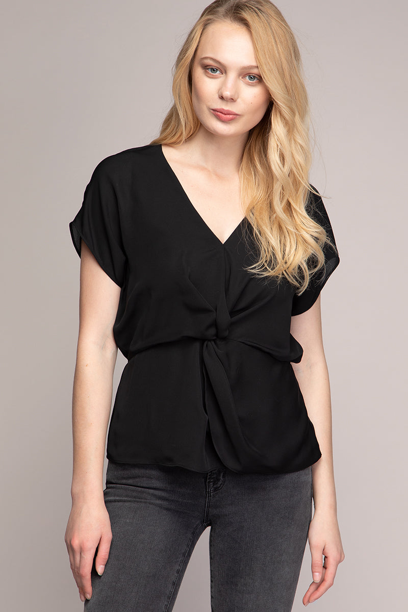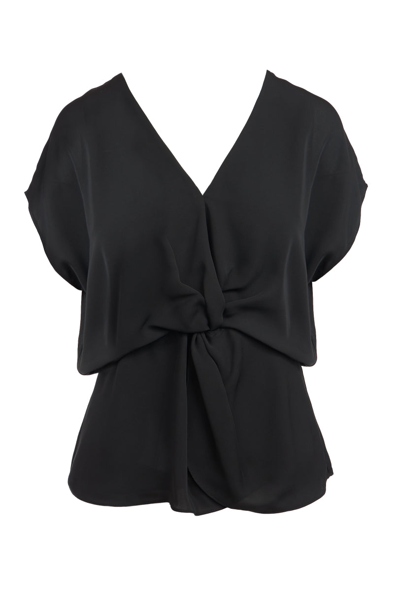 V Neck Twisted Detail Blouse With Invisible Zipper
