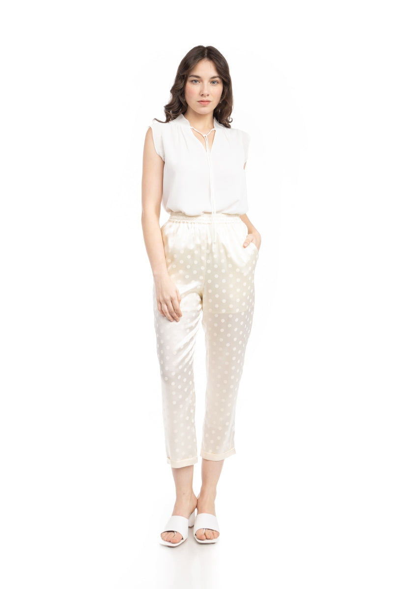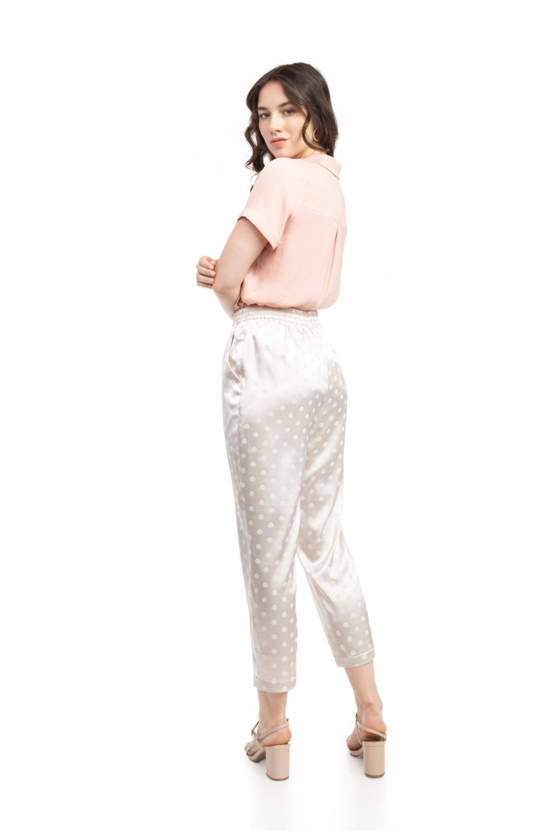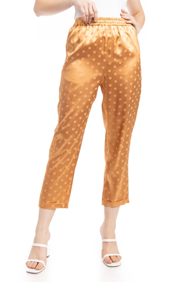 Crop Straight Waist Elastic Satin Jacquard Pants