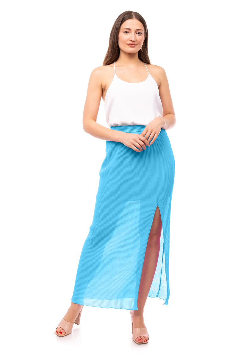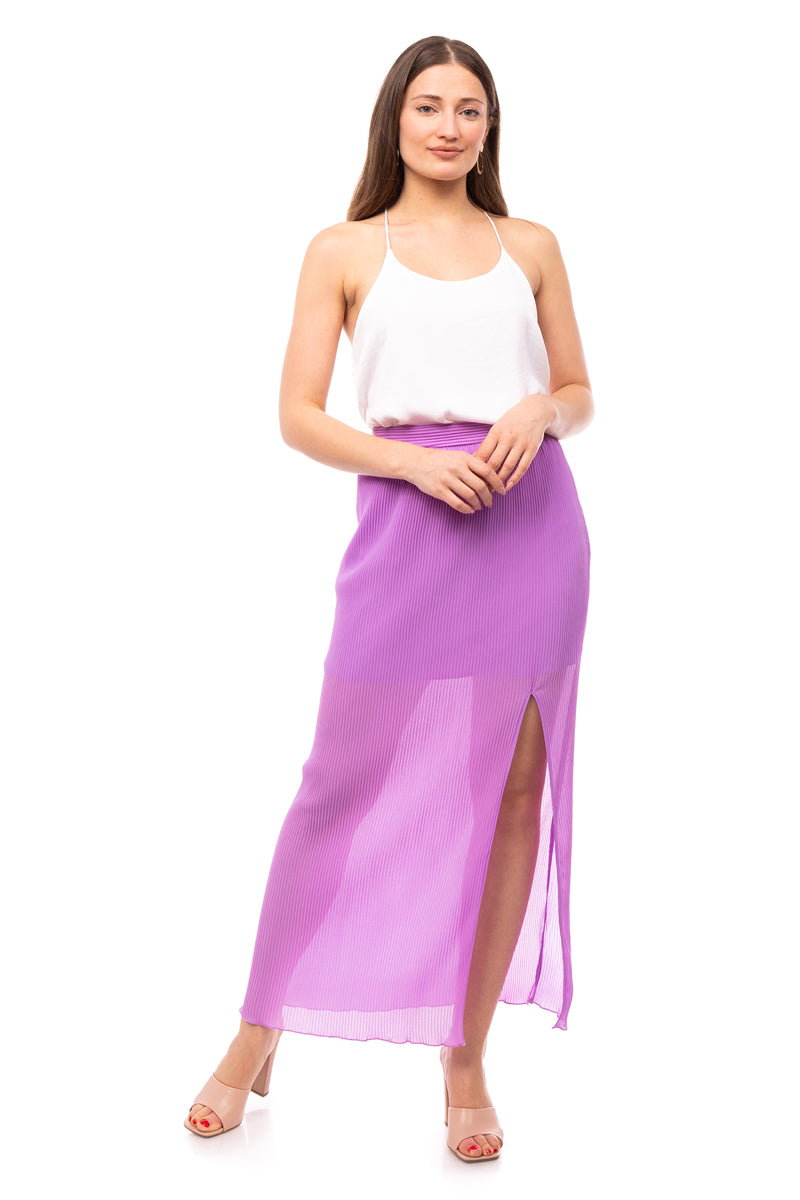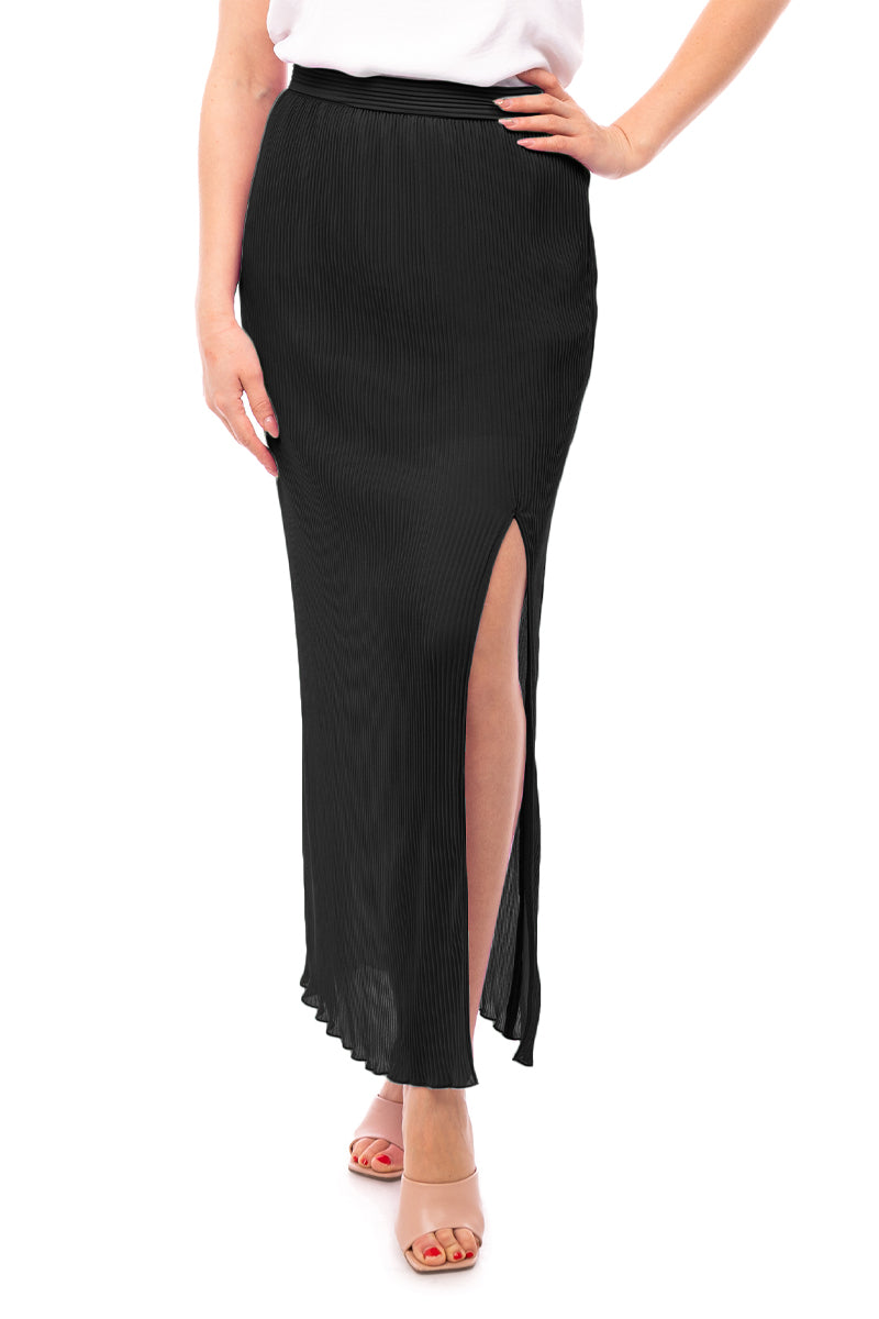 Plisse Maxi Skirt With Slit