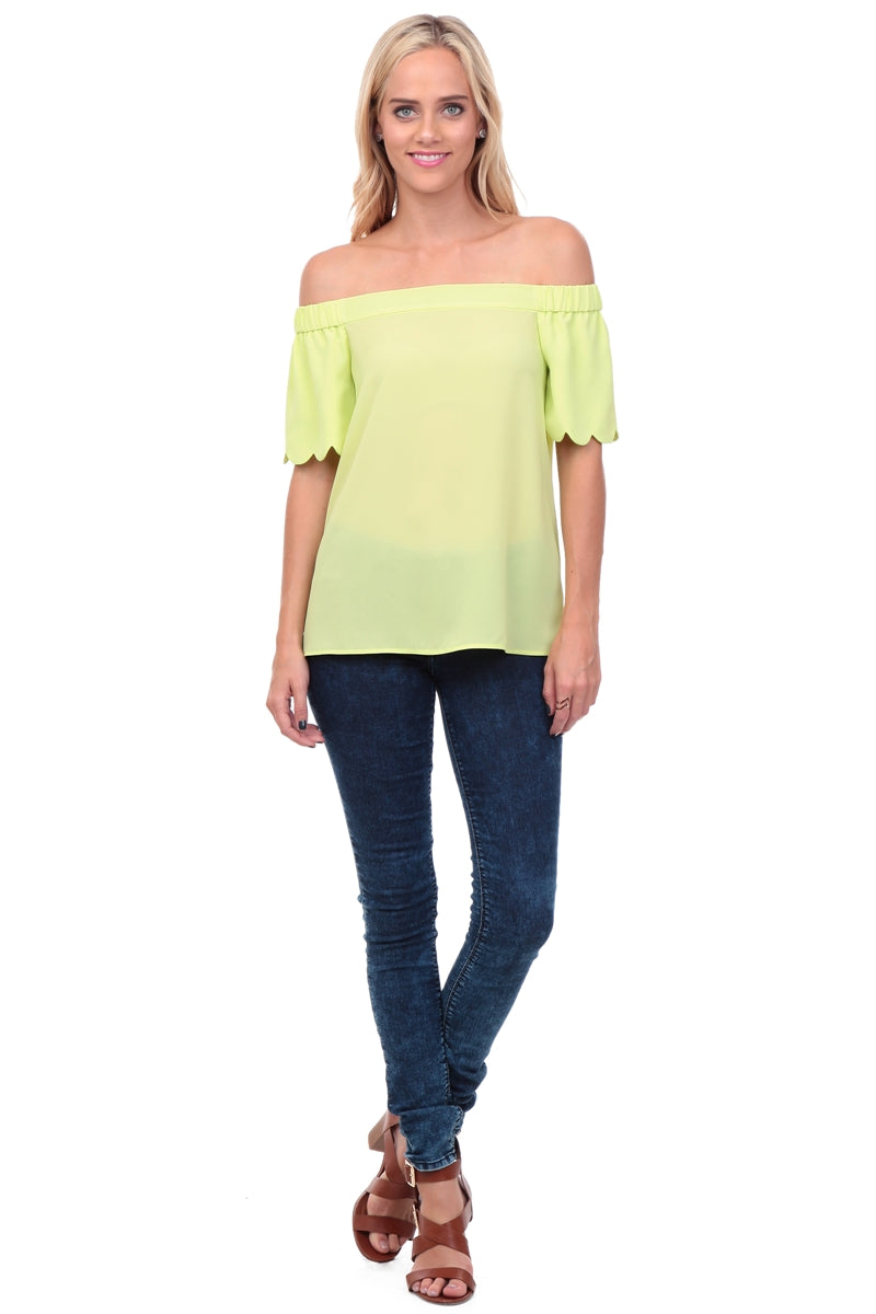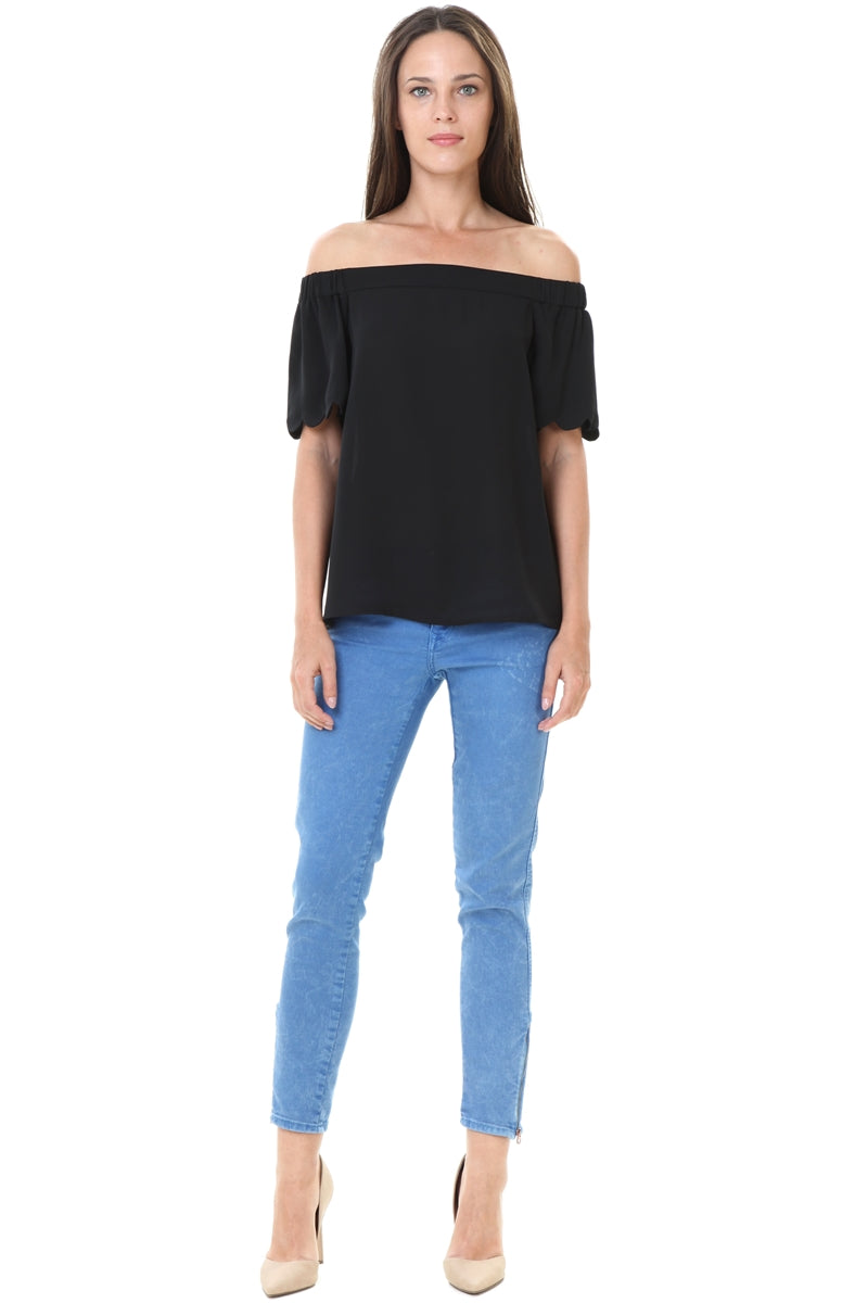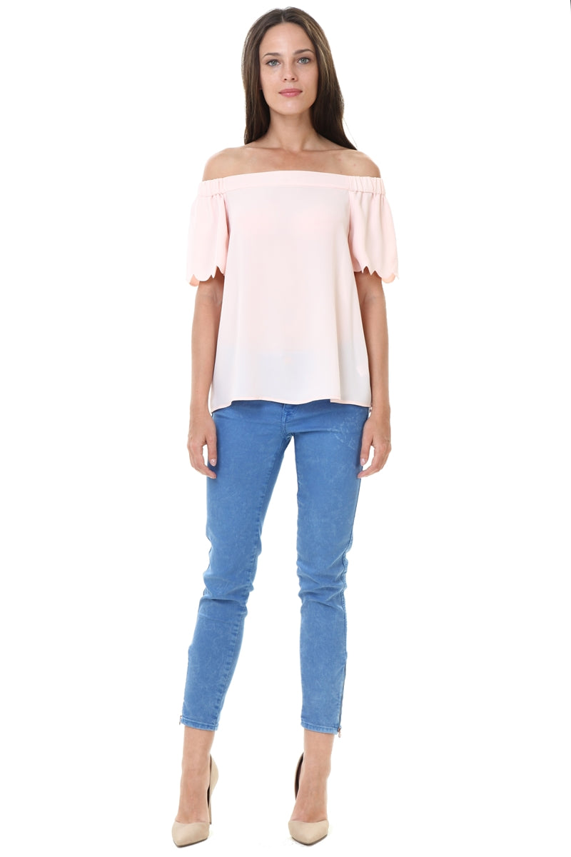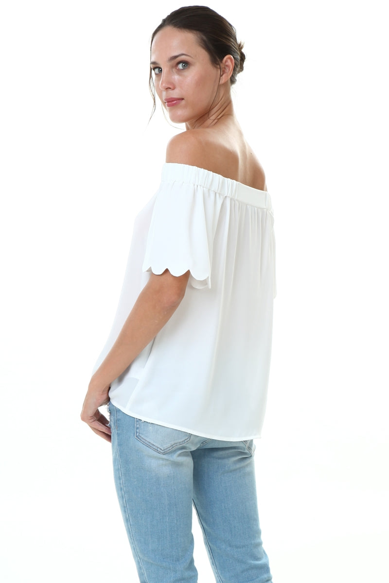 Off Shoulder Scalloped Sleeve Blouse