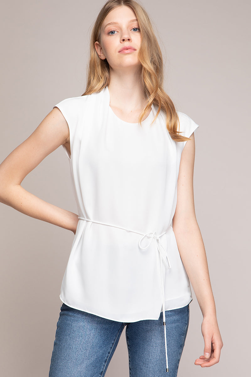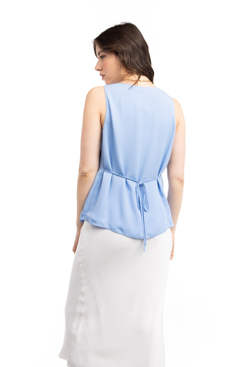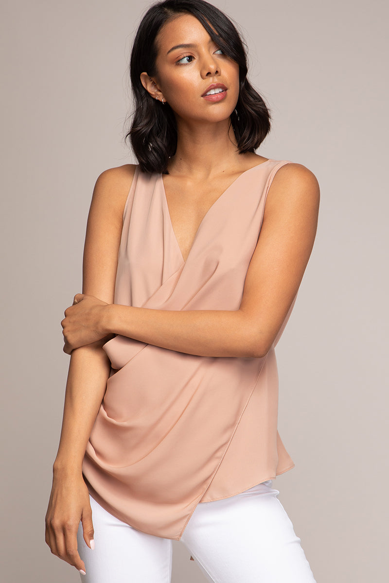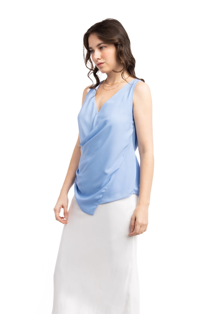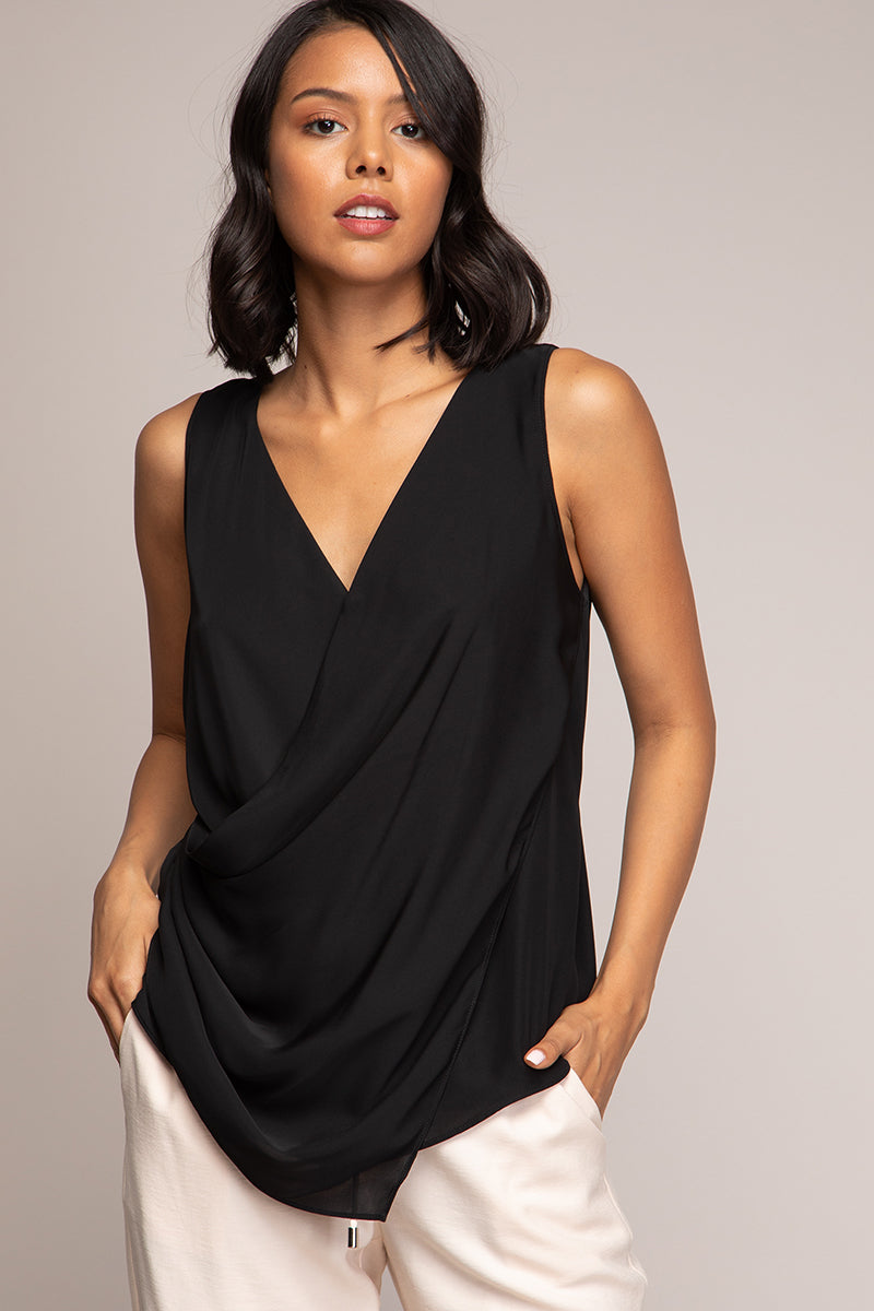 Draped Surplice Sleeveless Blouse