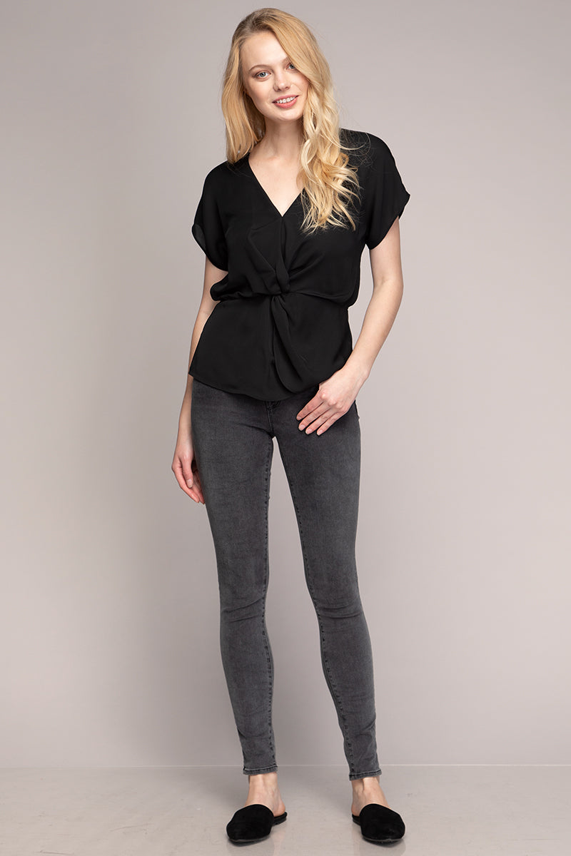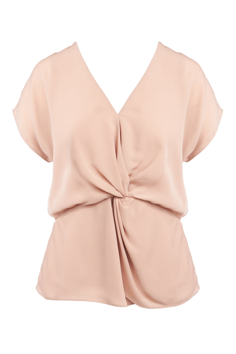 V Neck Twisted Detail Blouse With Invisible Zipper