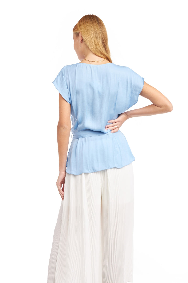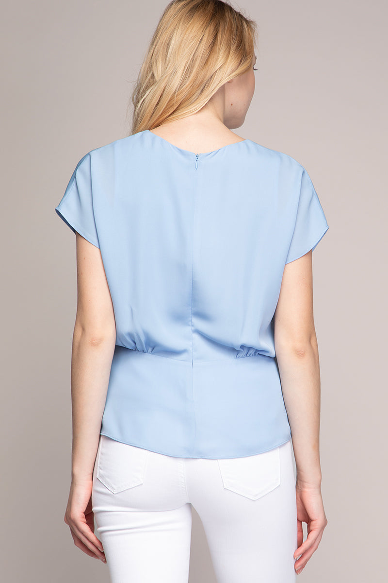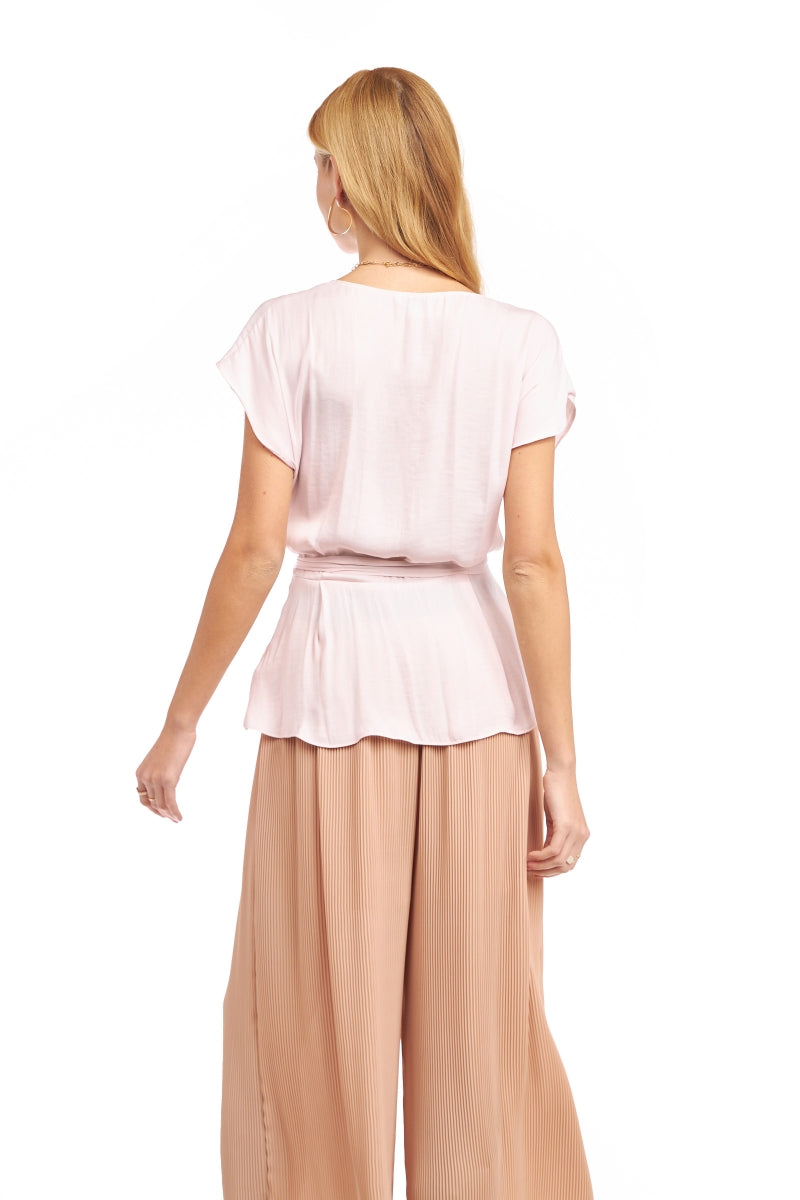 Surplice Blouse With Cinched Waist Tie