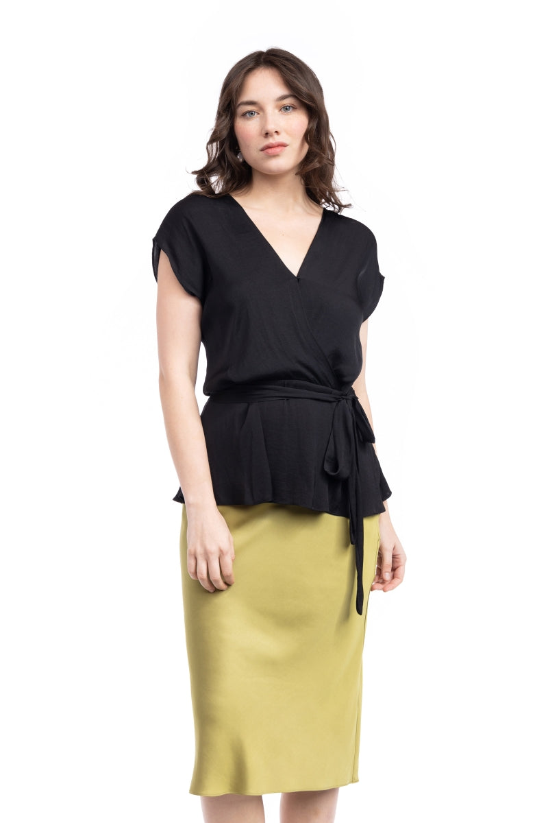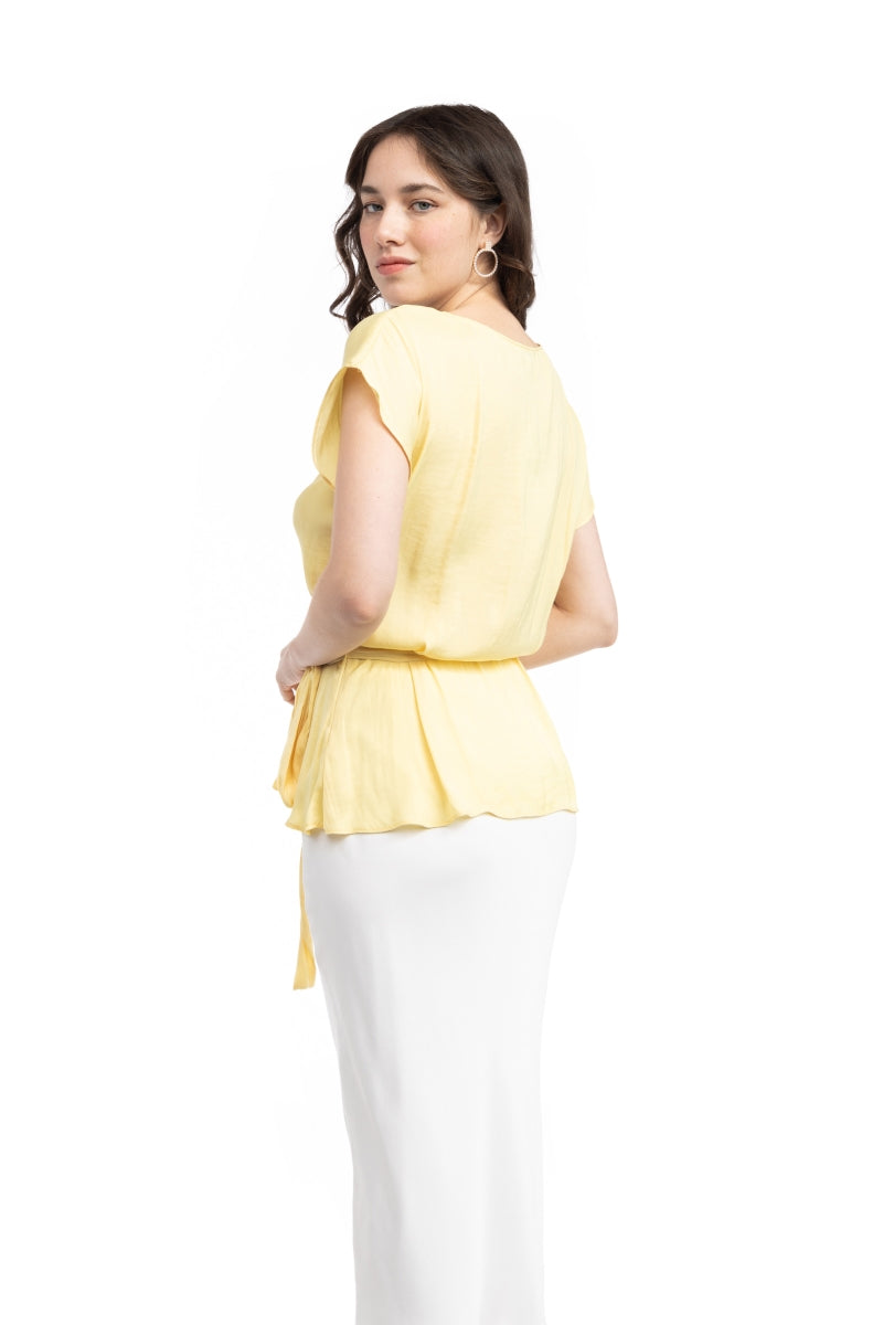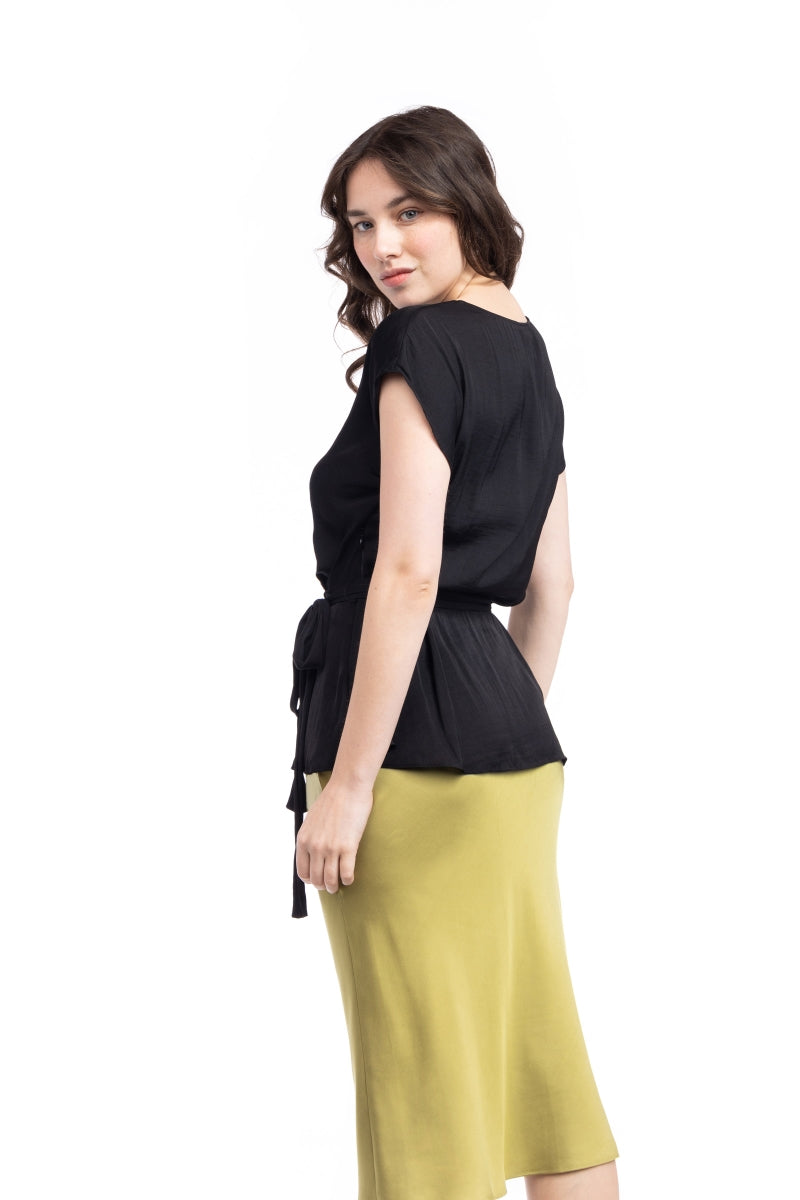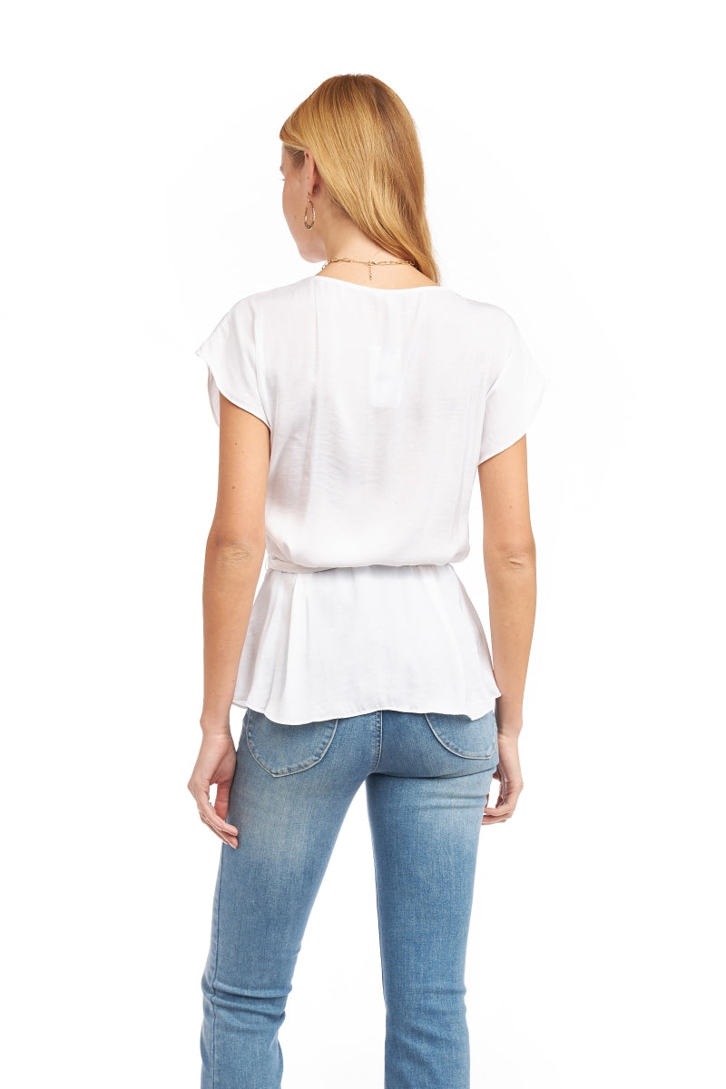 Surplice Blouse With Cinched Waist Tie