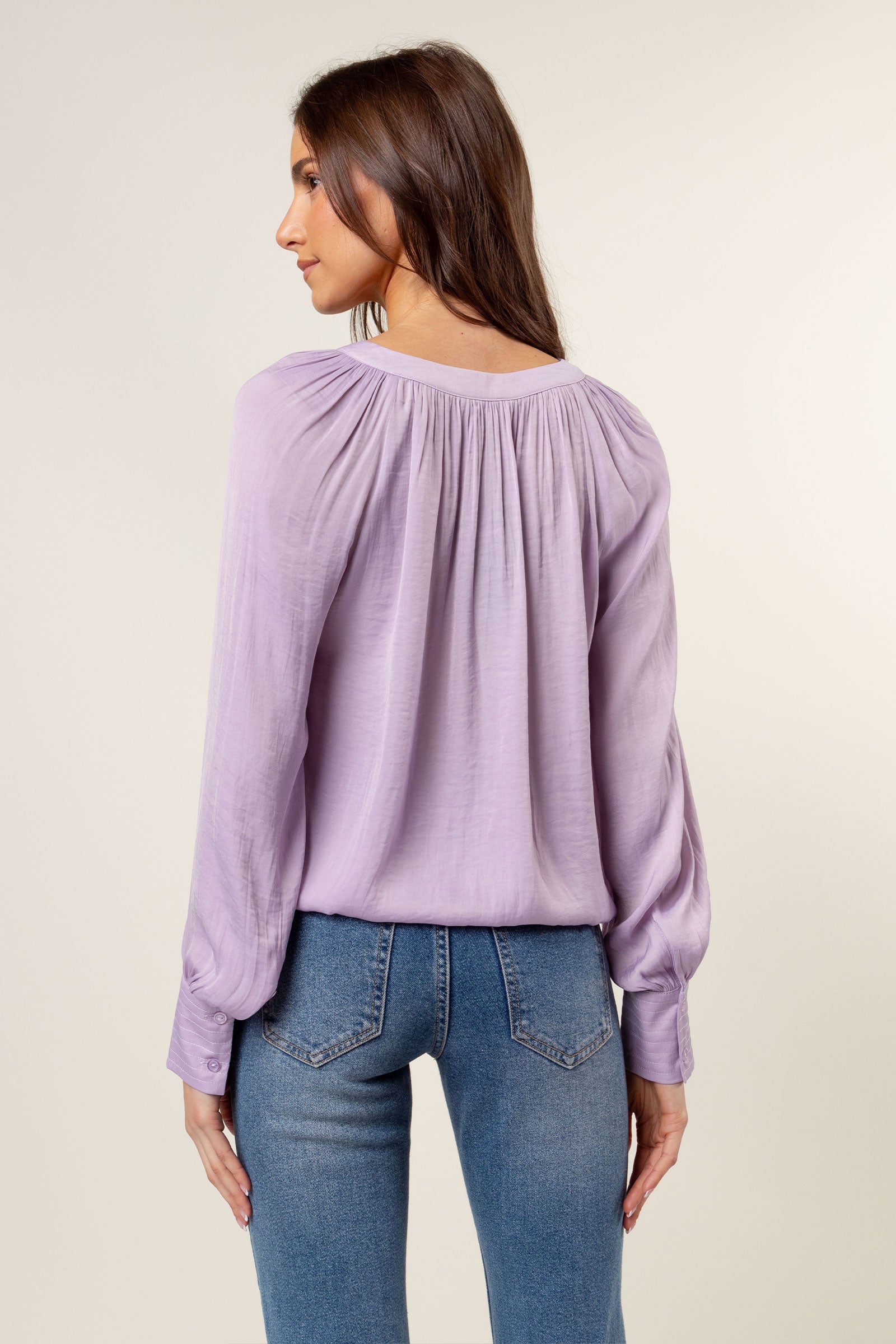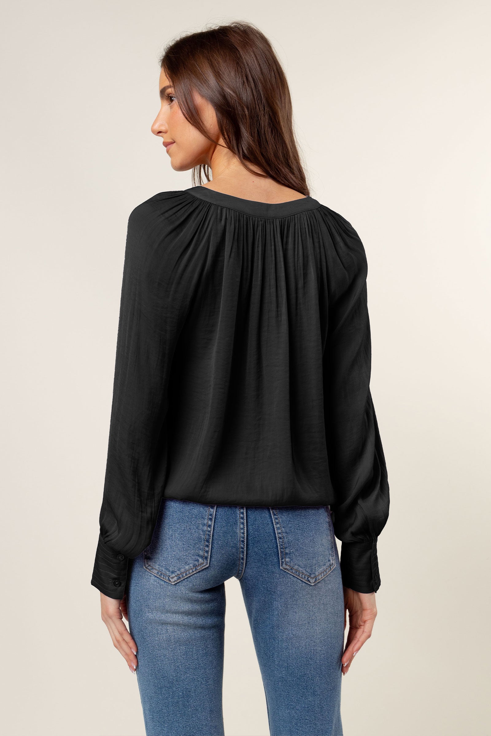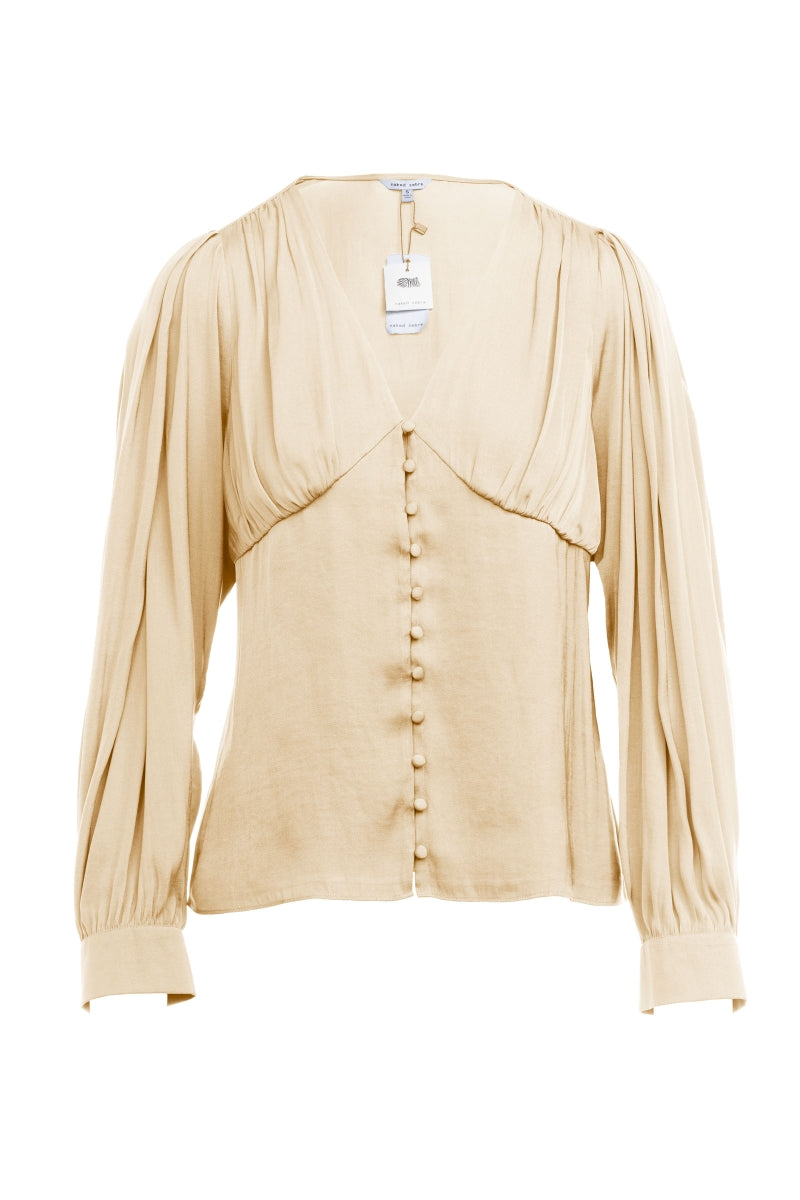 Billowy Gathered V-neck Blouse