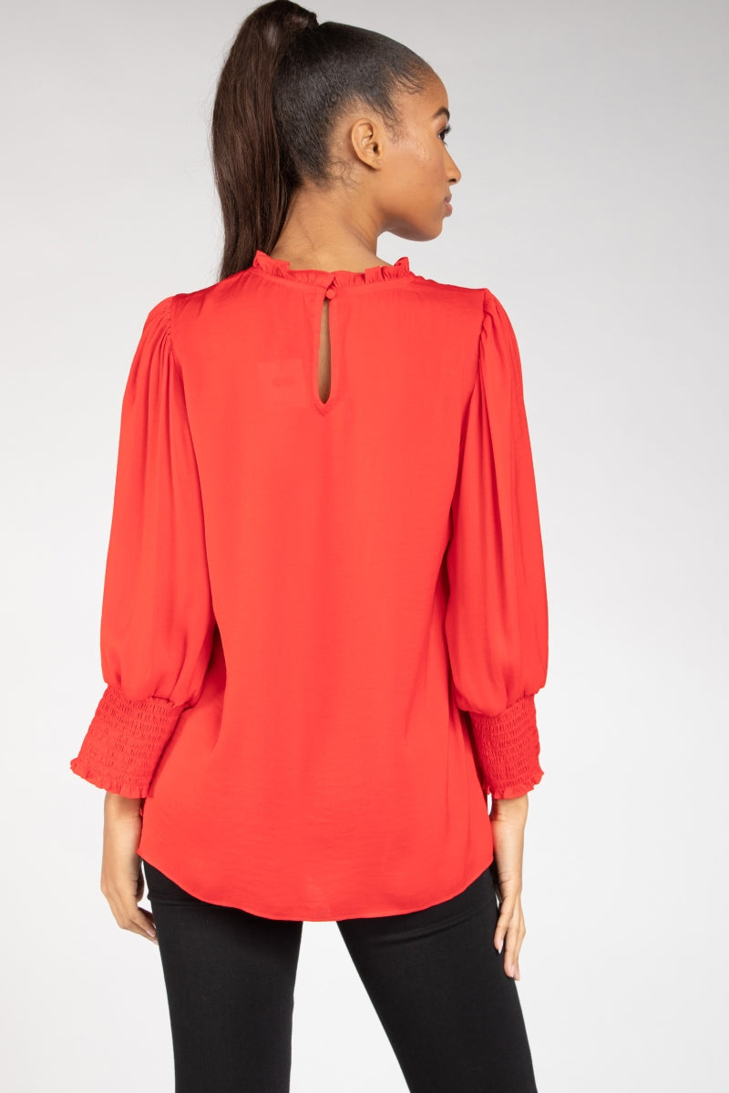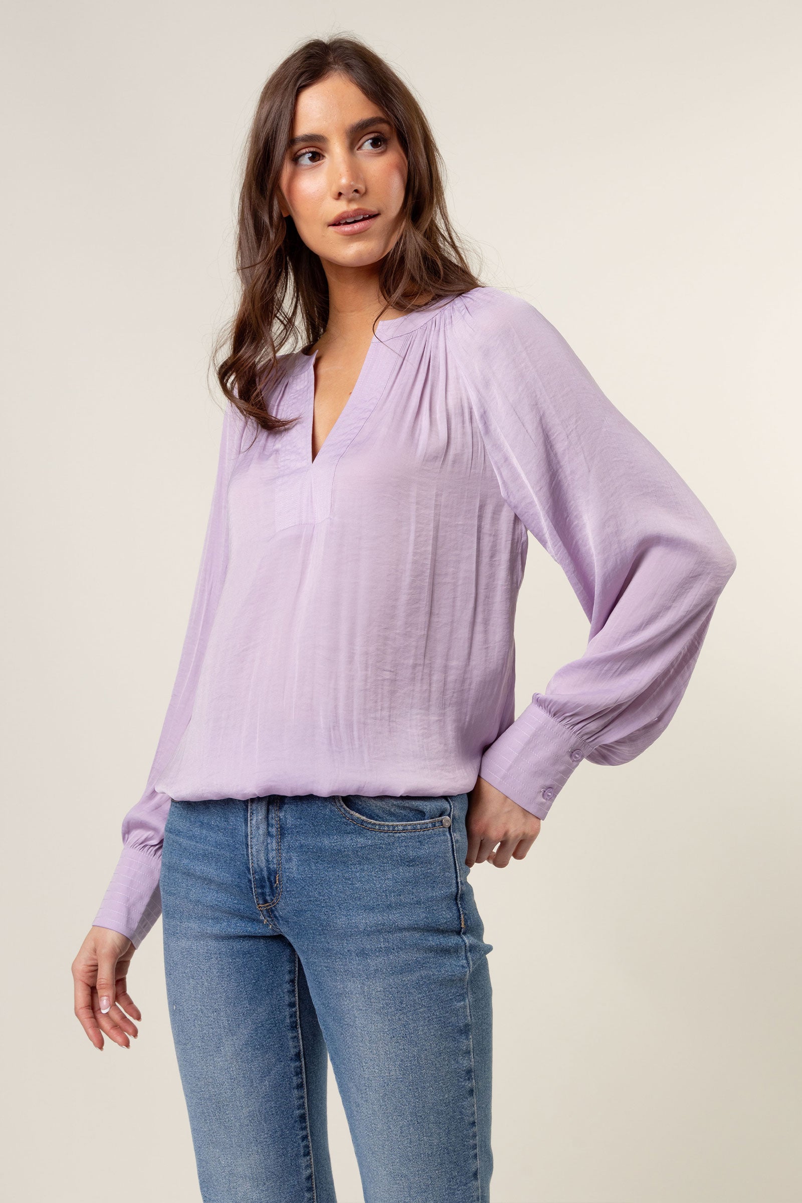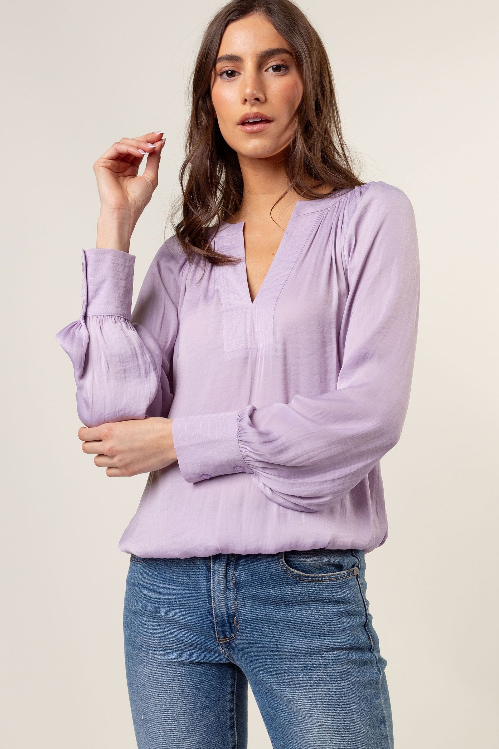 Billowy Gathered V-neck Blouse