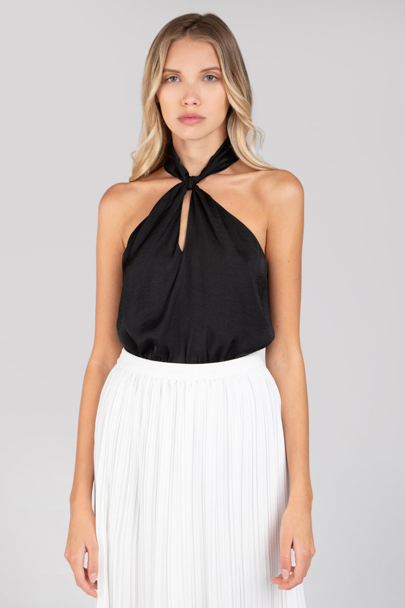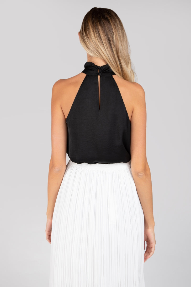 Mock Neck Halter Top With Self Spaghetti Belt
