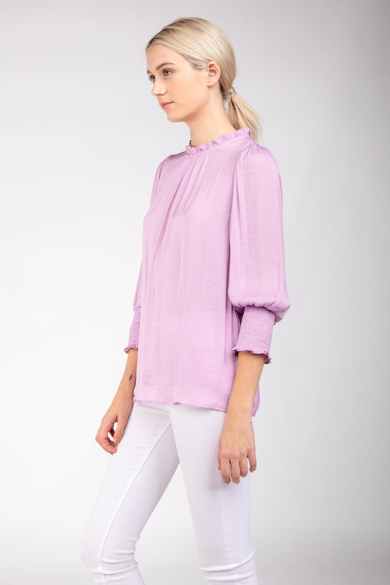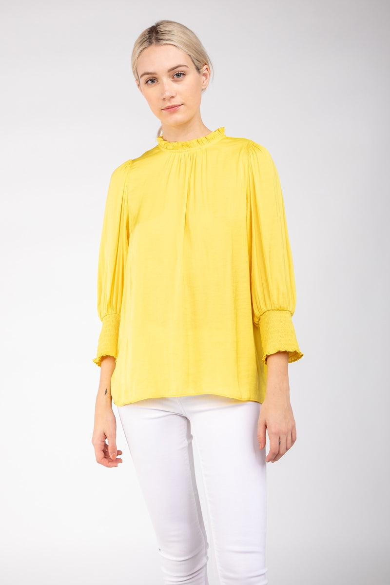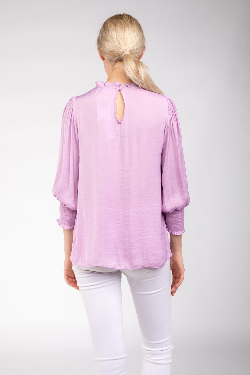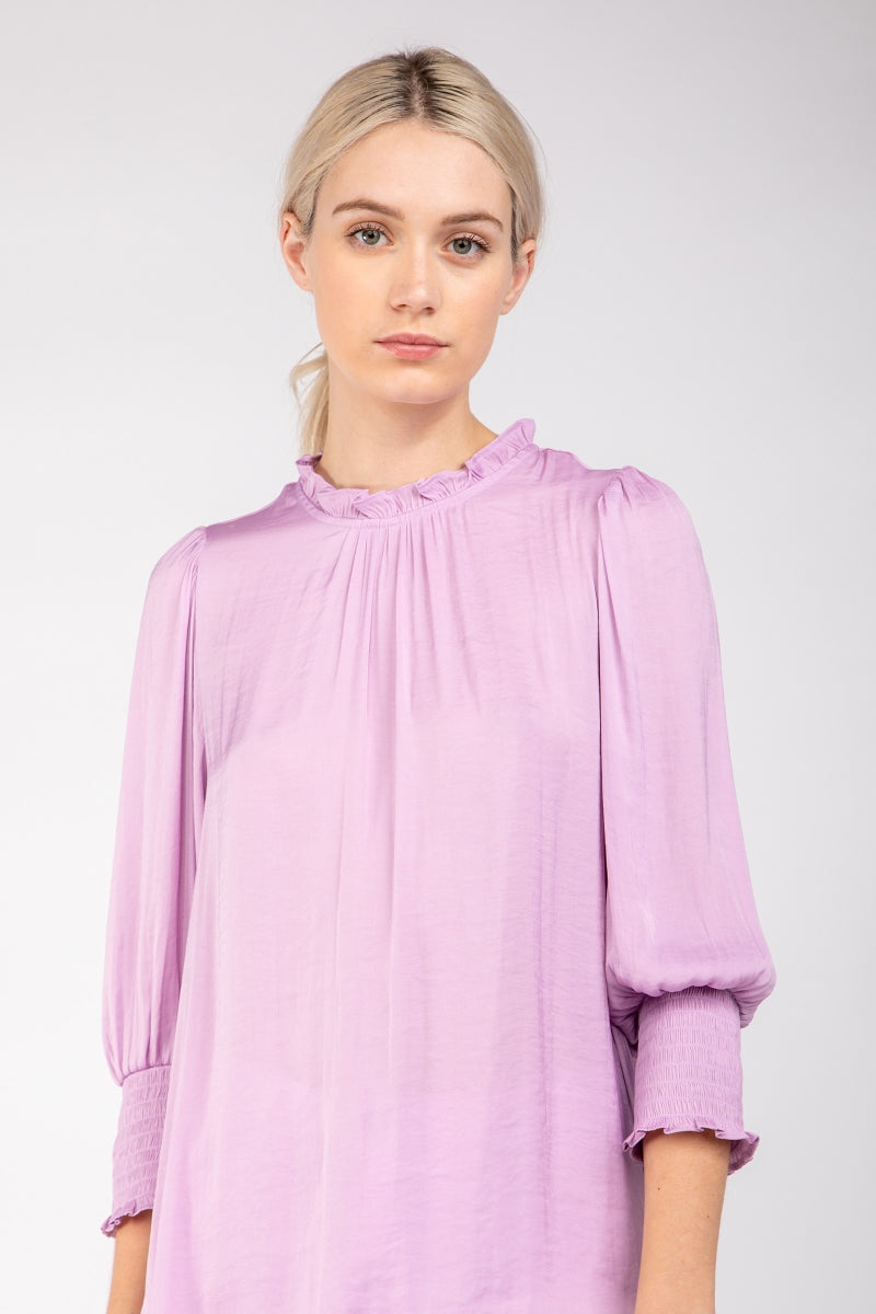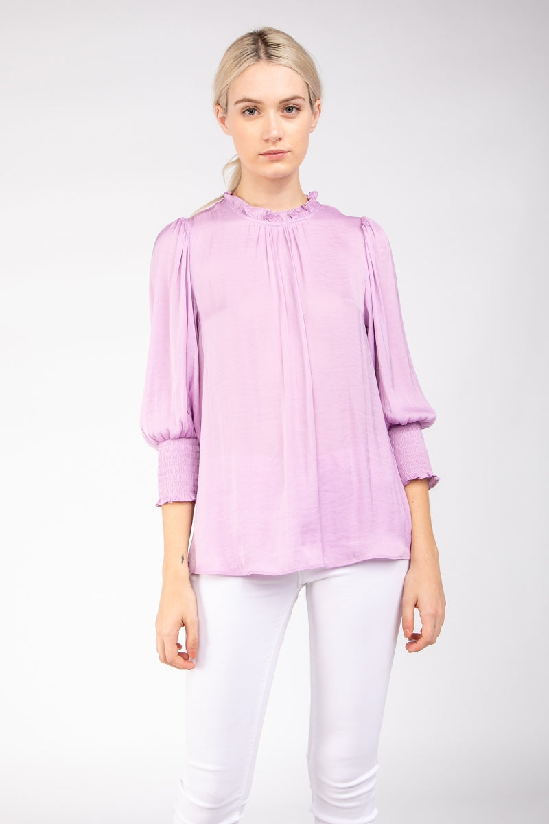 Wide Sleeves Blouse With Johnny Collar