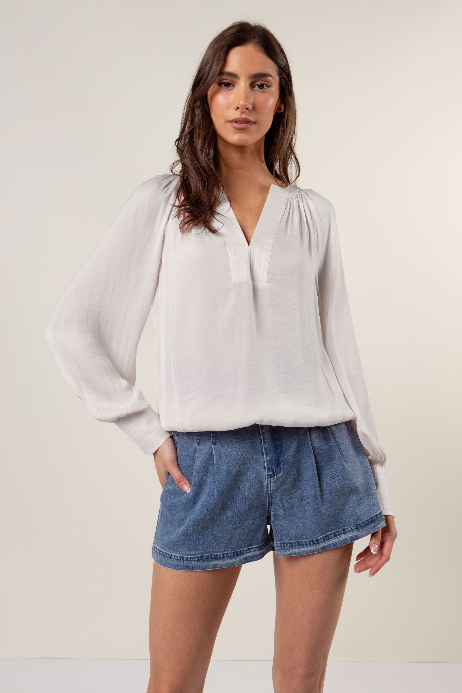 Pleated V-neck Blouse