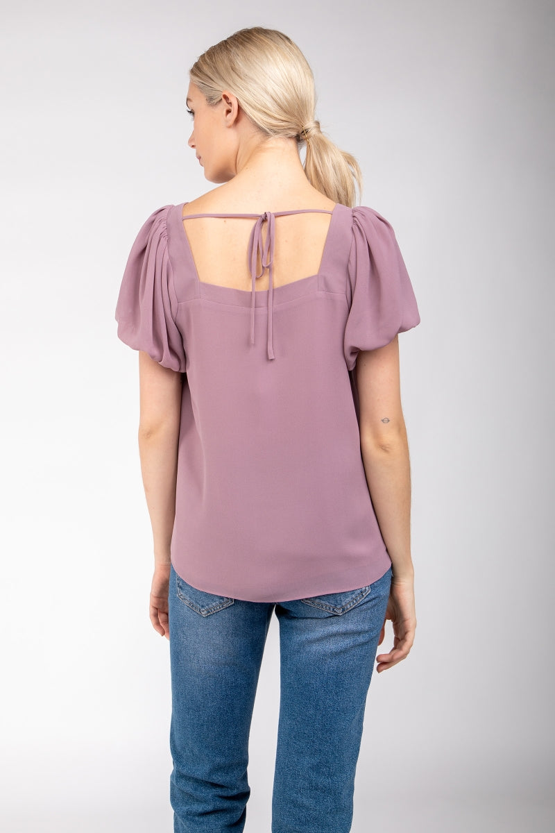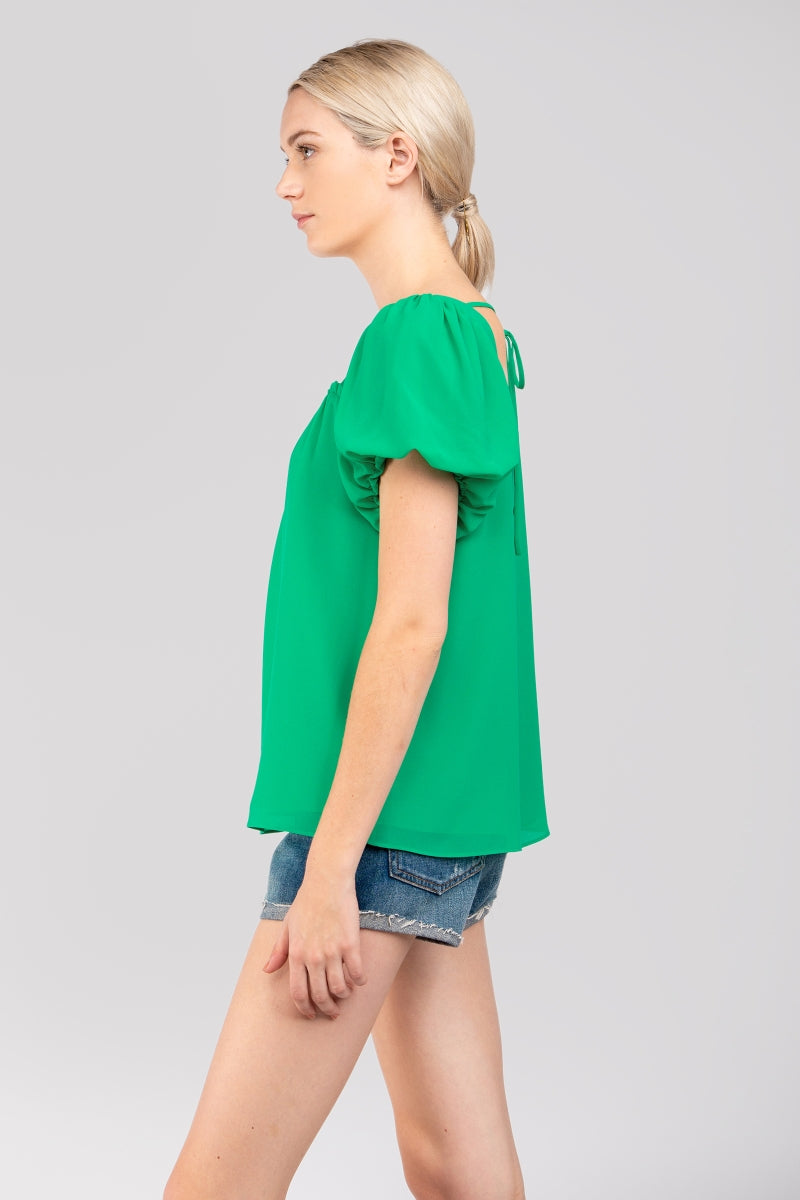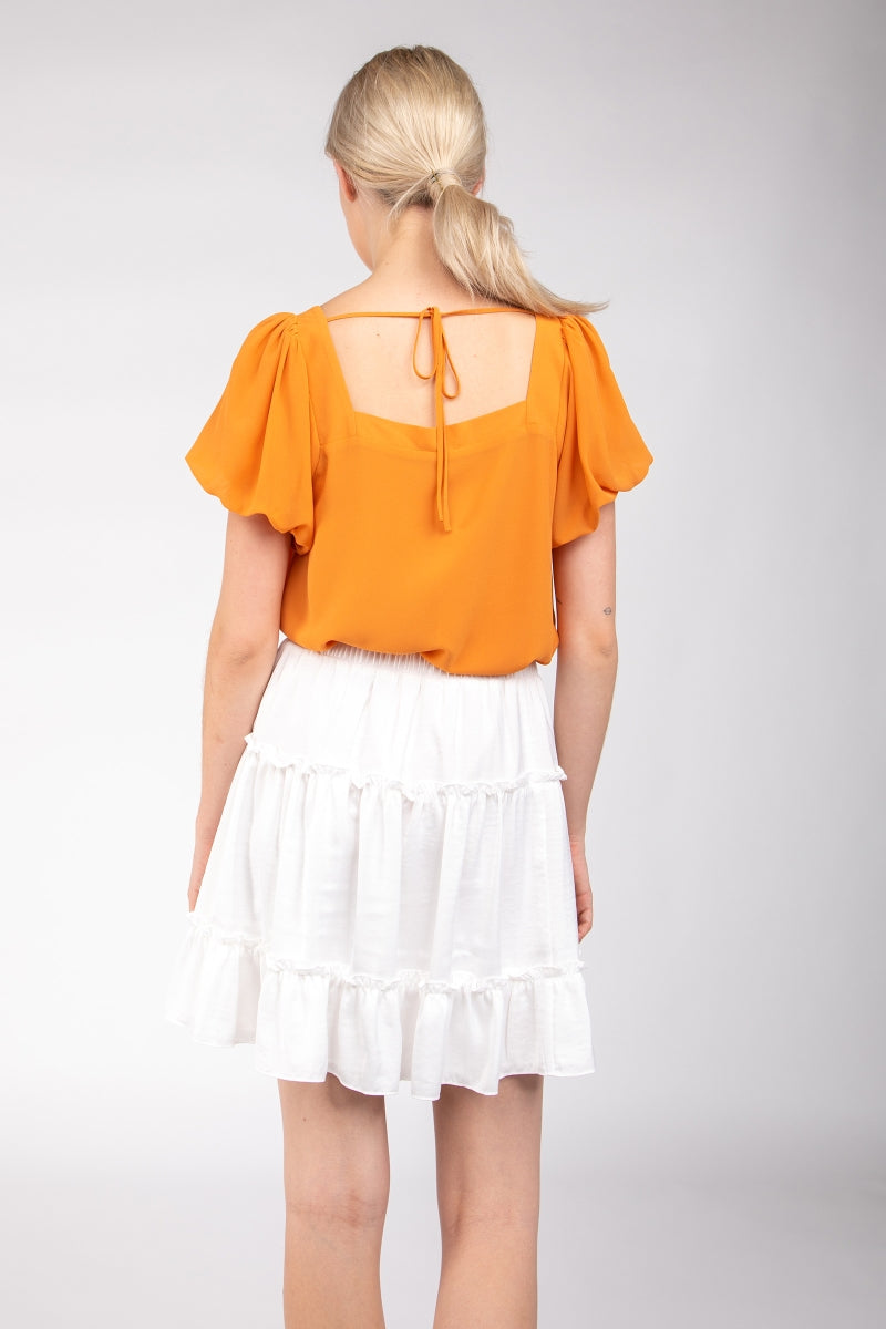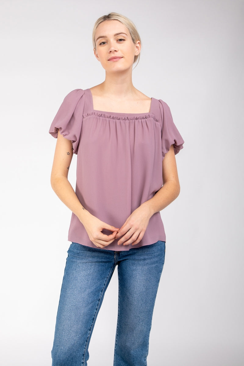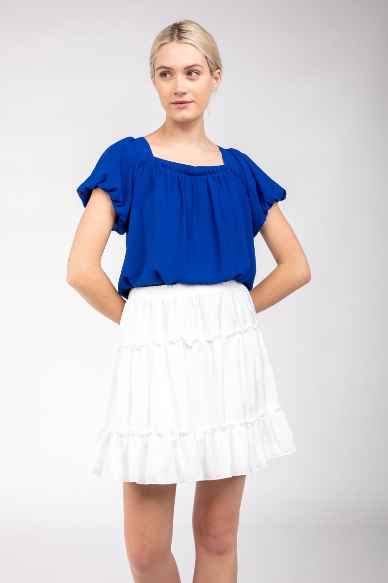 Square Neck Short Balloon Sleeve Top