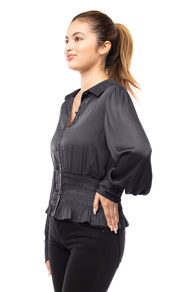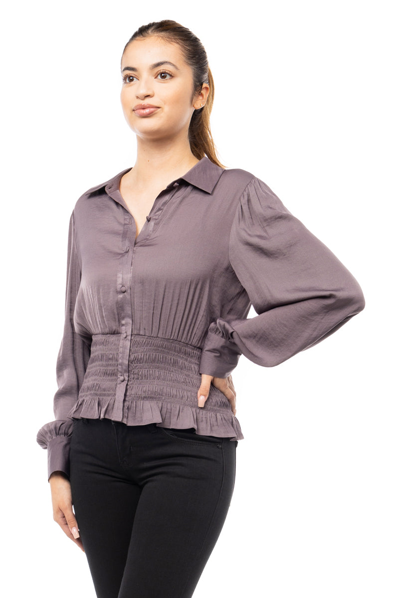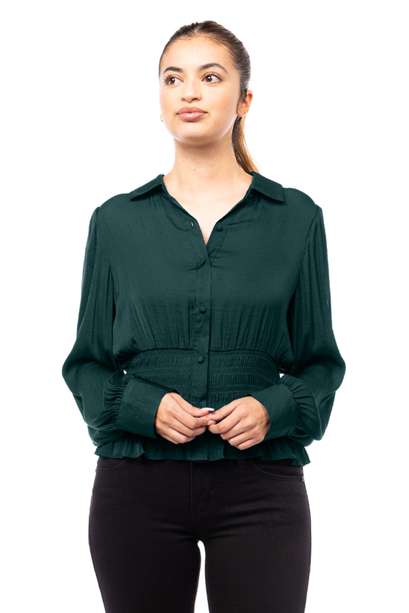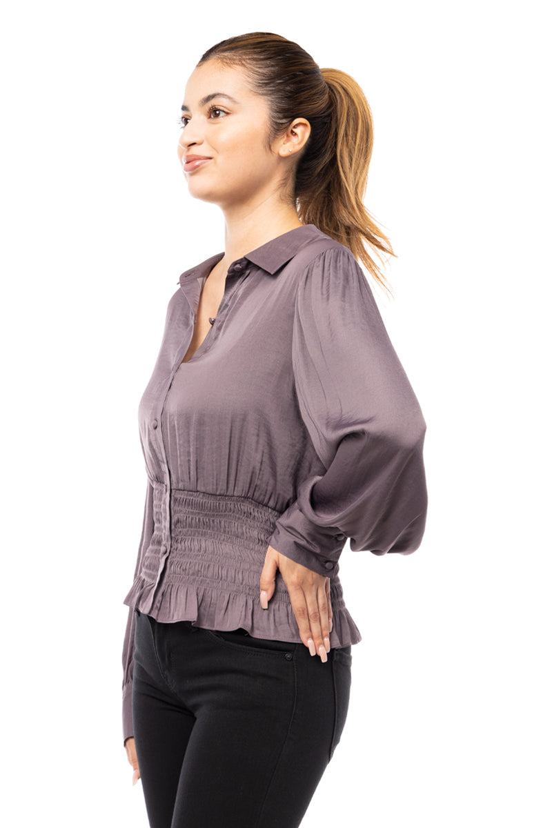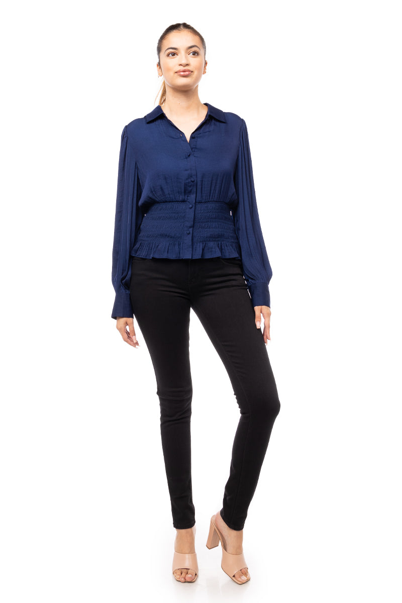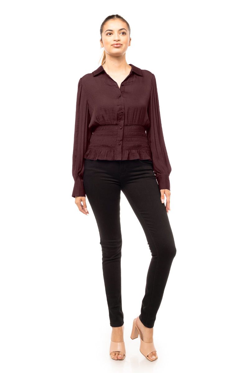 Smocked Waist Button Down Blouse