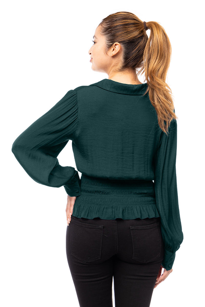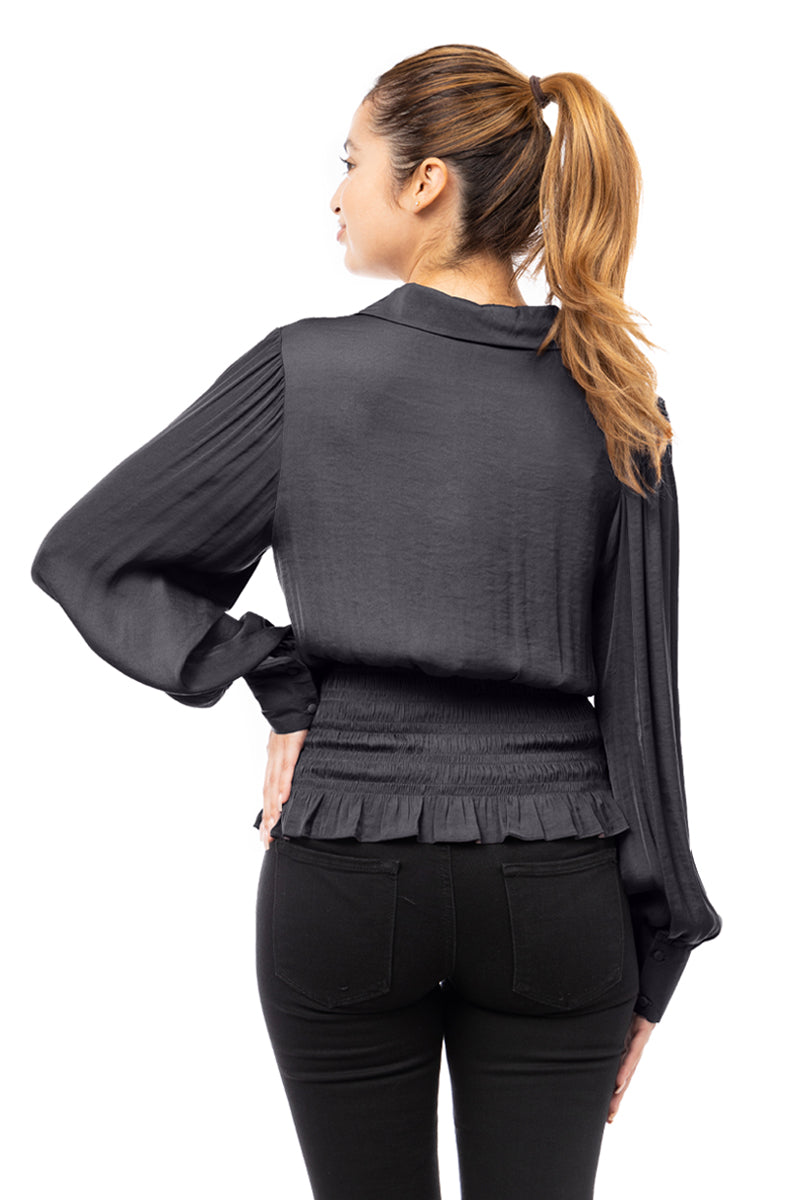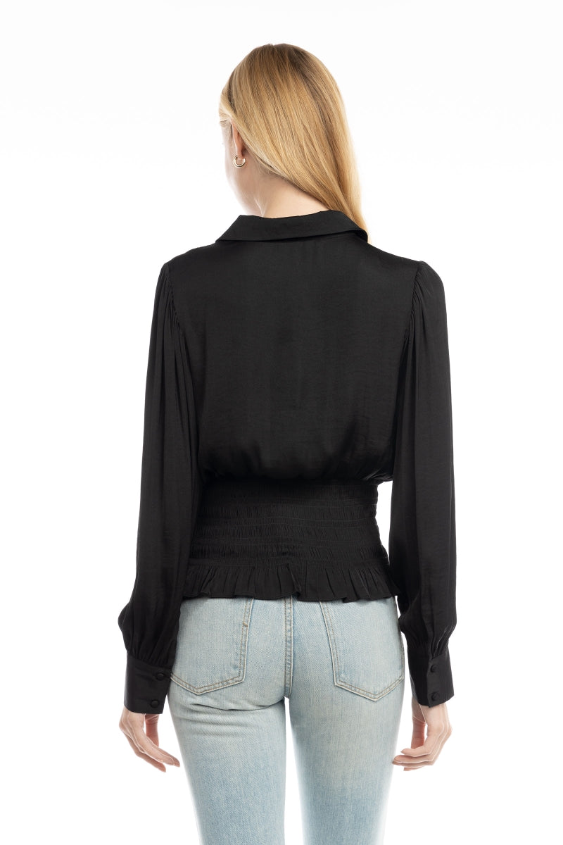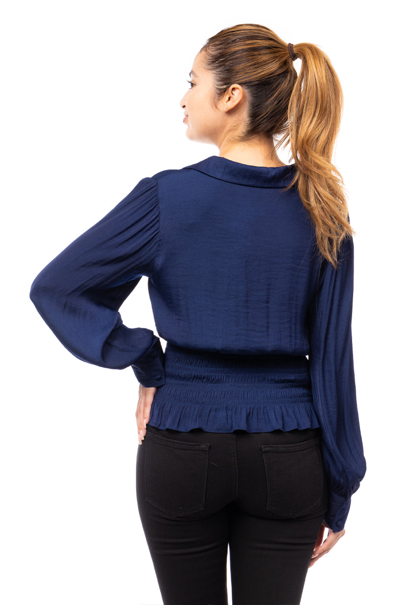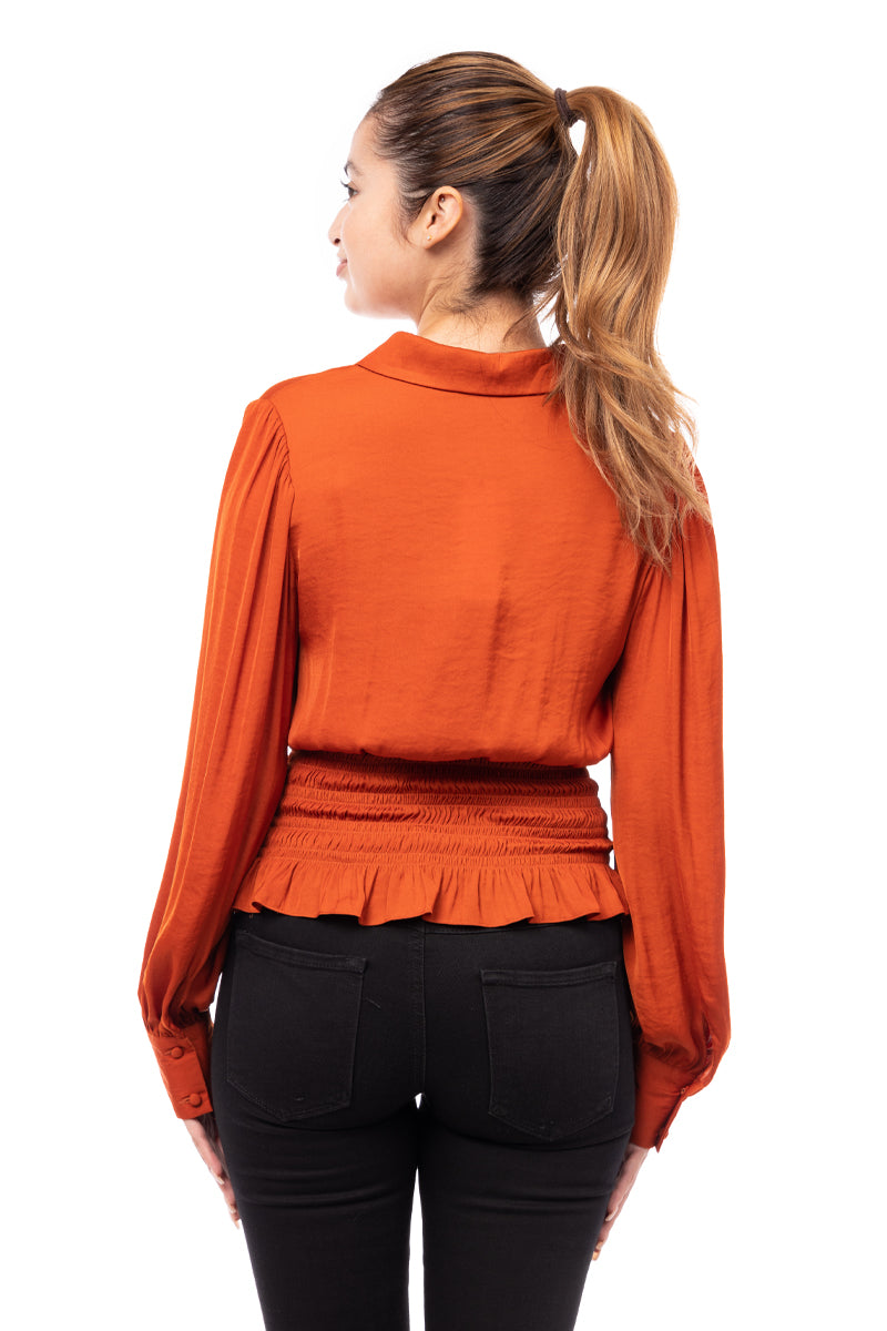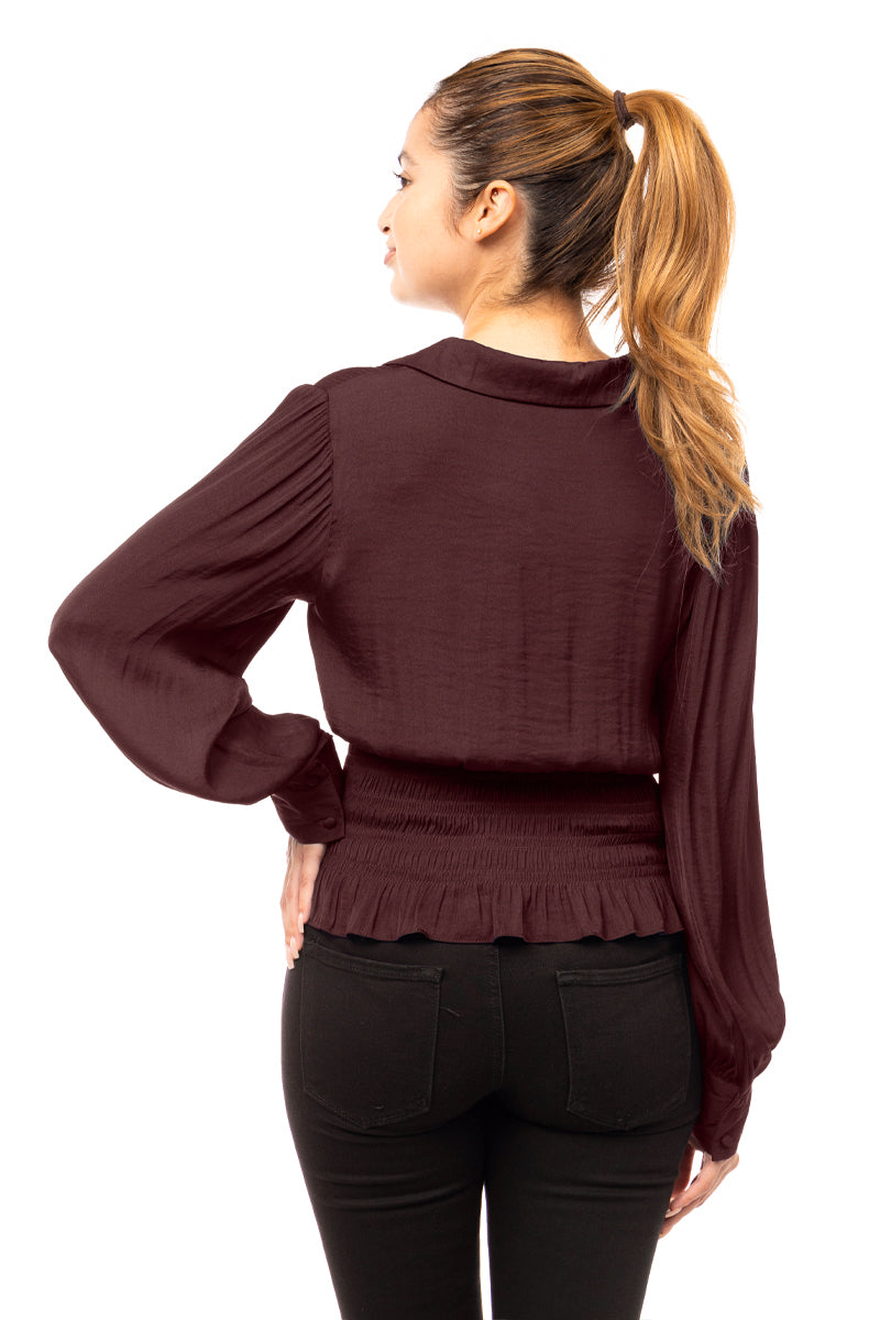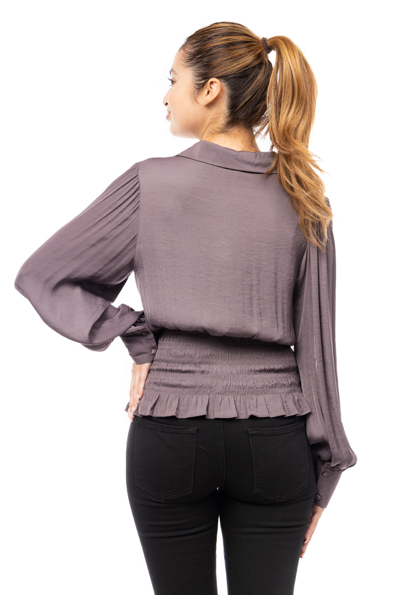 Smocked Waist Button Down Blouse