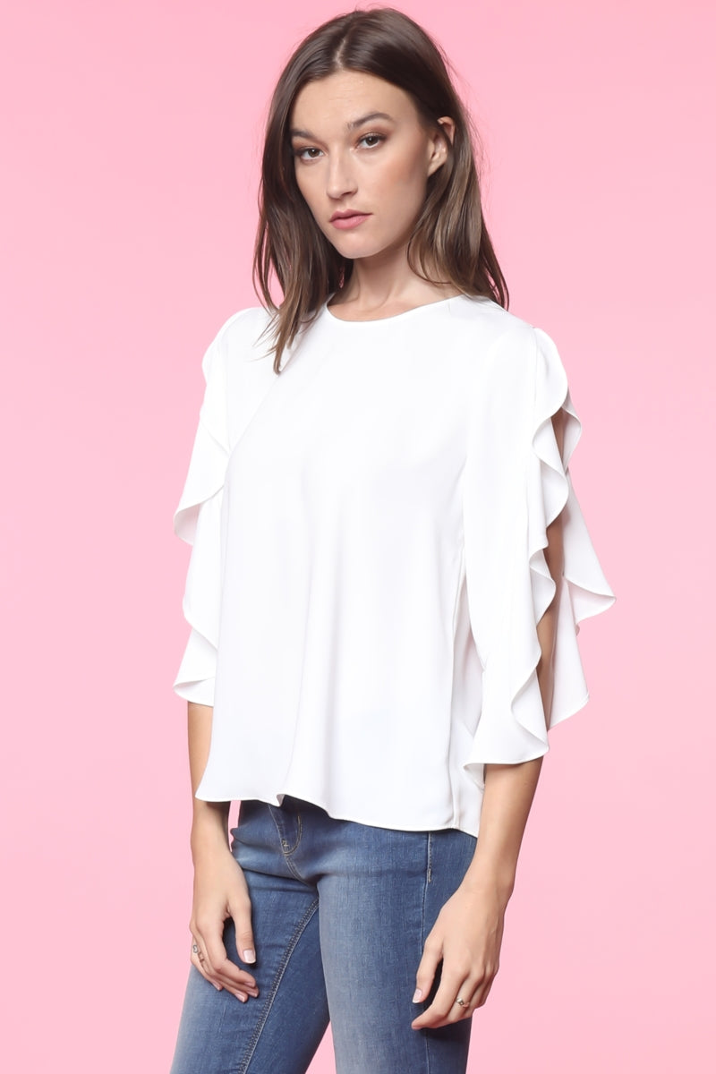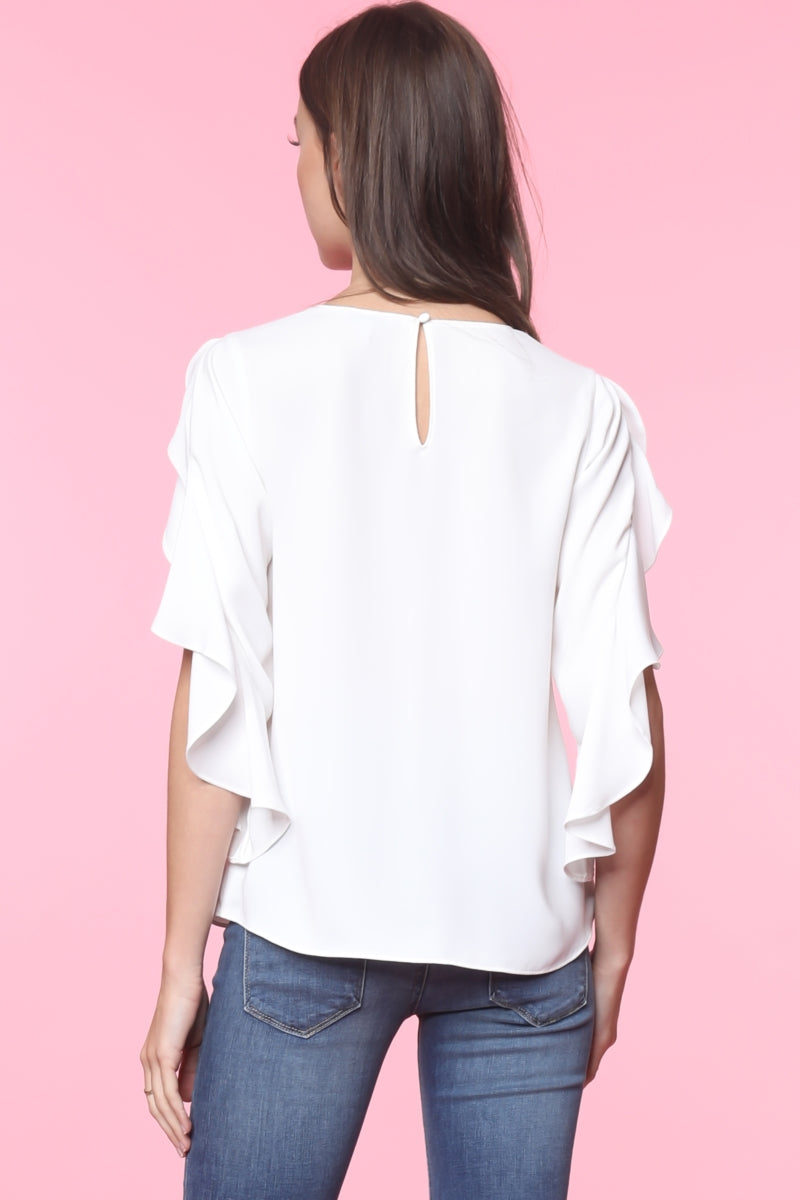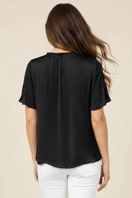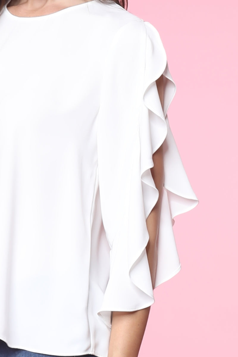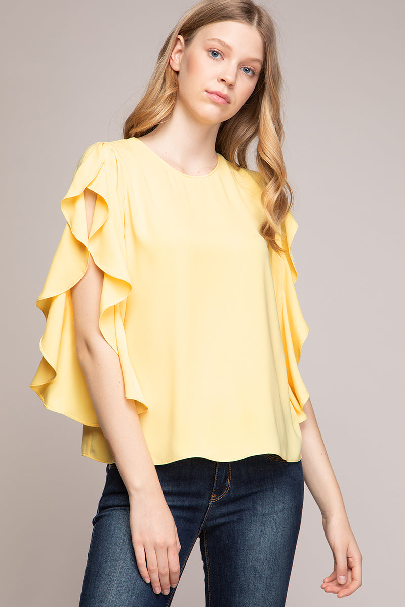 Tie Front Ruffled Sleeve Blouse