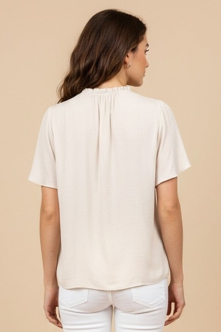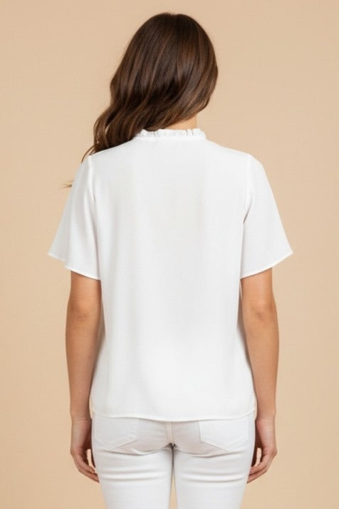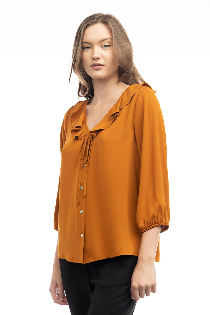 Ruffle Button Down Tie Blouse