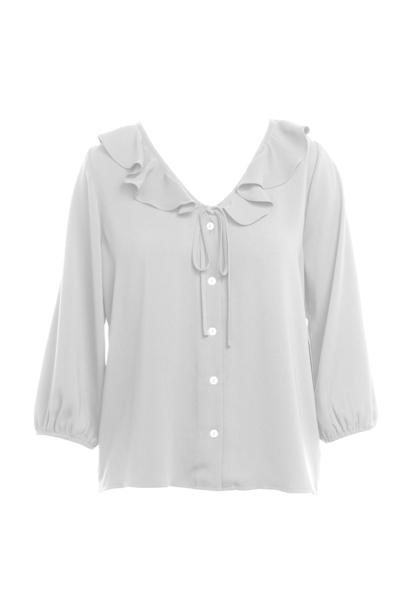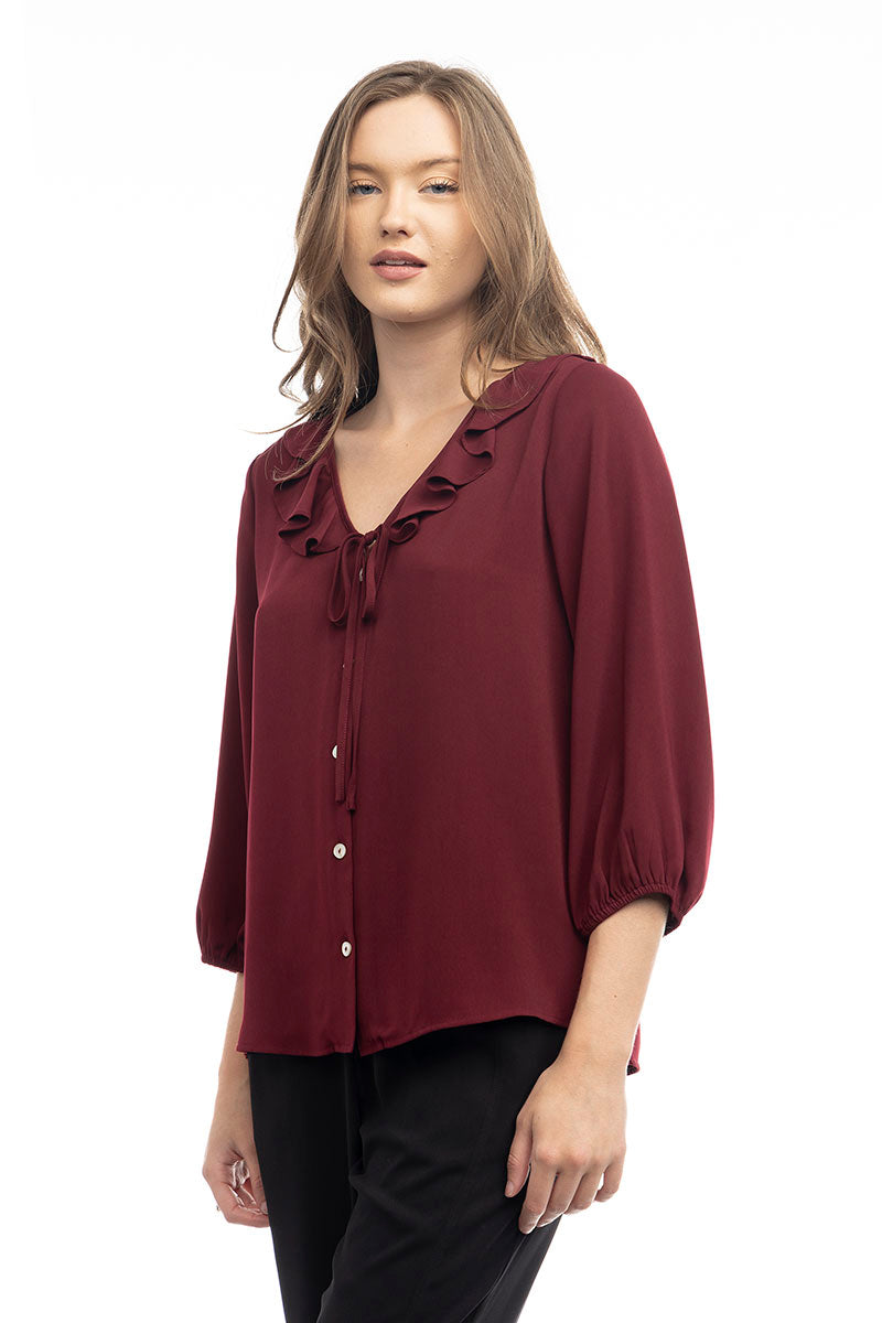 Ruffle Accented Long Sleeve Blouse