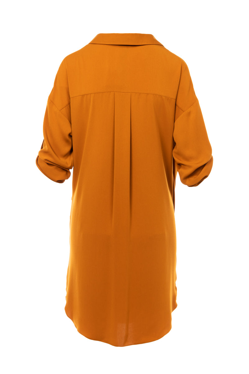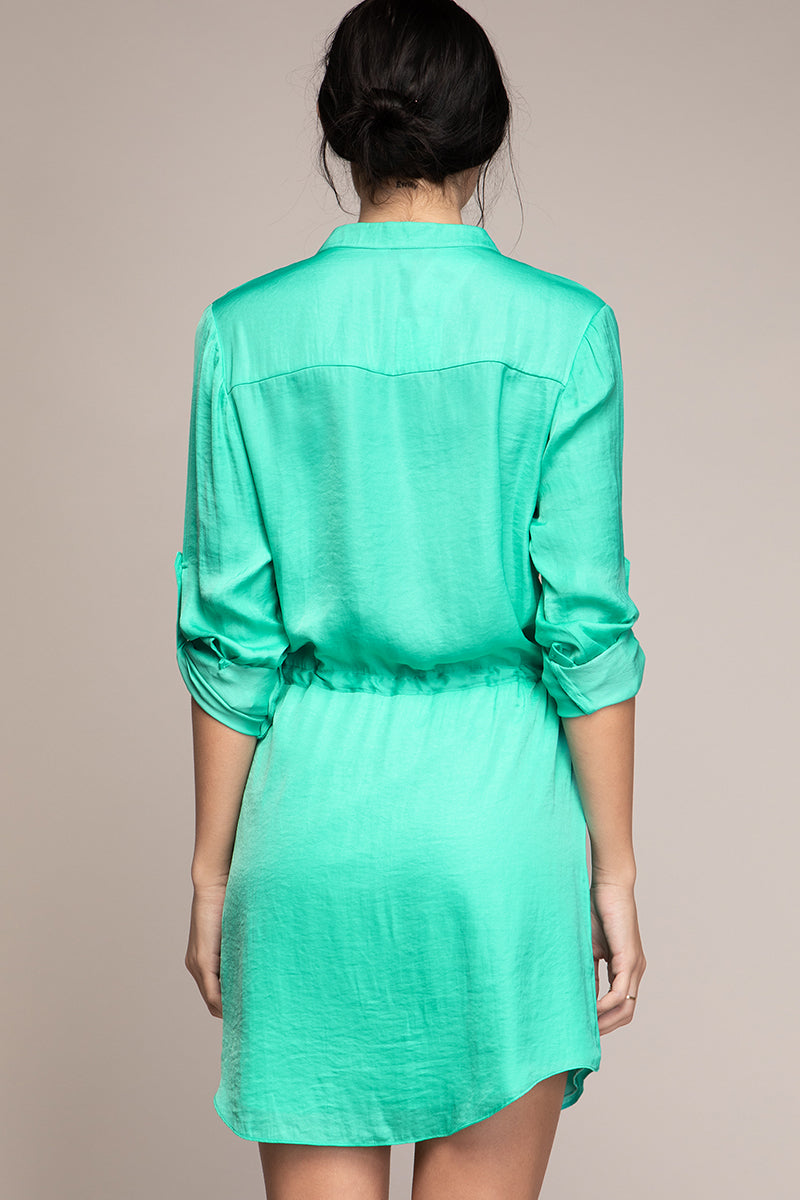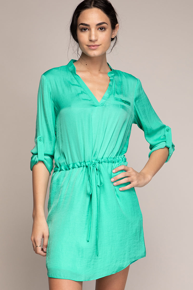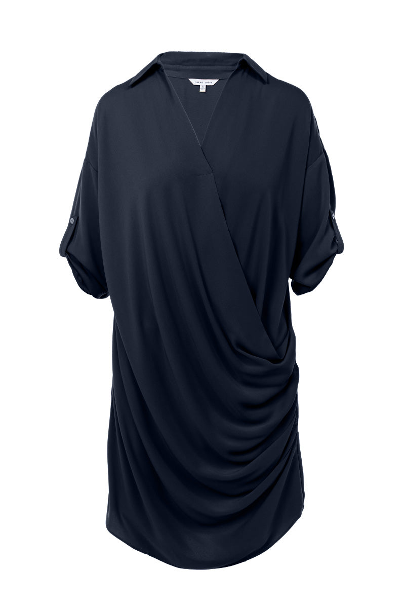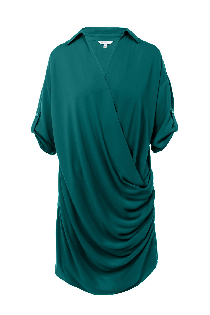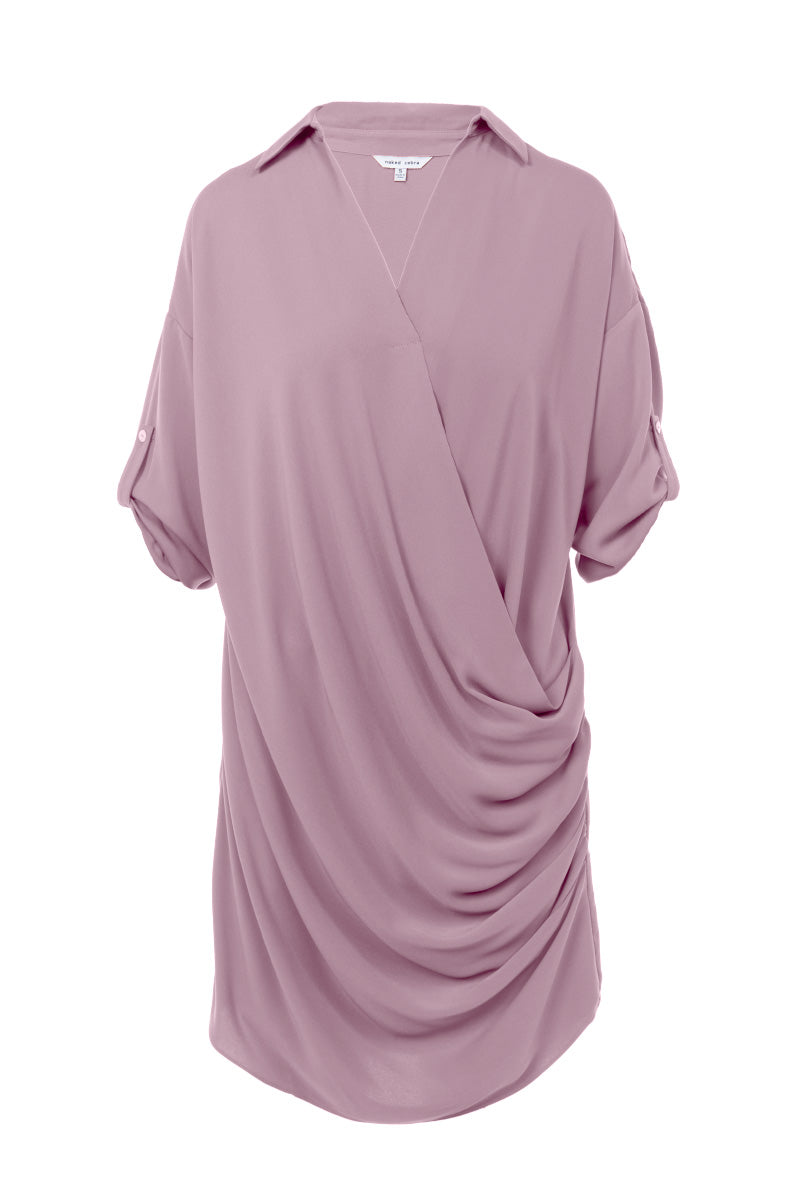 3/4 Sleeve Mini Cowl Front Shirt Dress