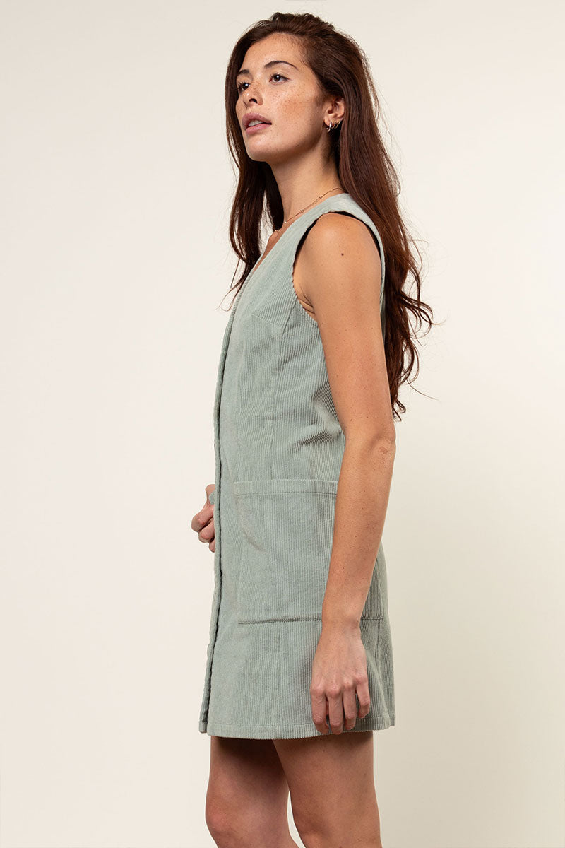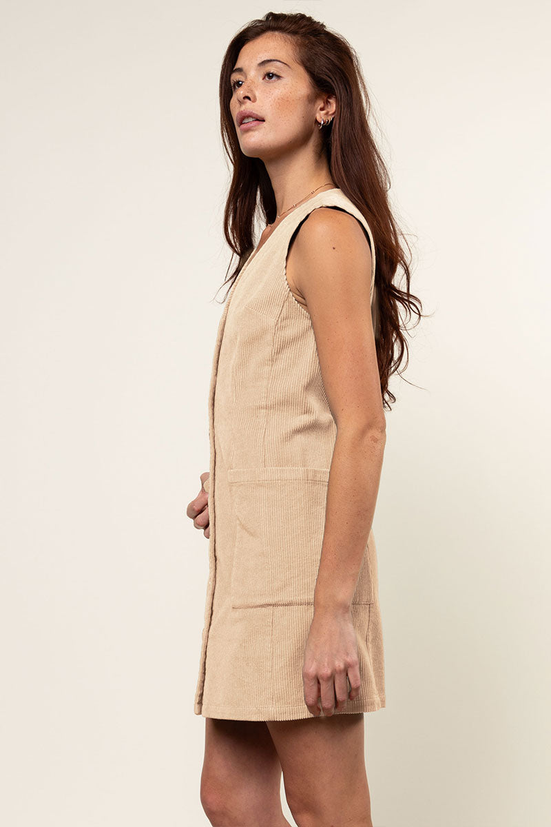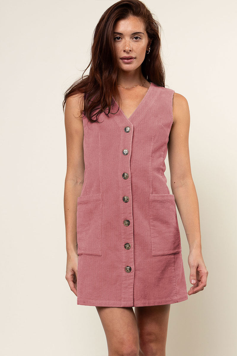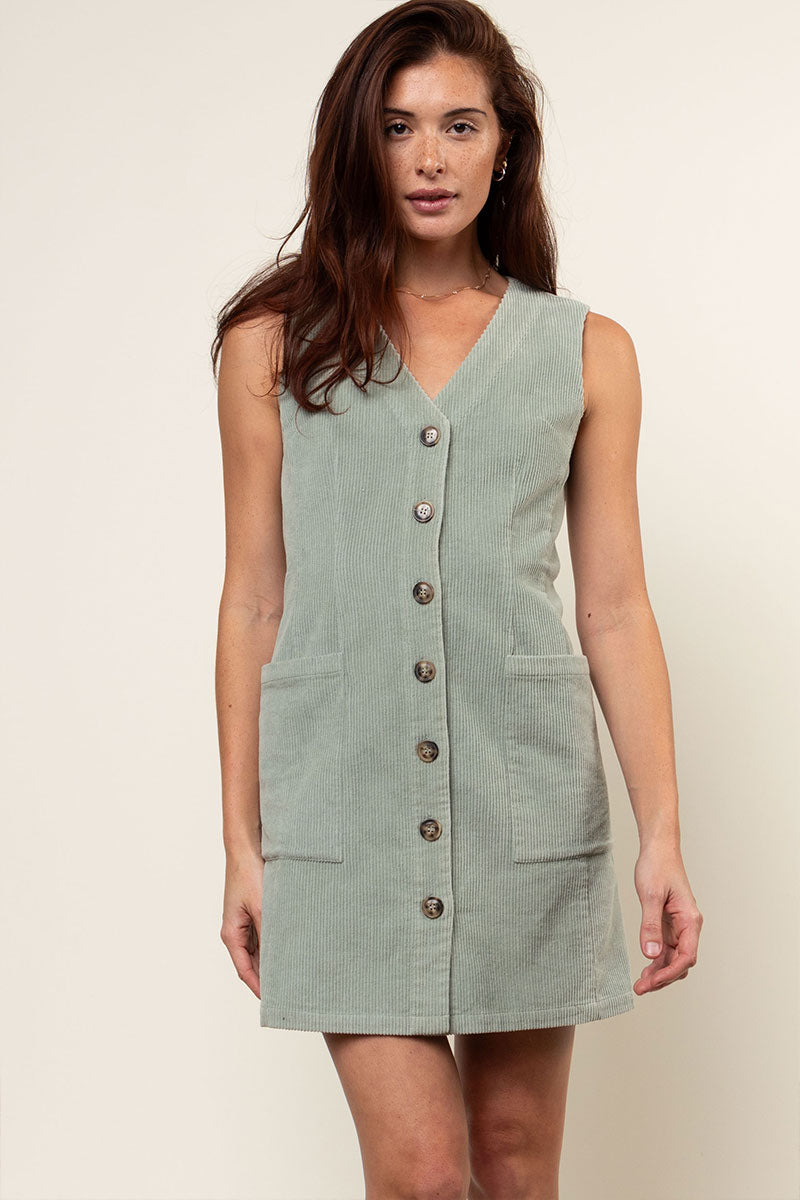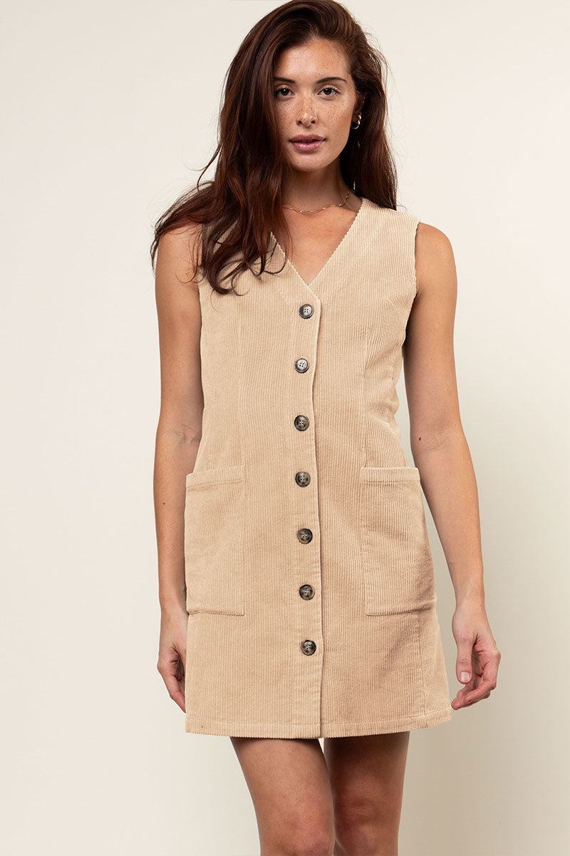 Corduroy Button Front Mini Dress