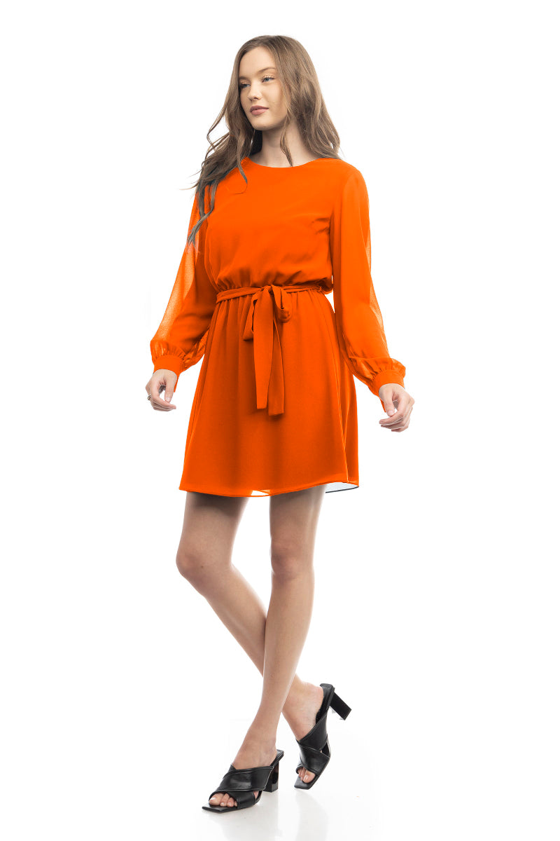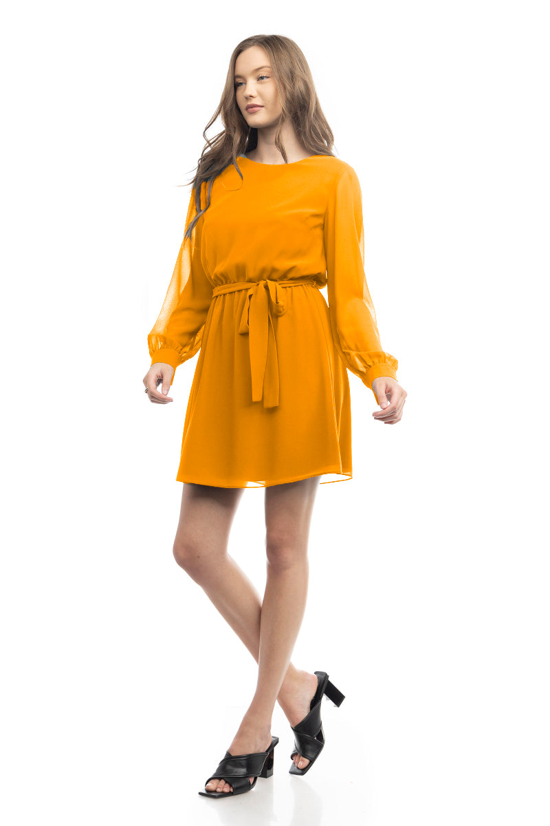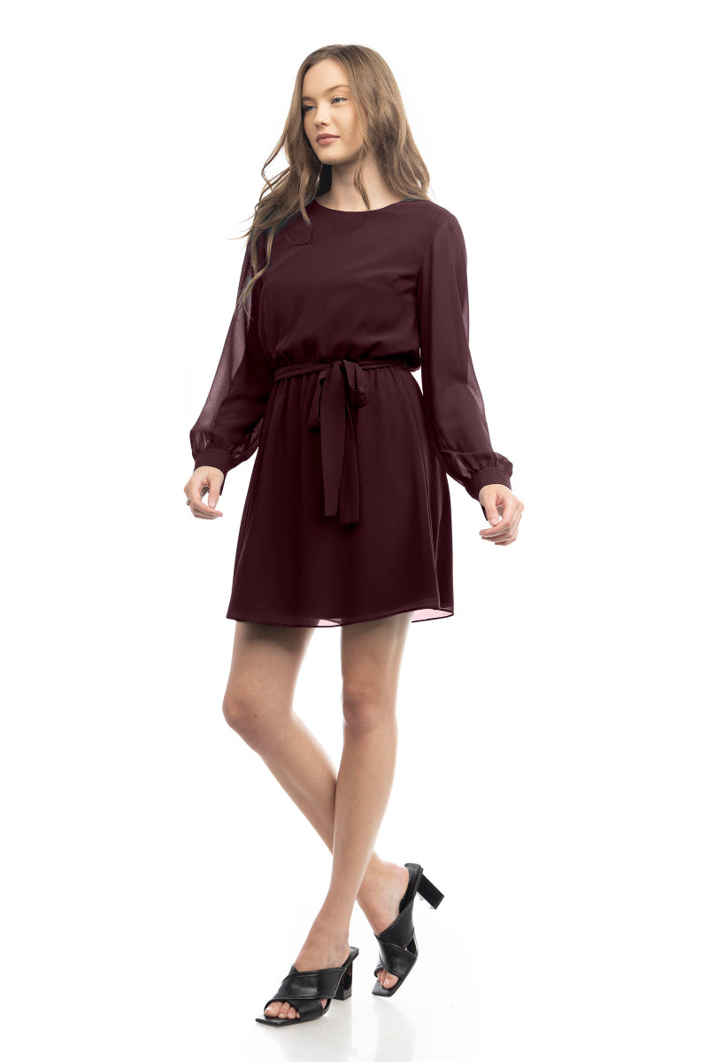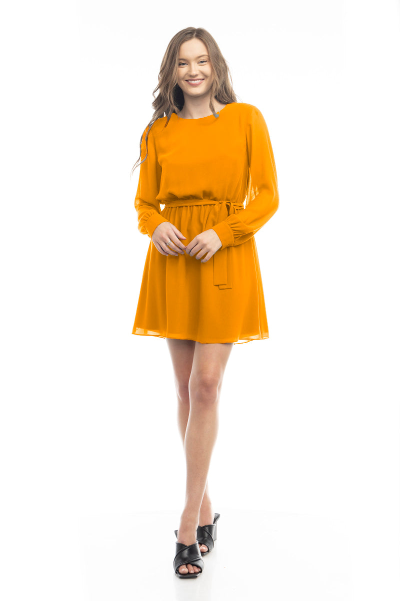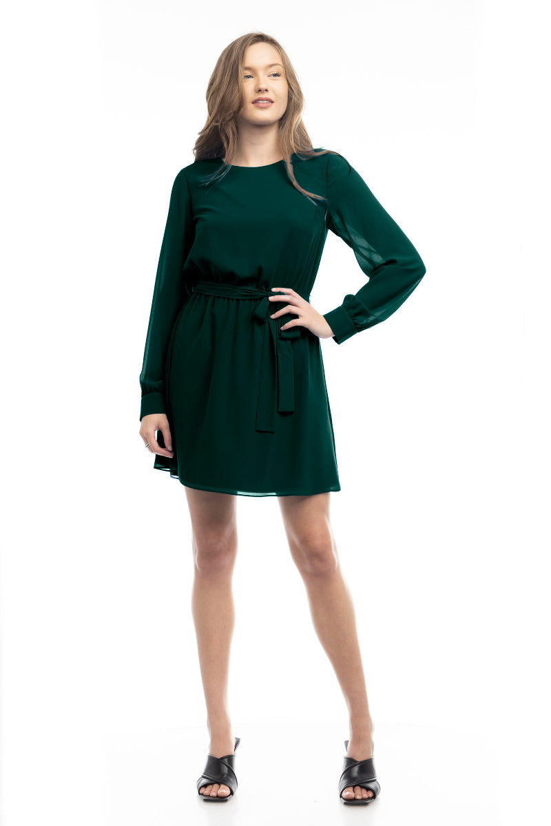 Long Sleeve Mini Dress With Self Waist Band