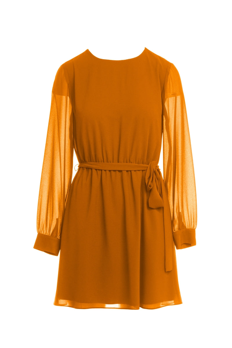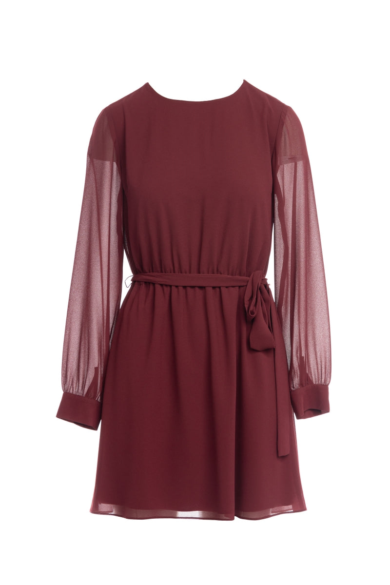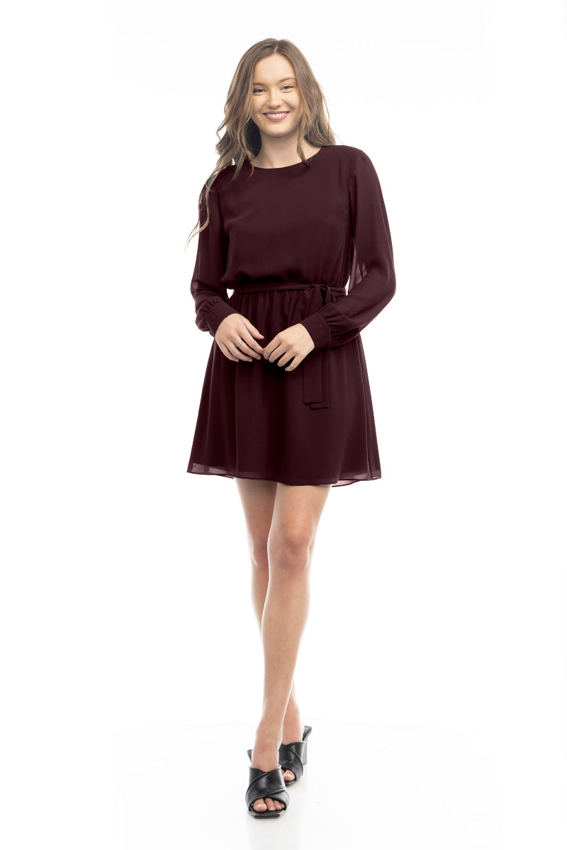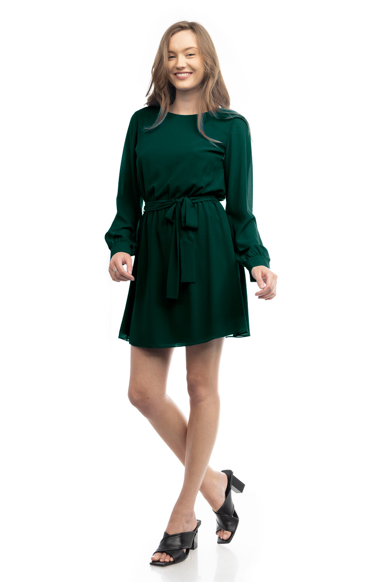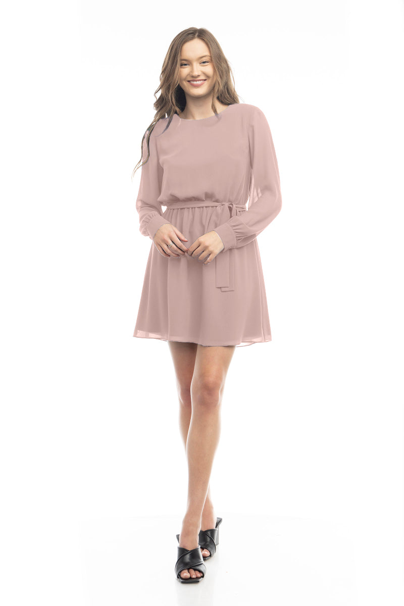Long Sleeve Mini Dress With Self Waist Band