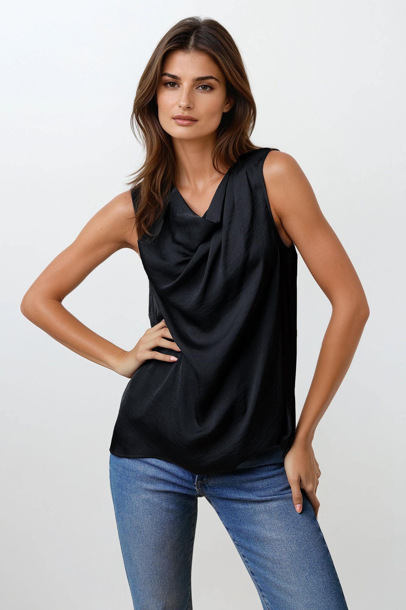 Padded Shoulder Sleeveless Lapel Shirt Dress
