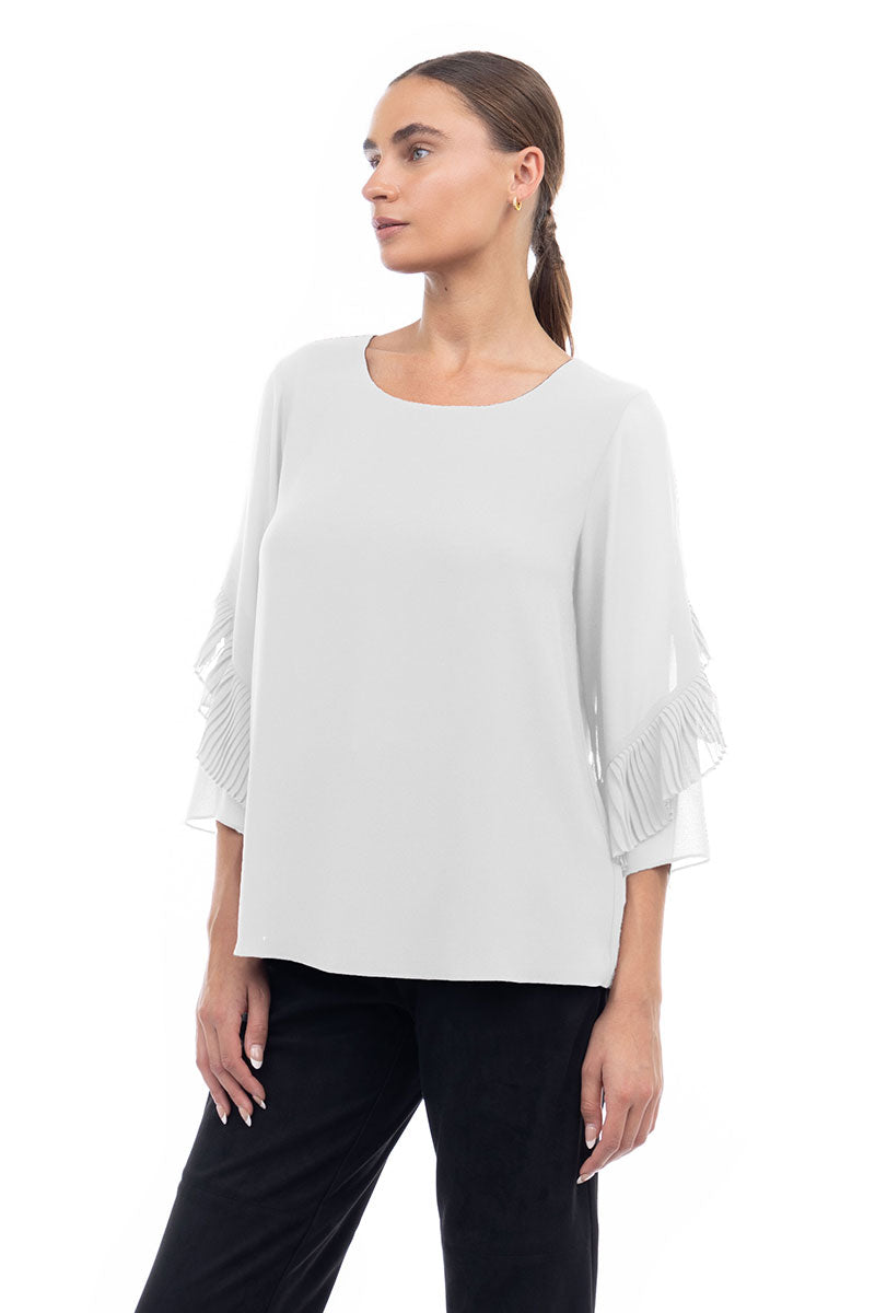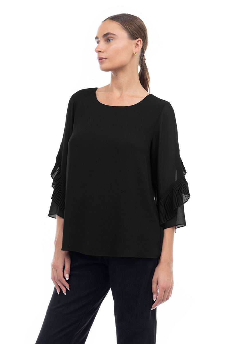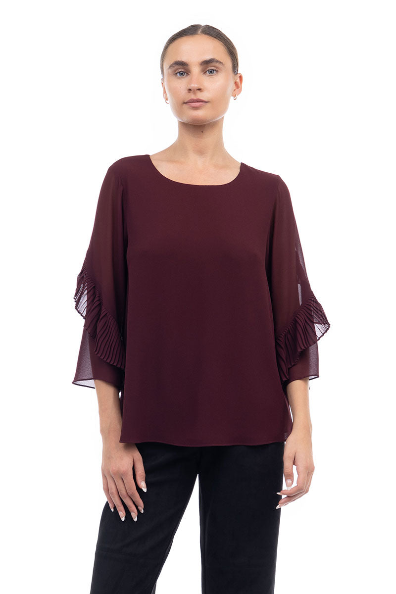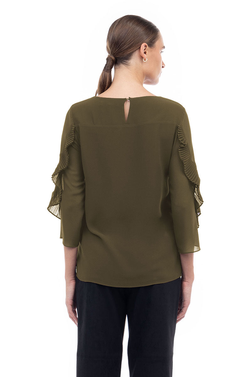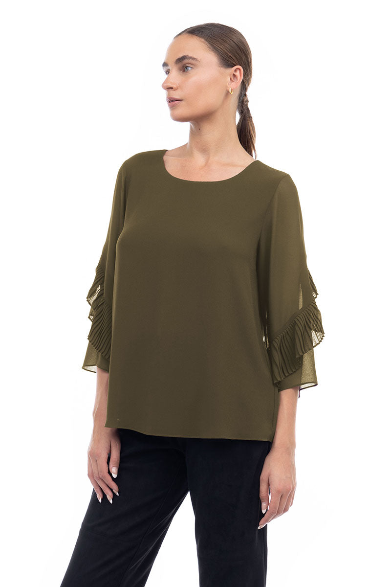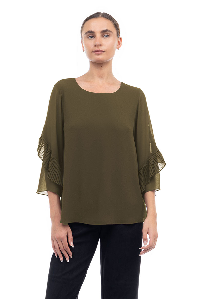 3/4 Pleated Ruffle Sleeve Blouse